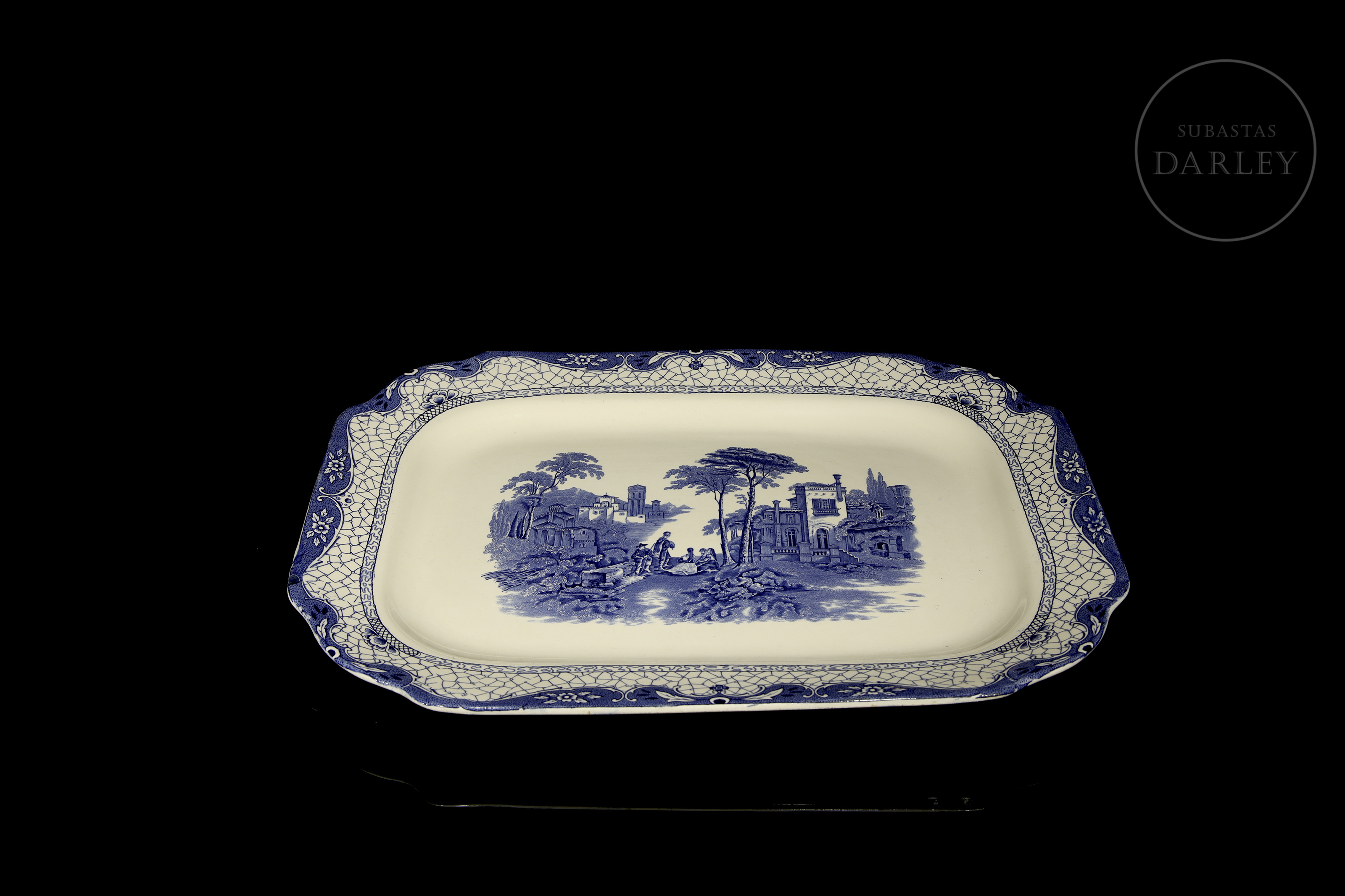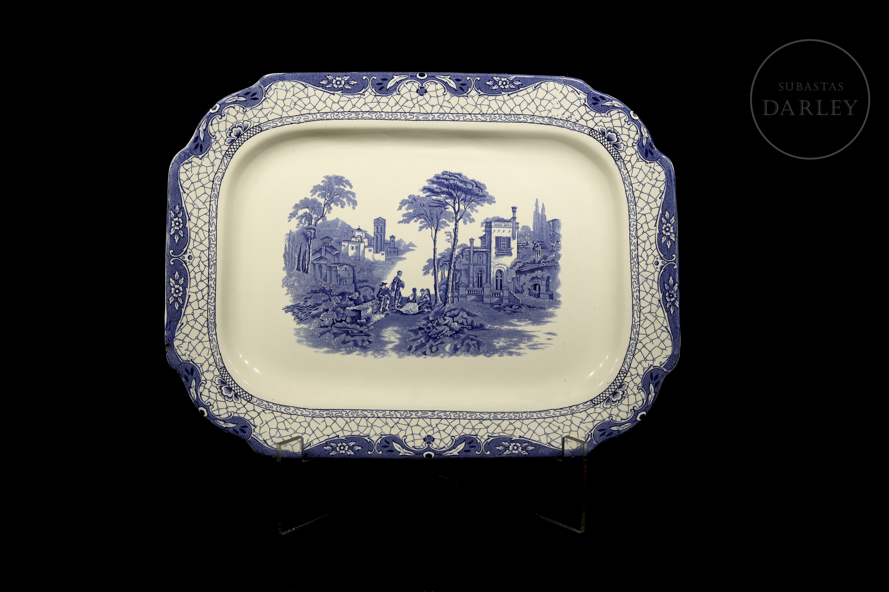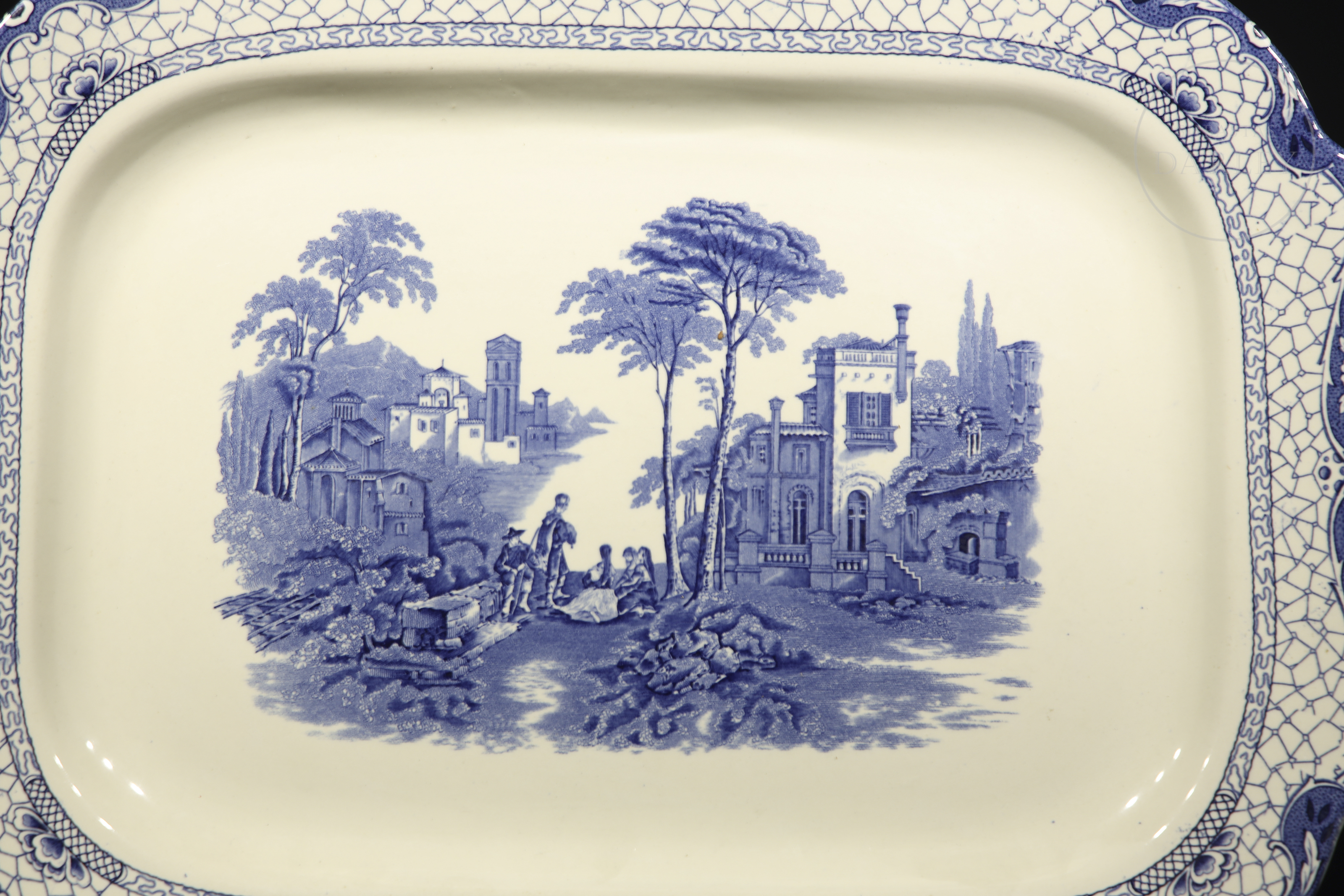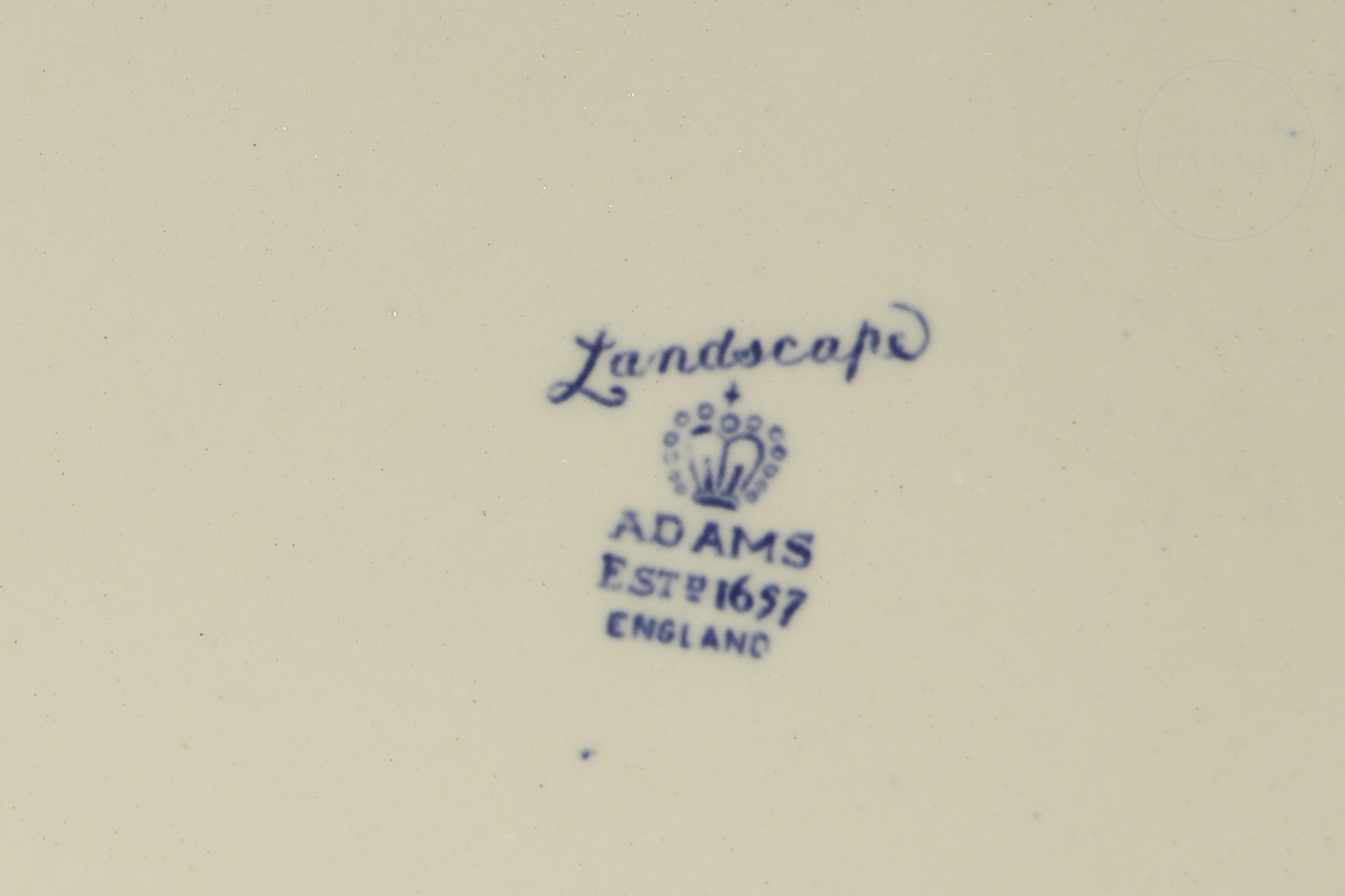 The tray is an English ceramic dish featuring the popular ‘Landscape’ pattern by Adams. However, this pattern was produced from the 19th century until the mid-20th century.
