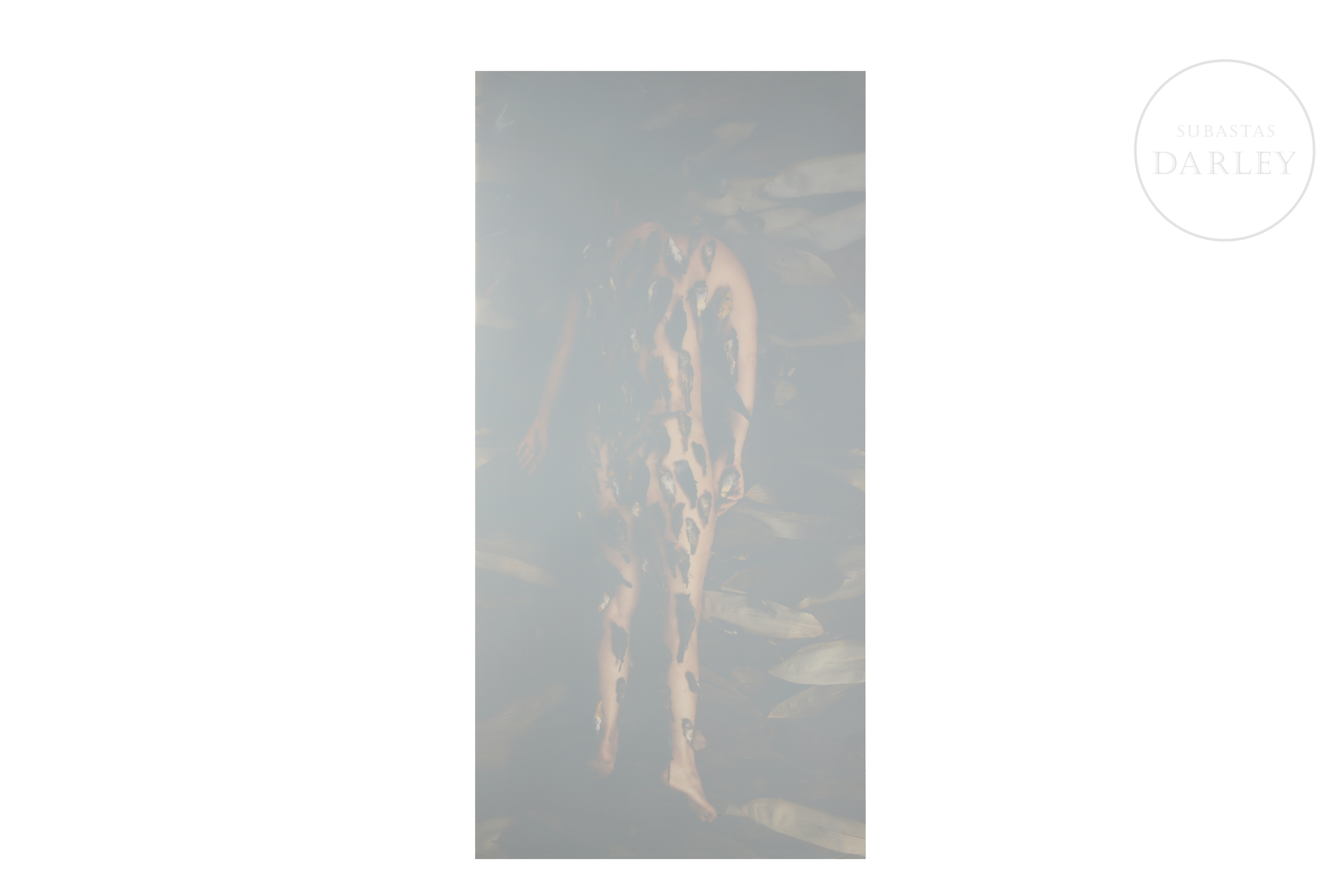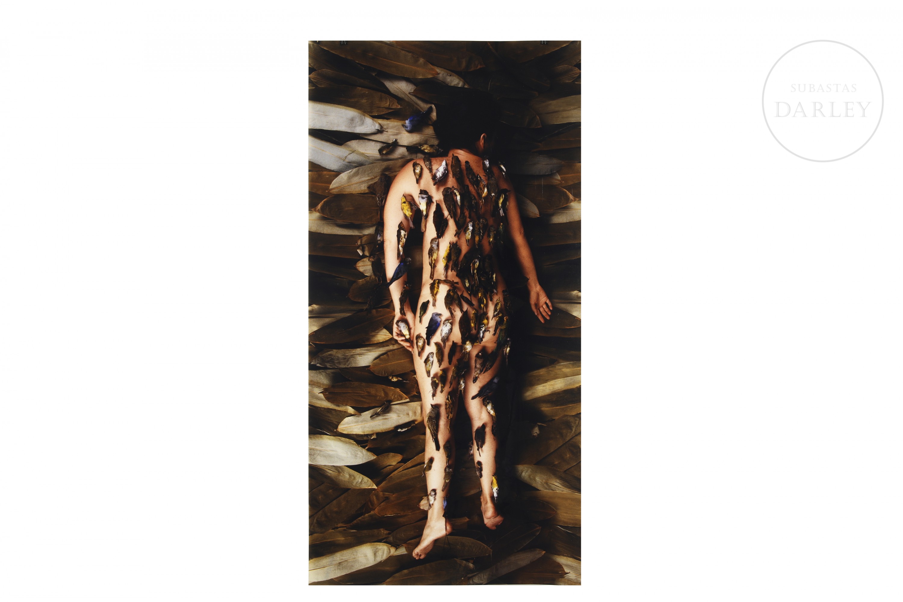 Photograph on Duratron paper. Photo-performance in which the artist blends into patterned backgrounds through the use of body paint.