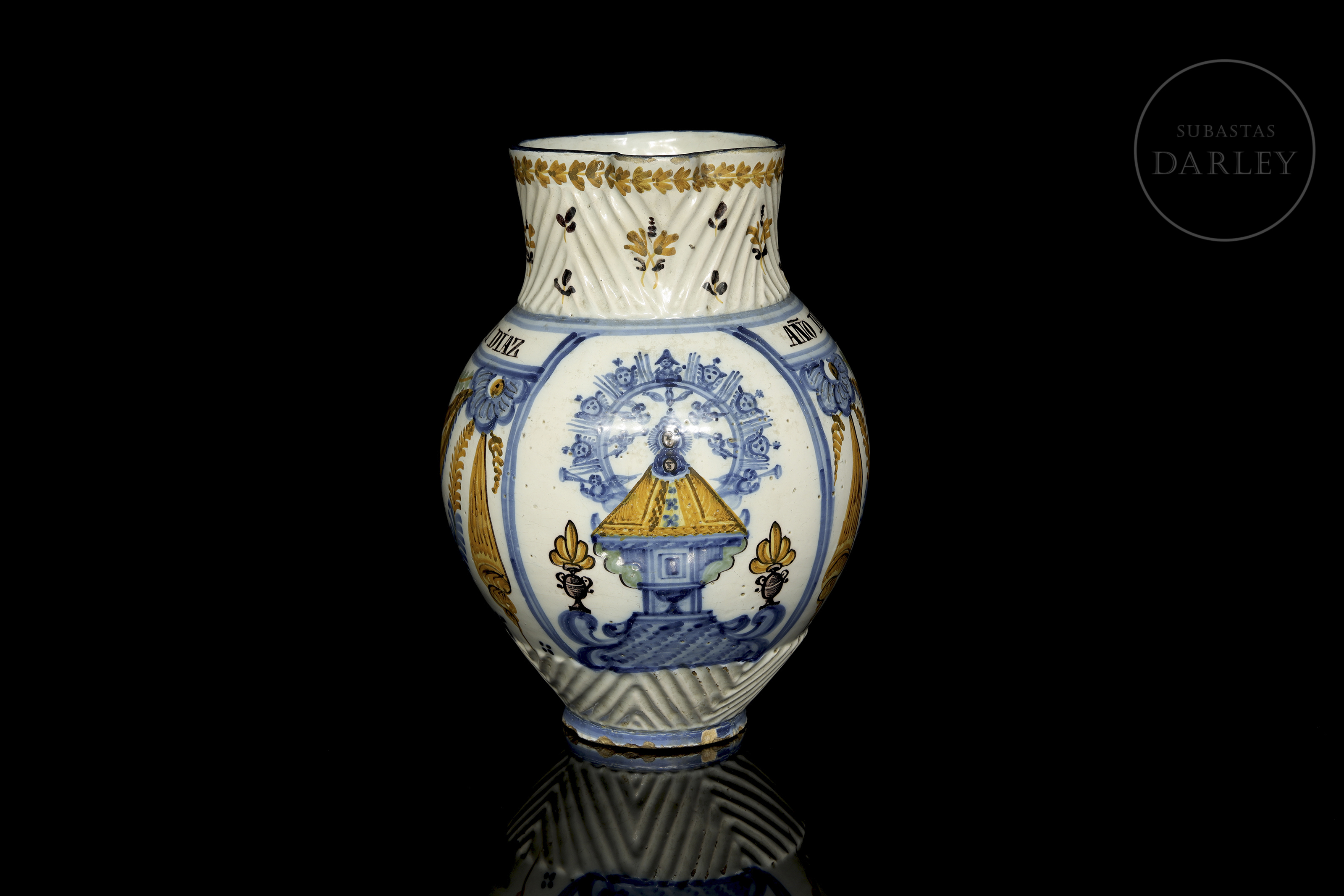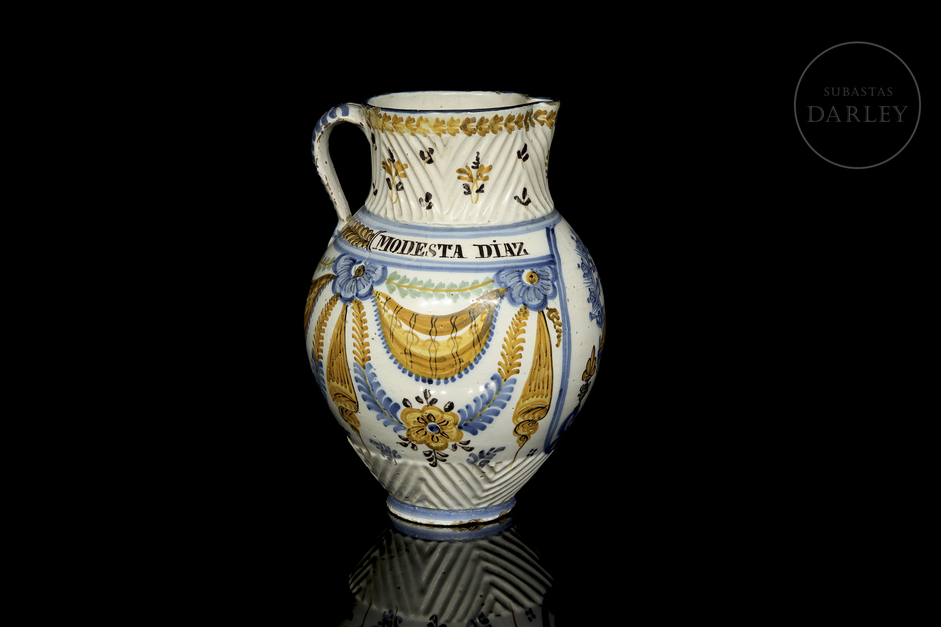 Ceramic jug from Talavera de la Reina, Modesta Diaz, 1865