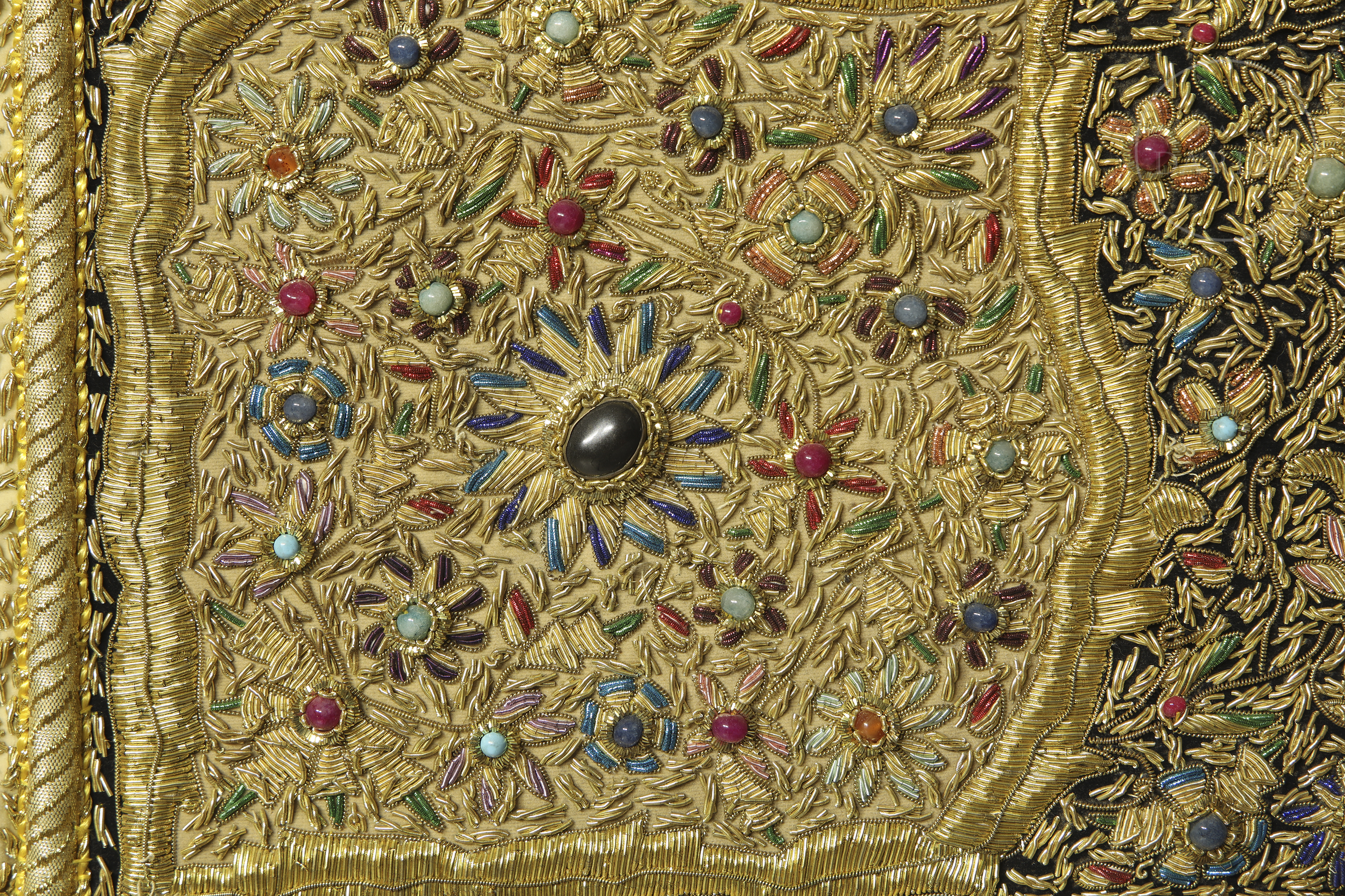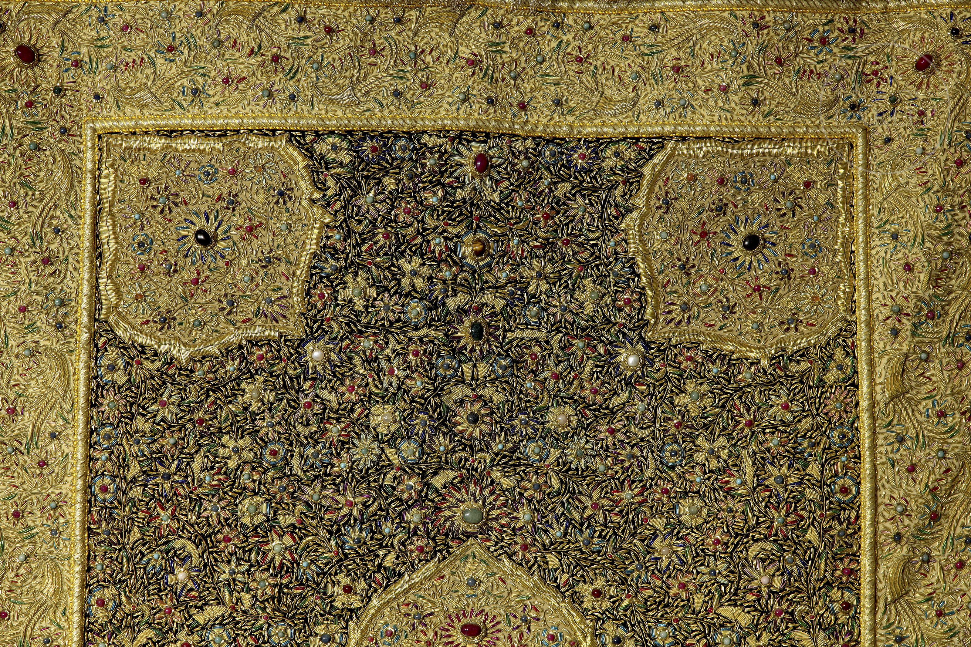 Embroidered tapestry ‘Zardozi’, with coloured gems, India, 20th century