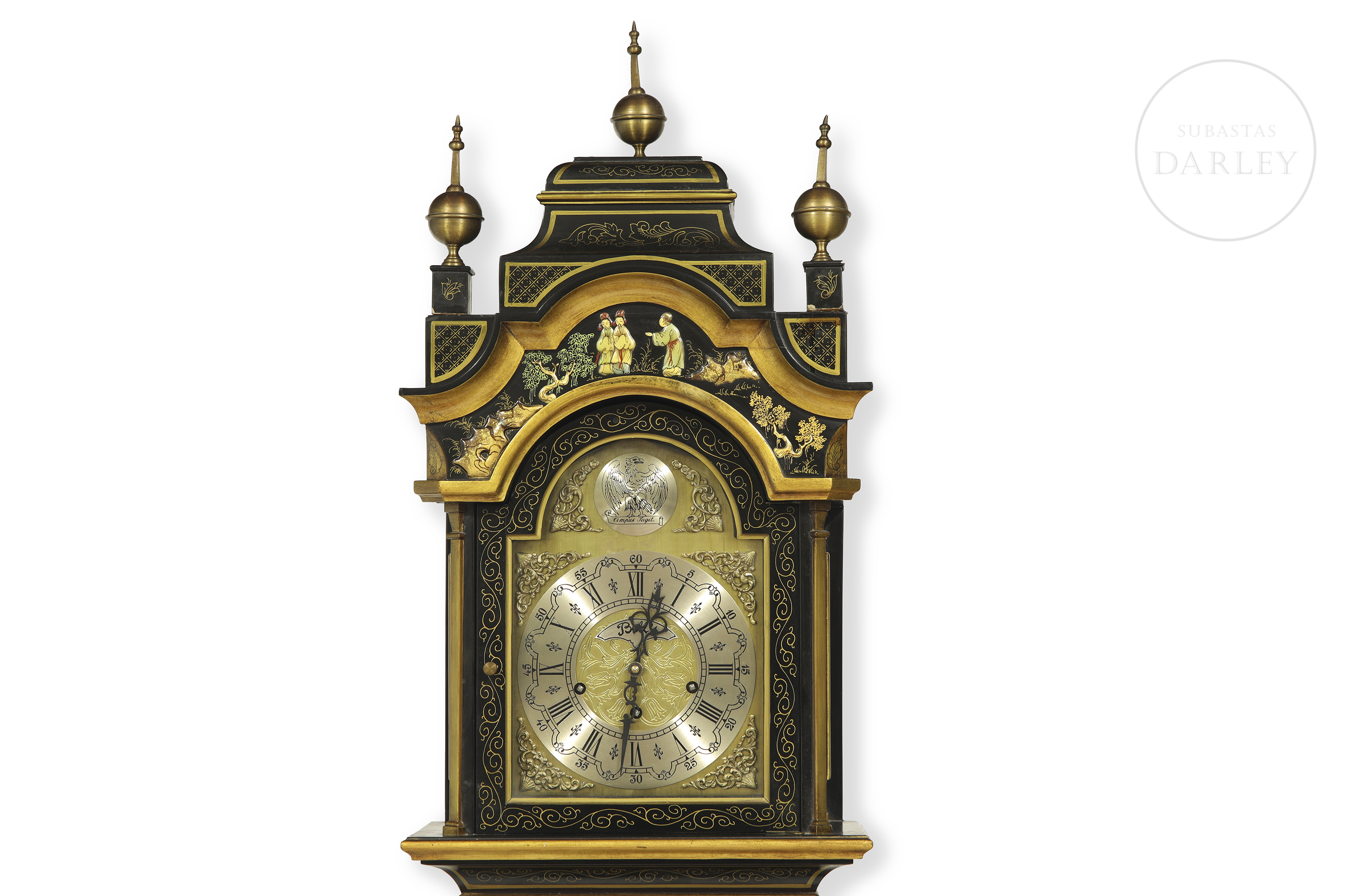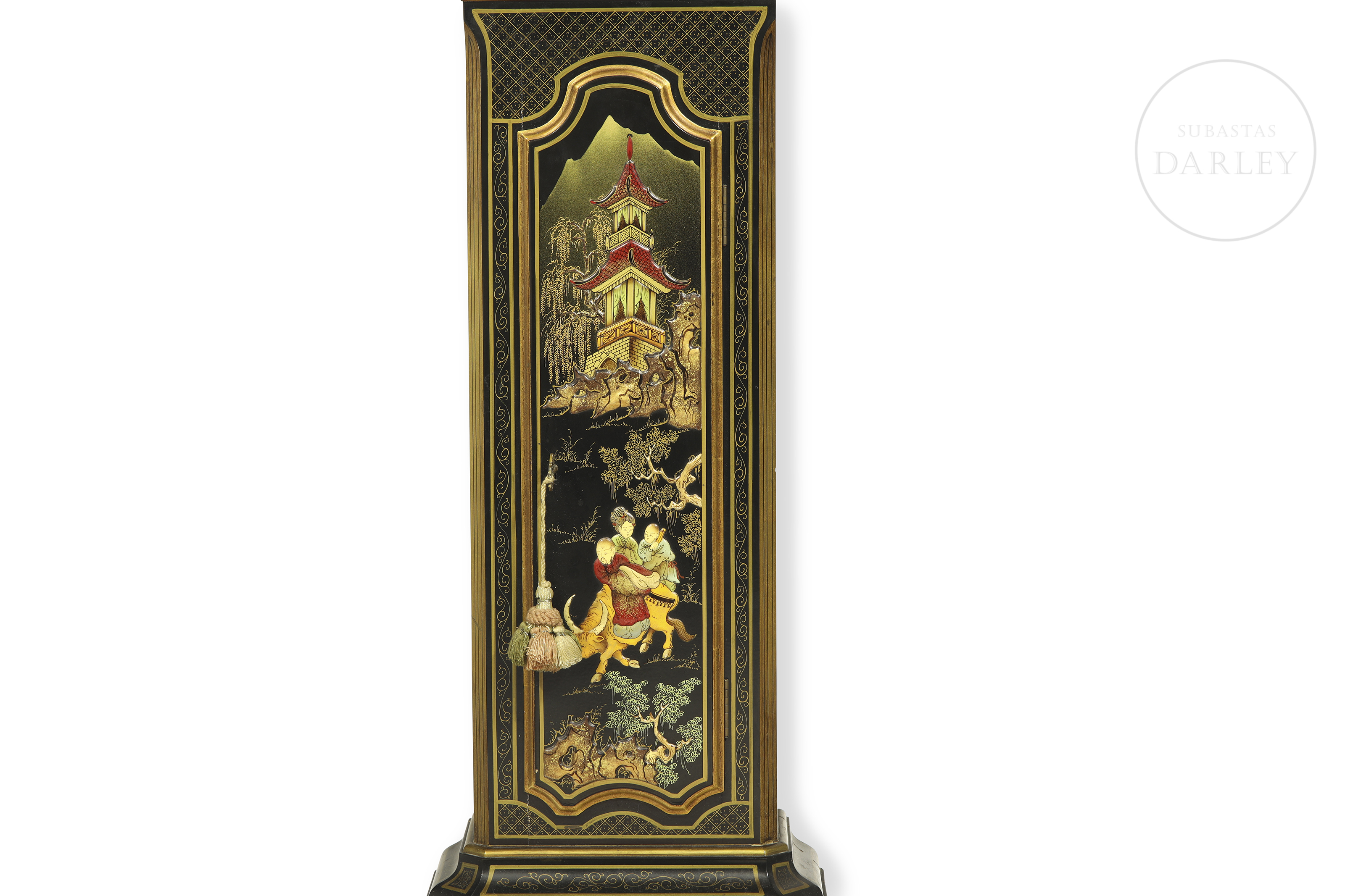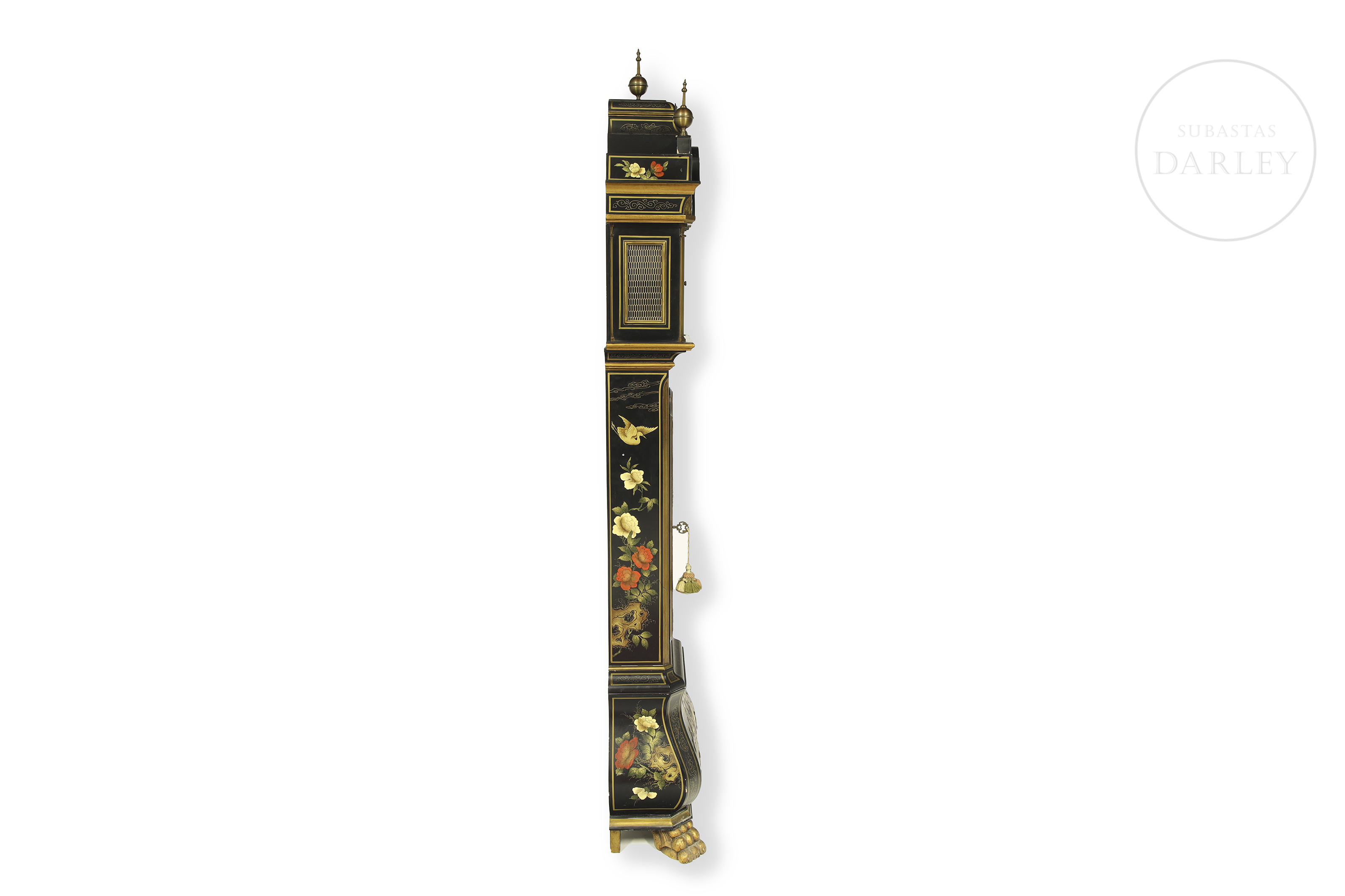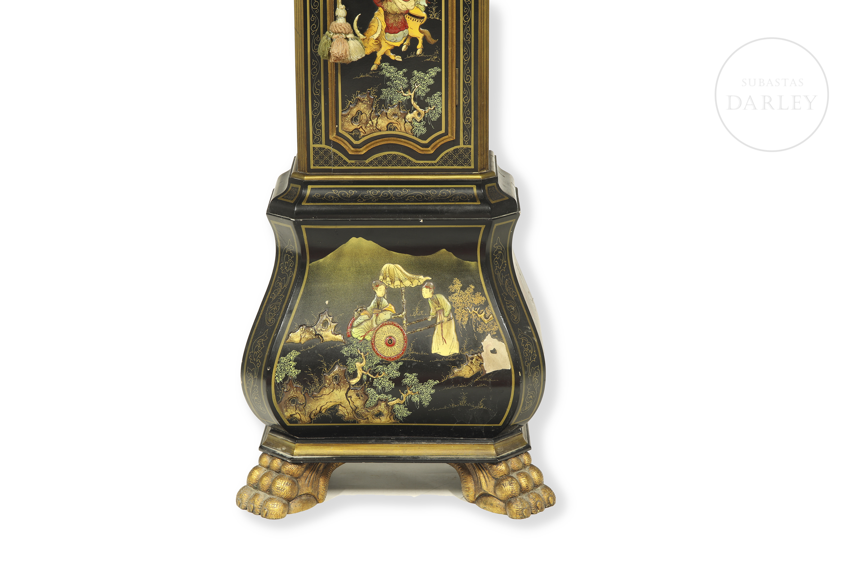Grandfather clock decorated in chinoiserie style. Bell's