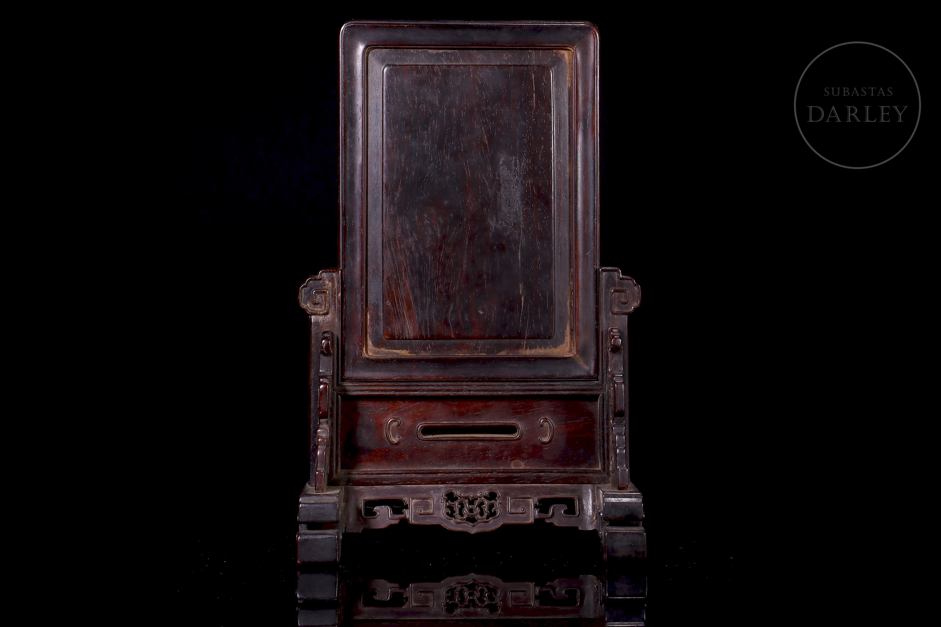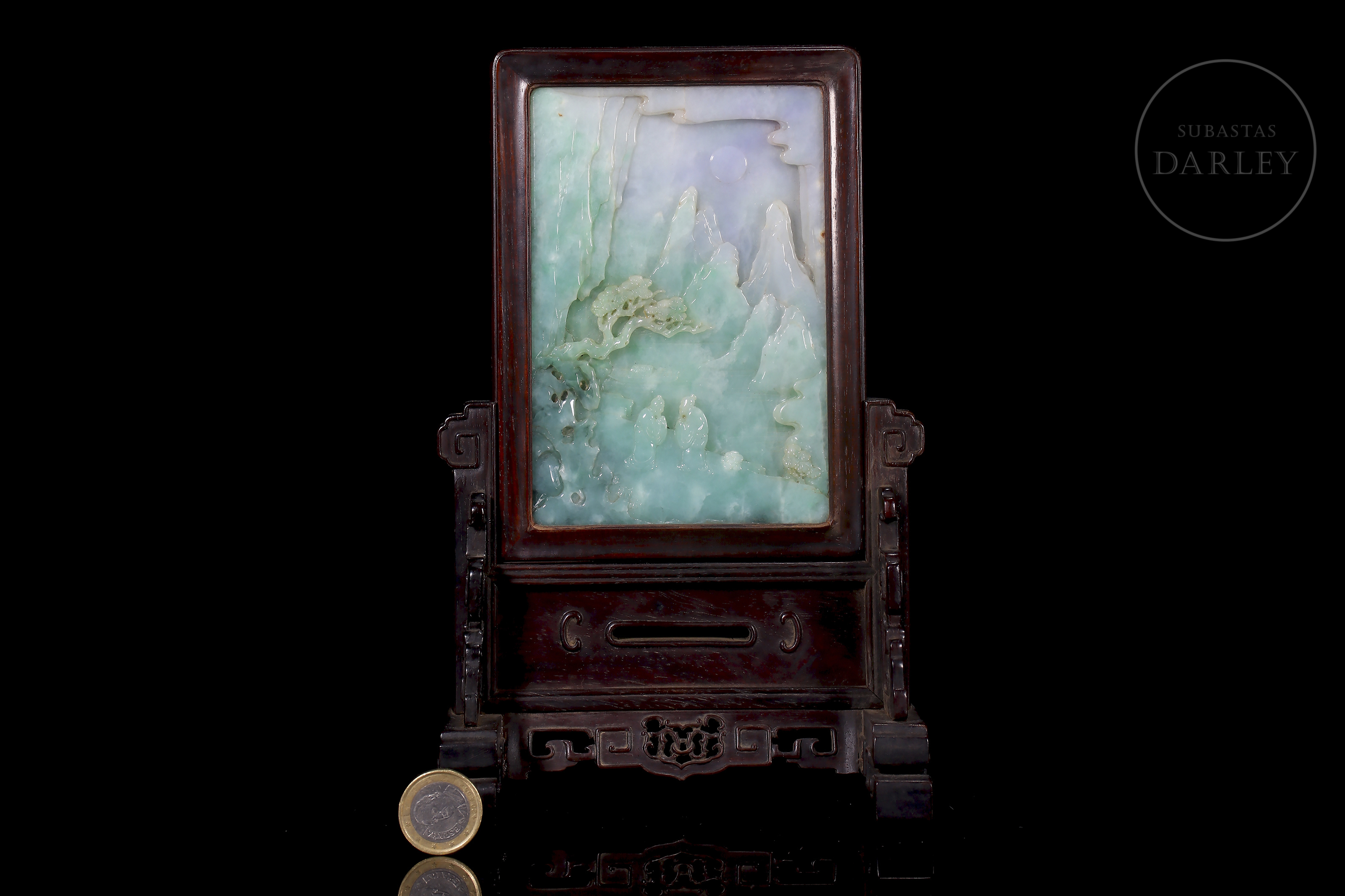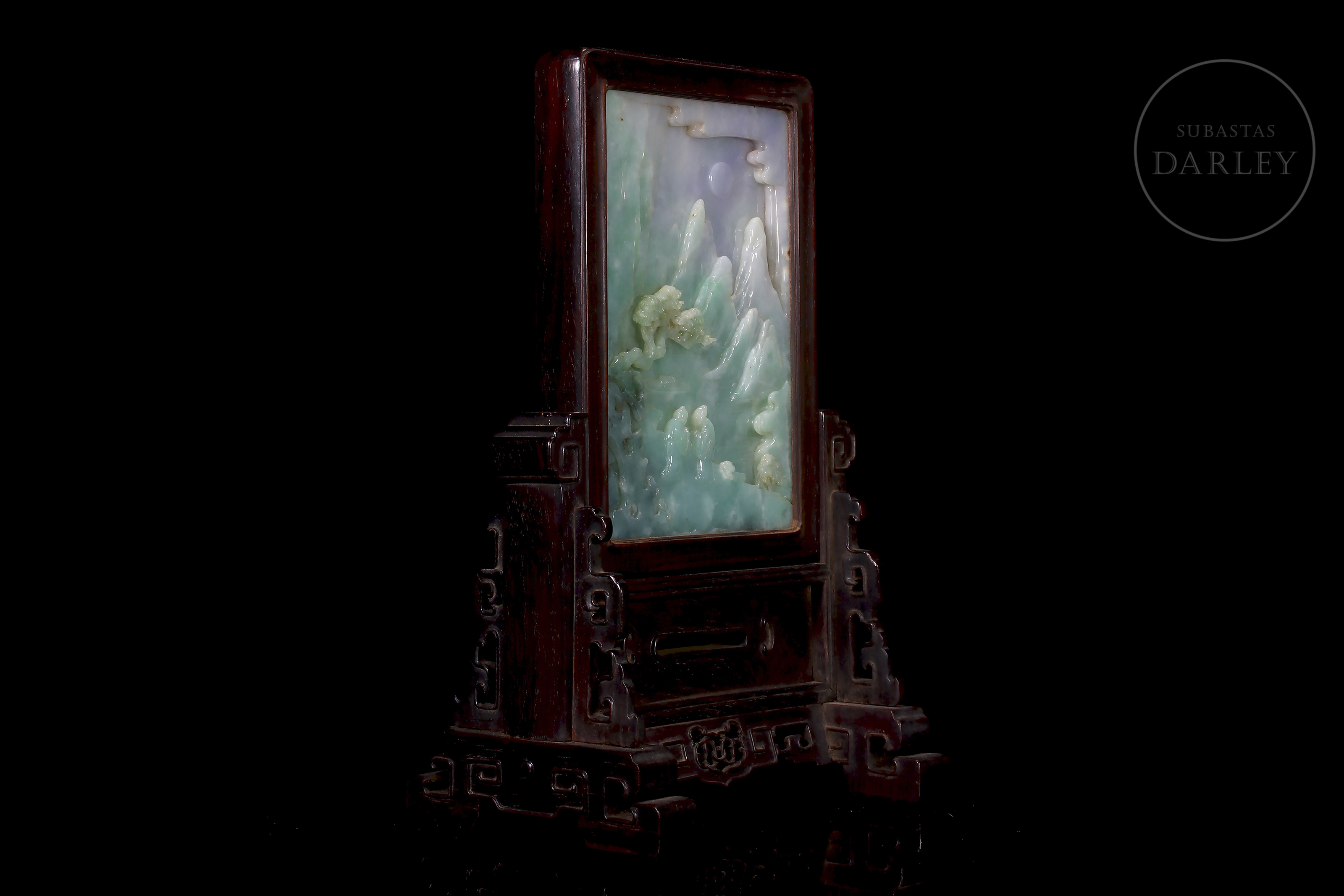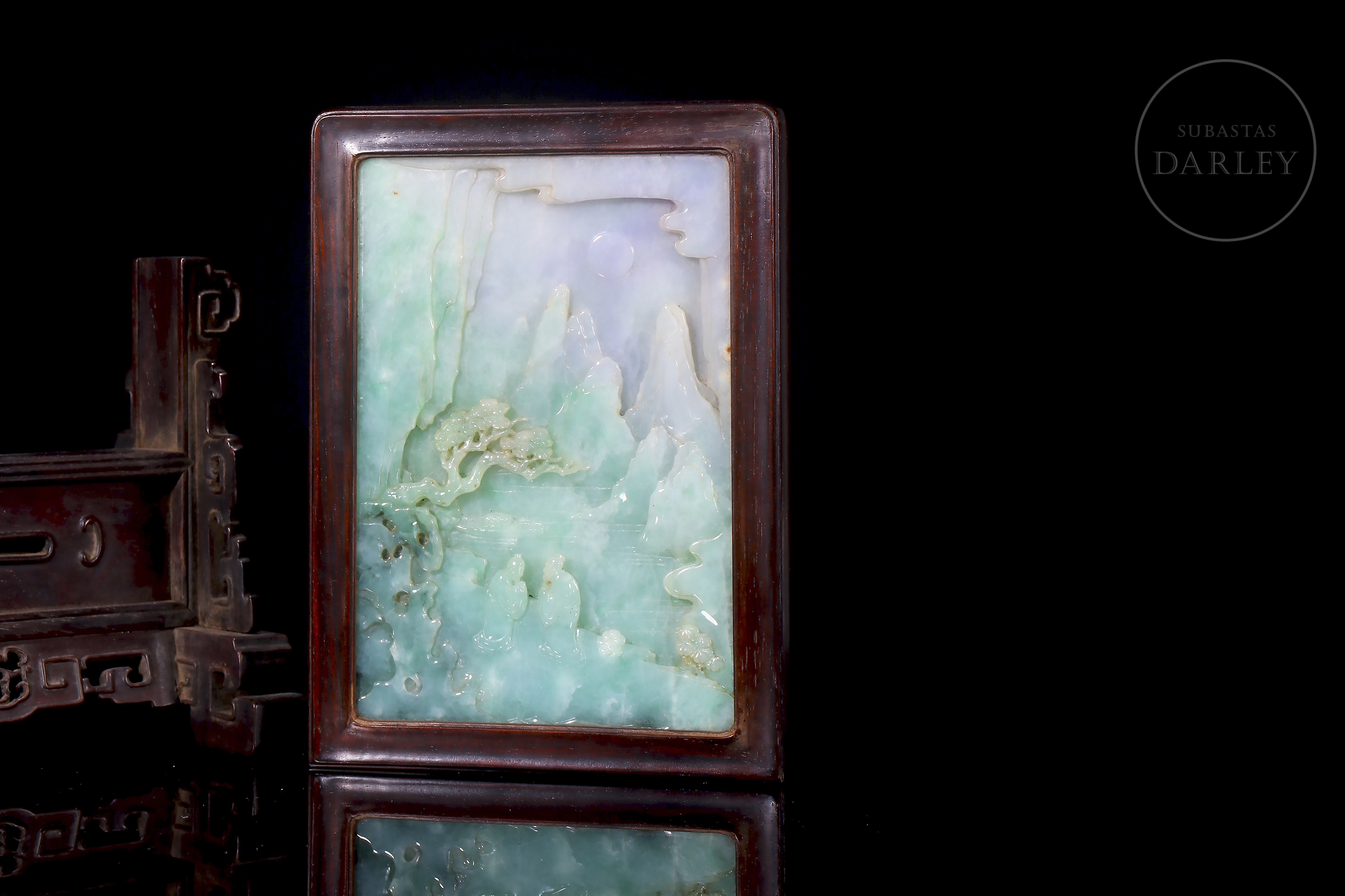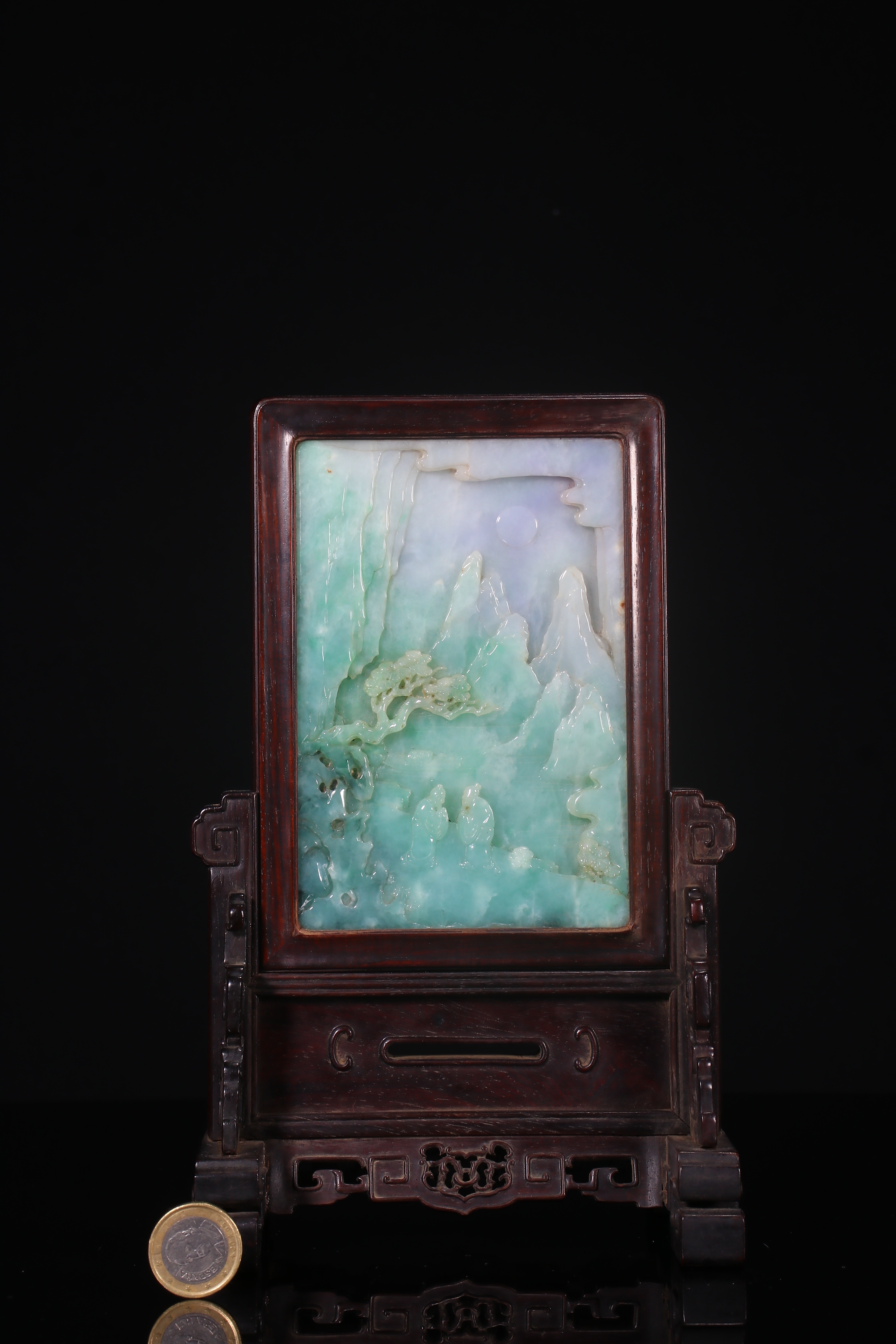 Jadeite panel with wooden frame, ‘Landscape,’ Qing dynasty
