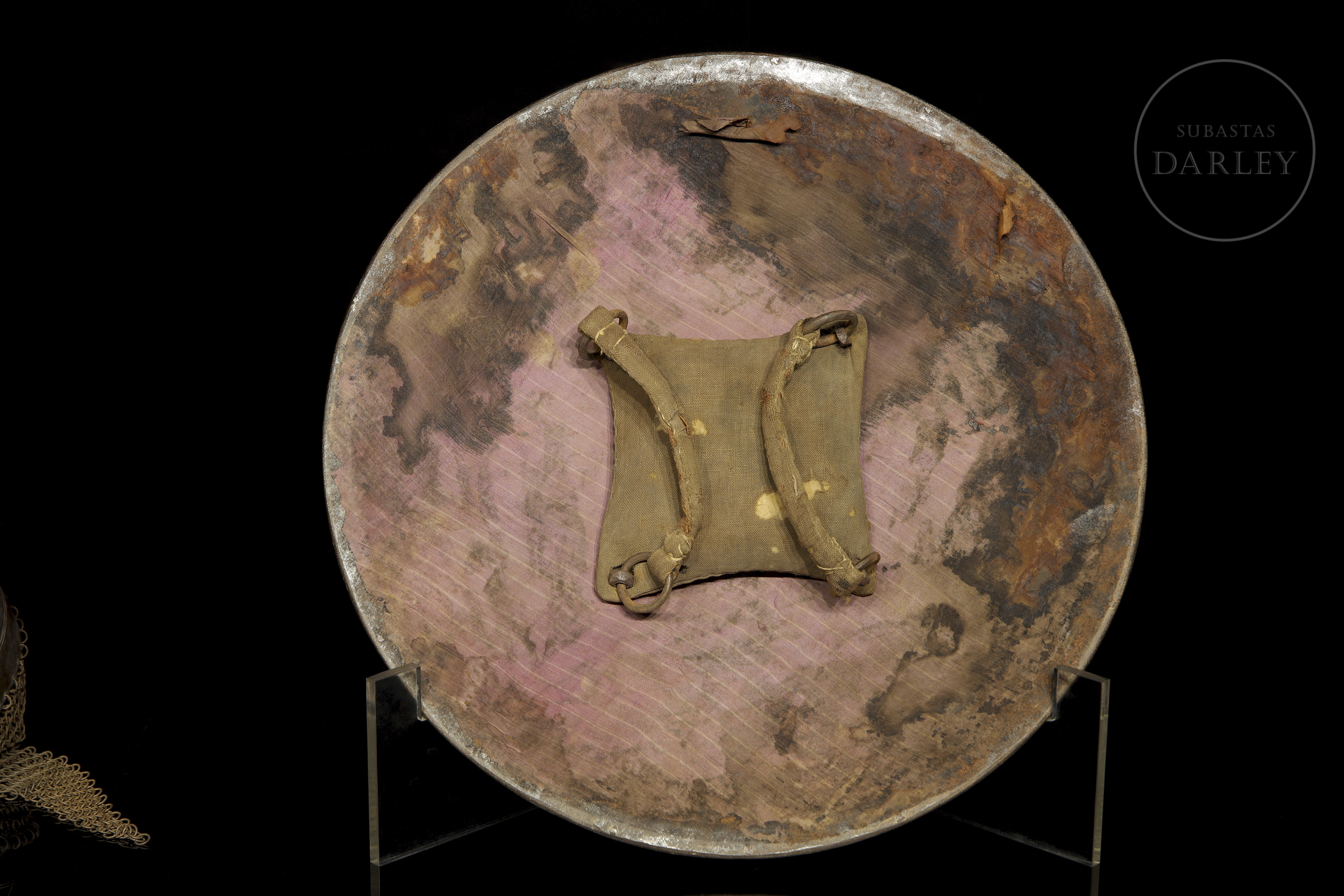 Helmet size: 34.5 x 29 cm (approx.); Shield diameter: 38 cm