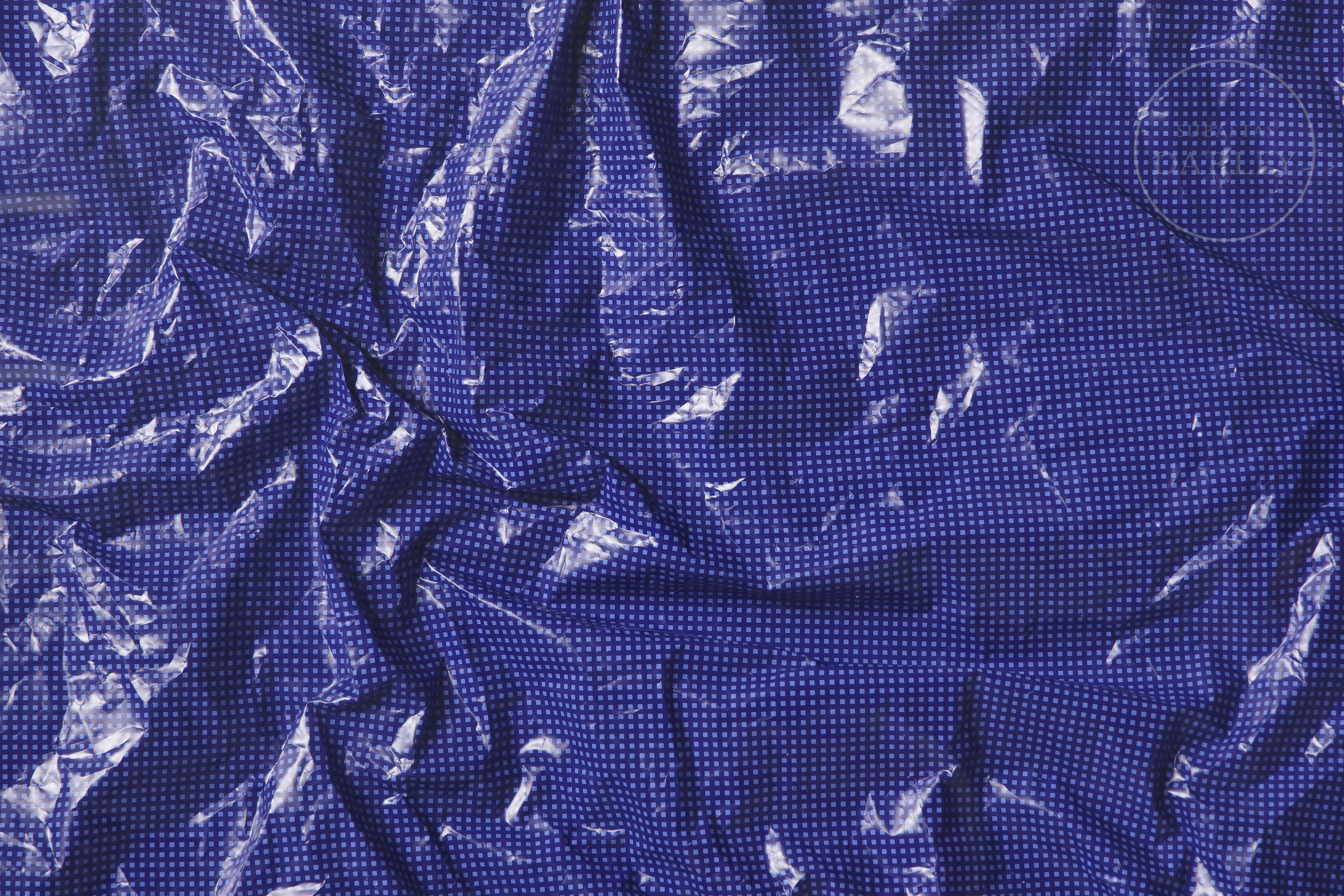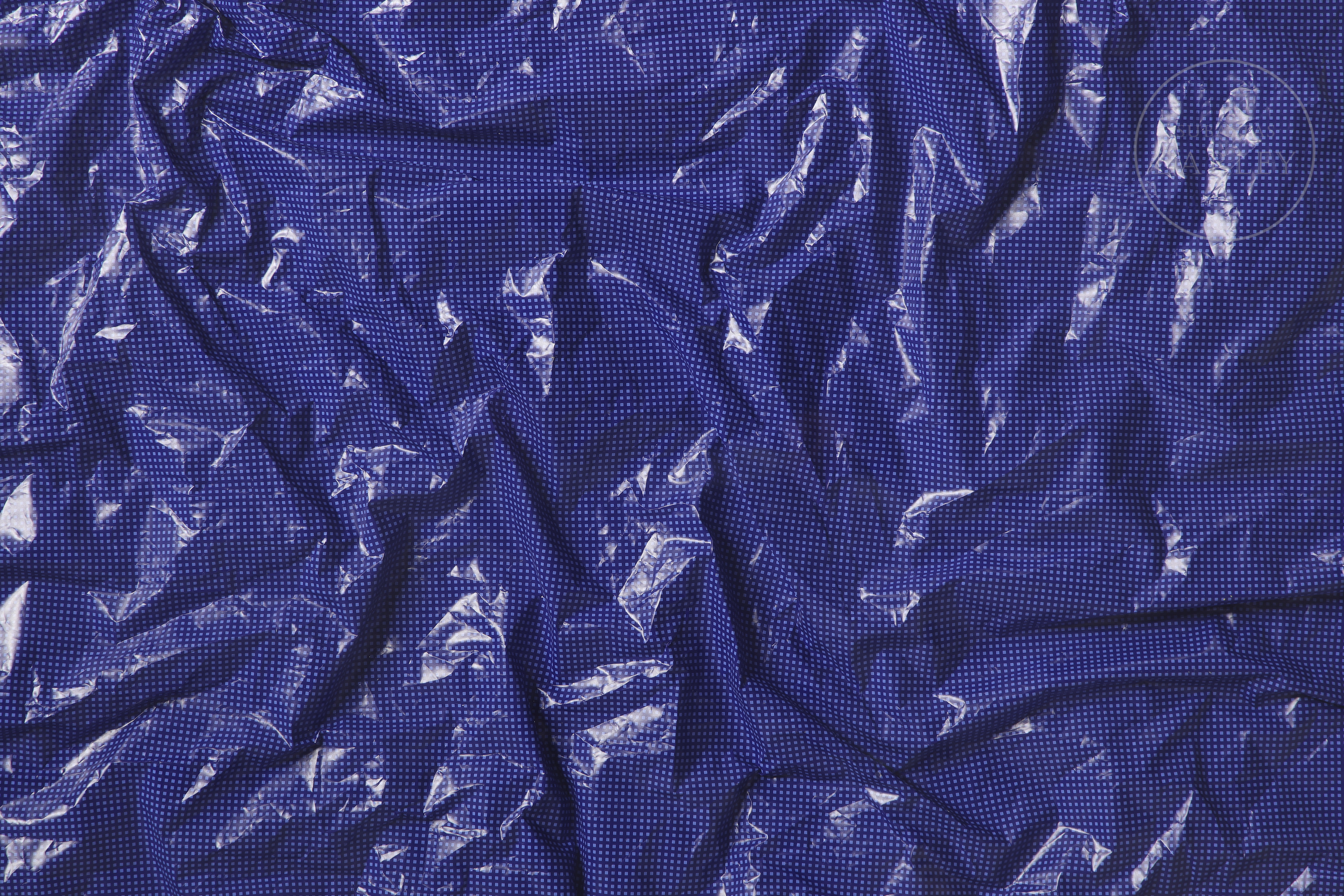 Intervention on printed paper. Blue abstract composition. Signed and numbered “83/99” on the reverse.