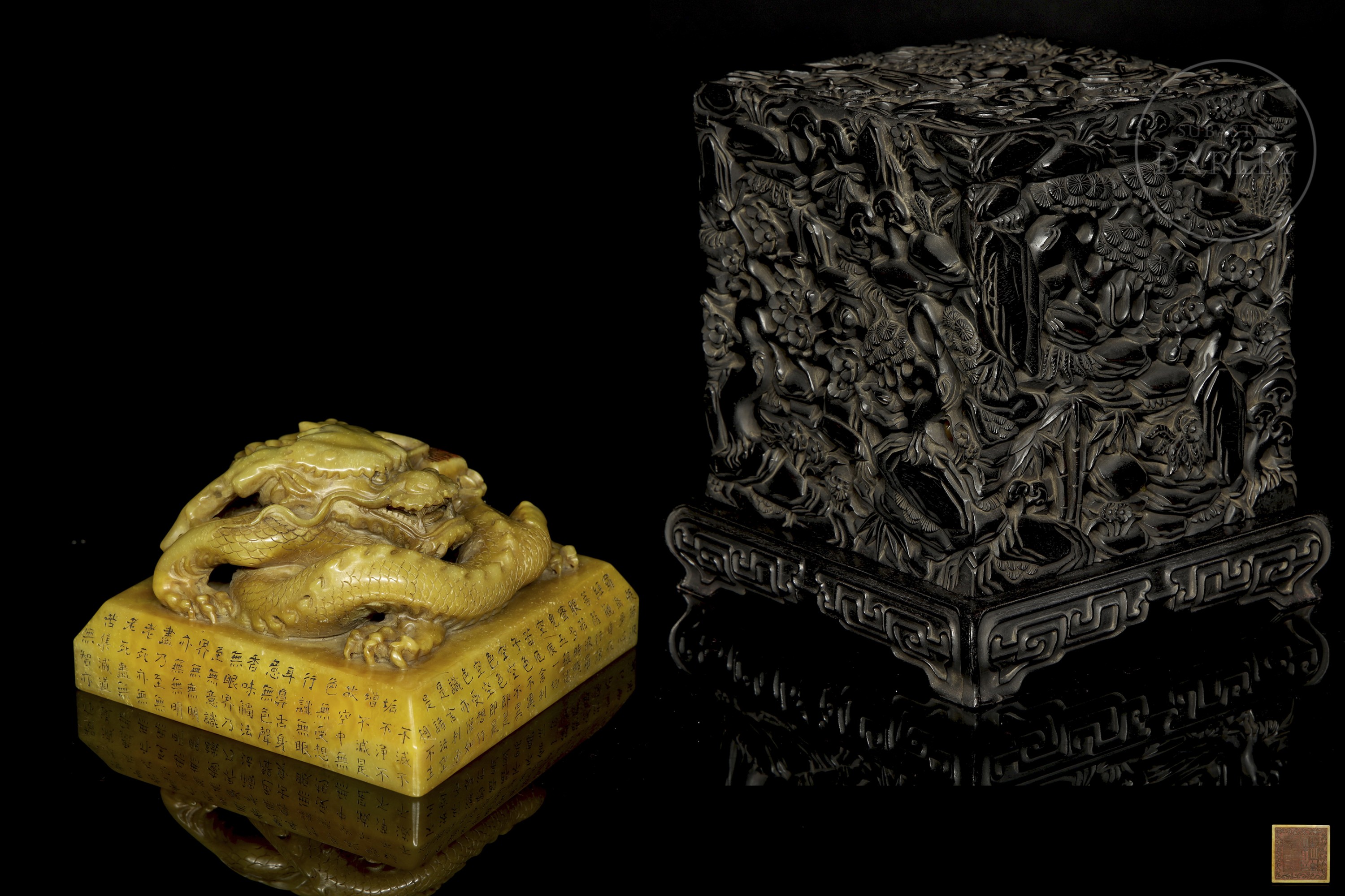 Yellow jade ‘Dragon’ seal with Zitan box, Qing dynasty
