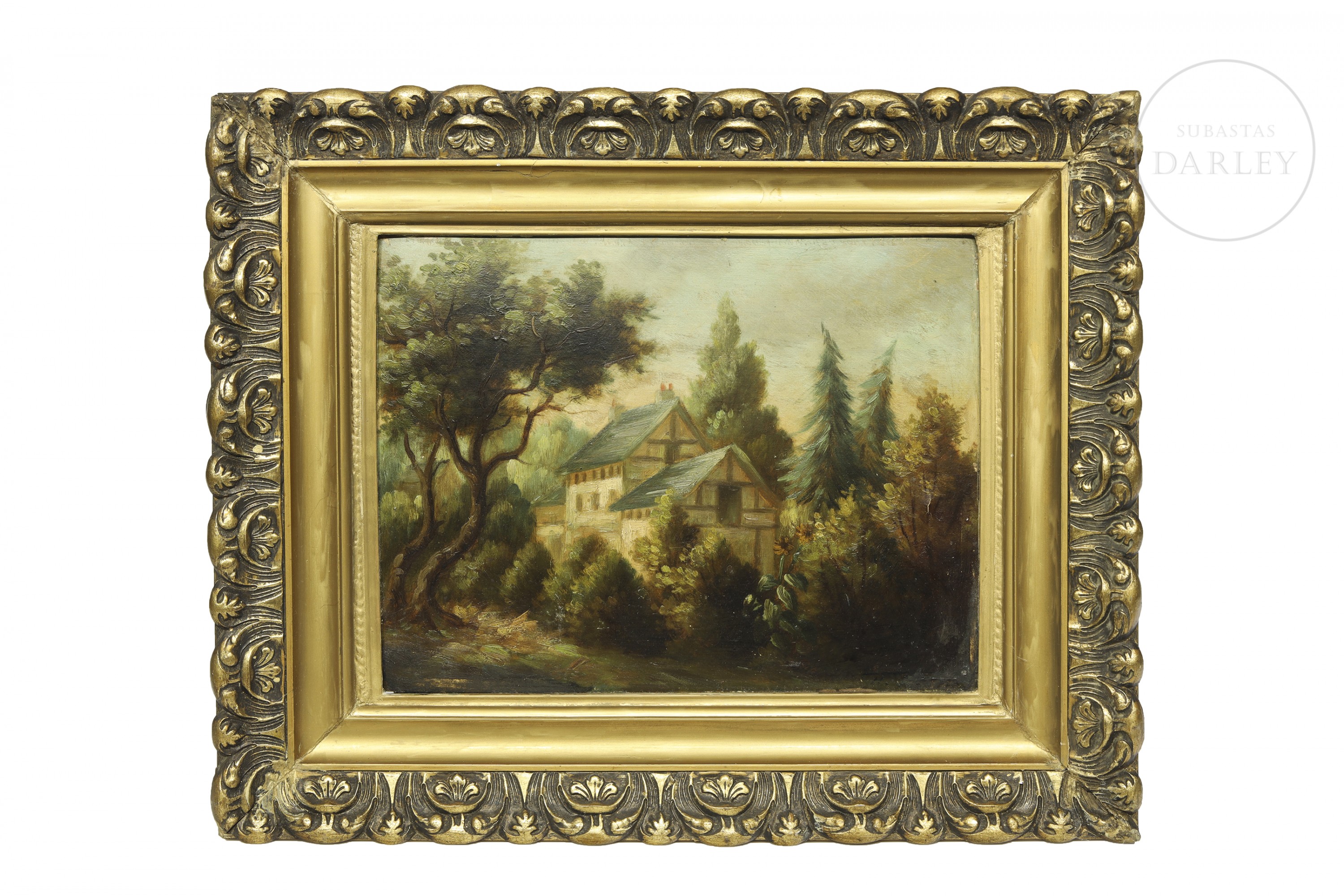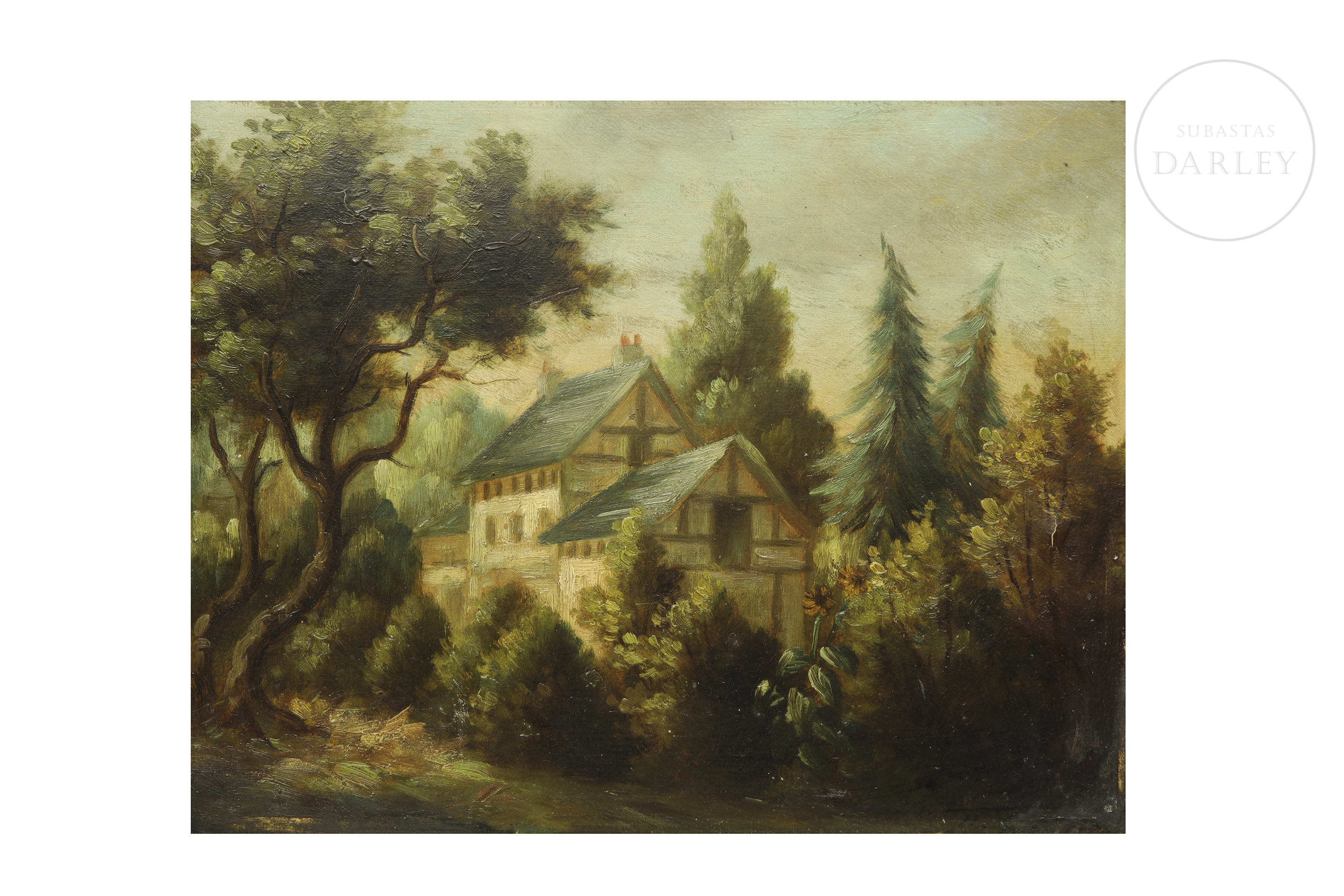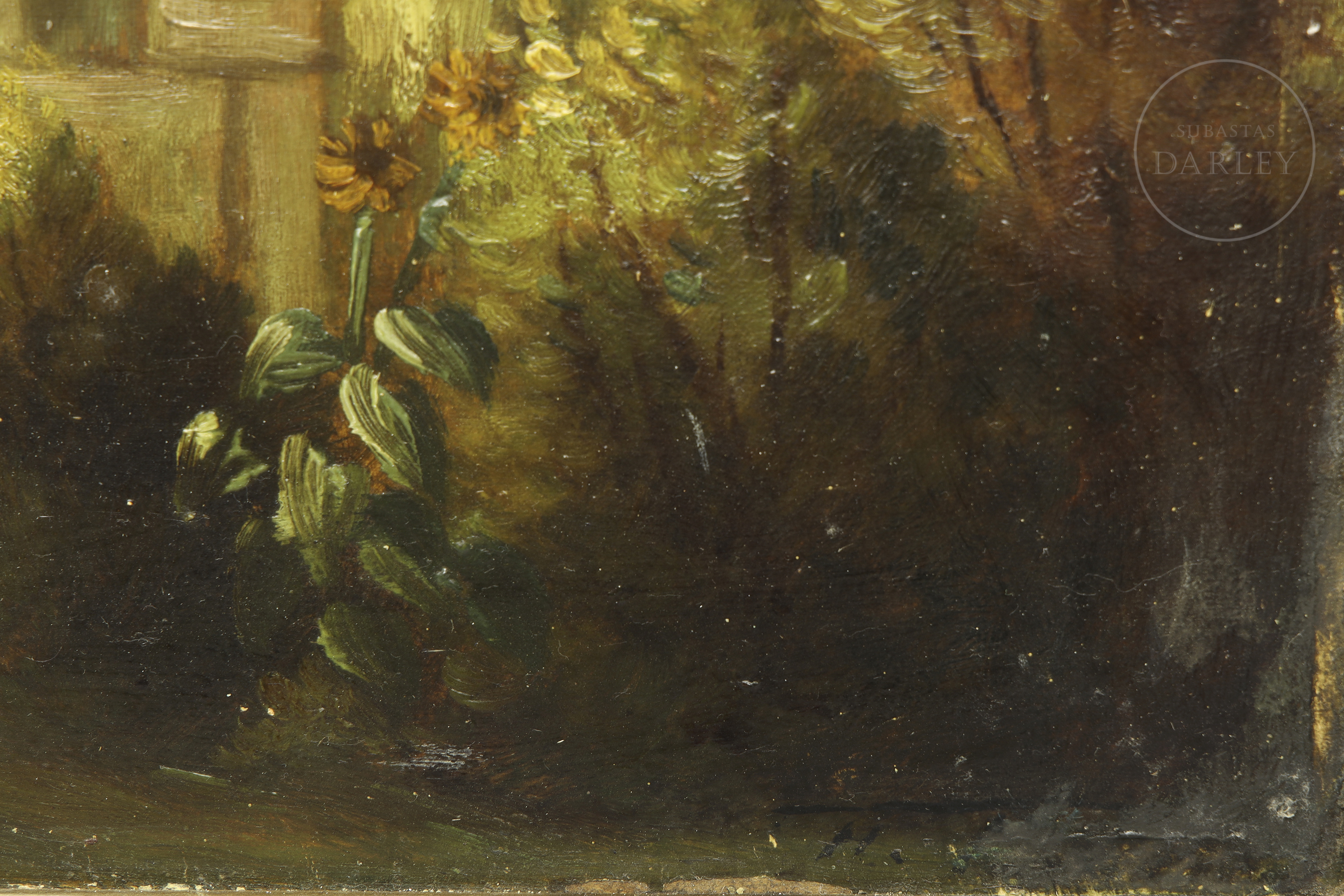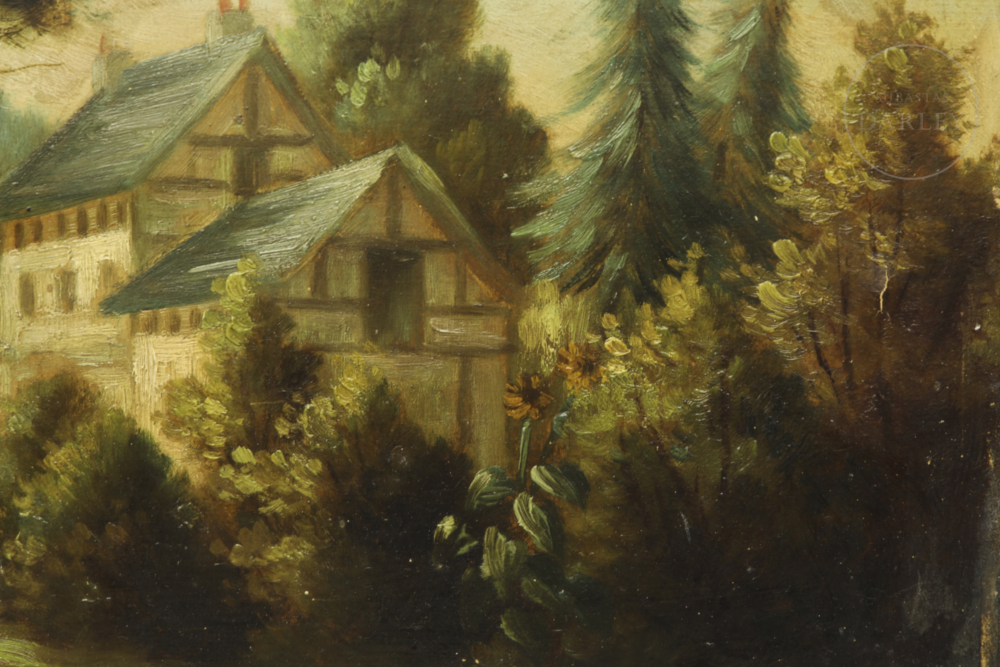 Oil on canvas. Partially visible signature "H.(?)" on the lower right-hand side of the painting