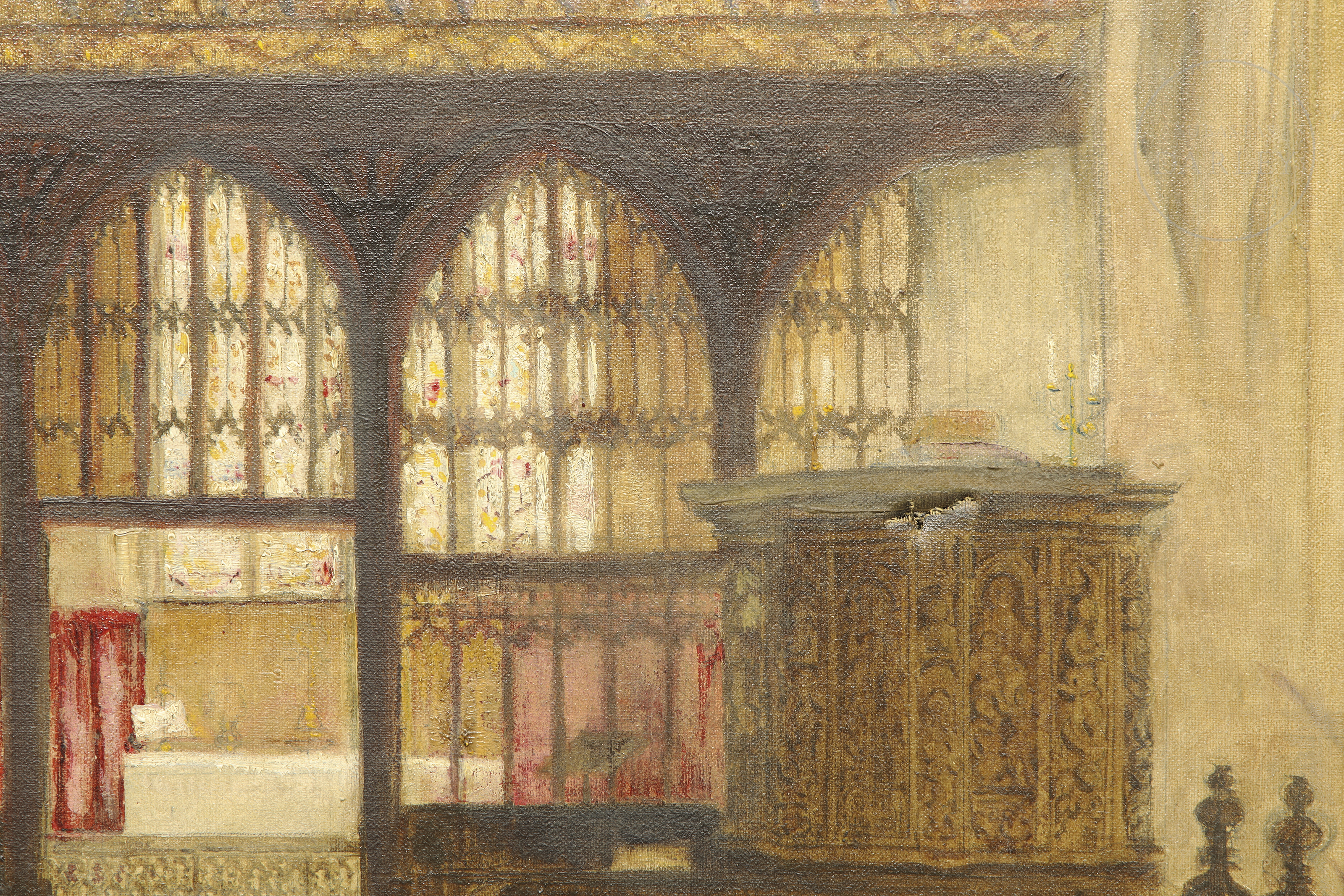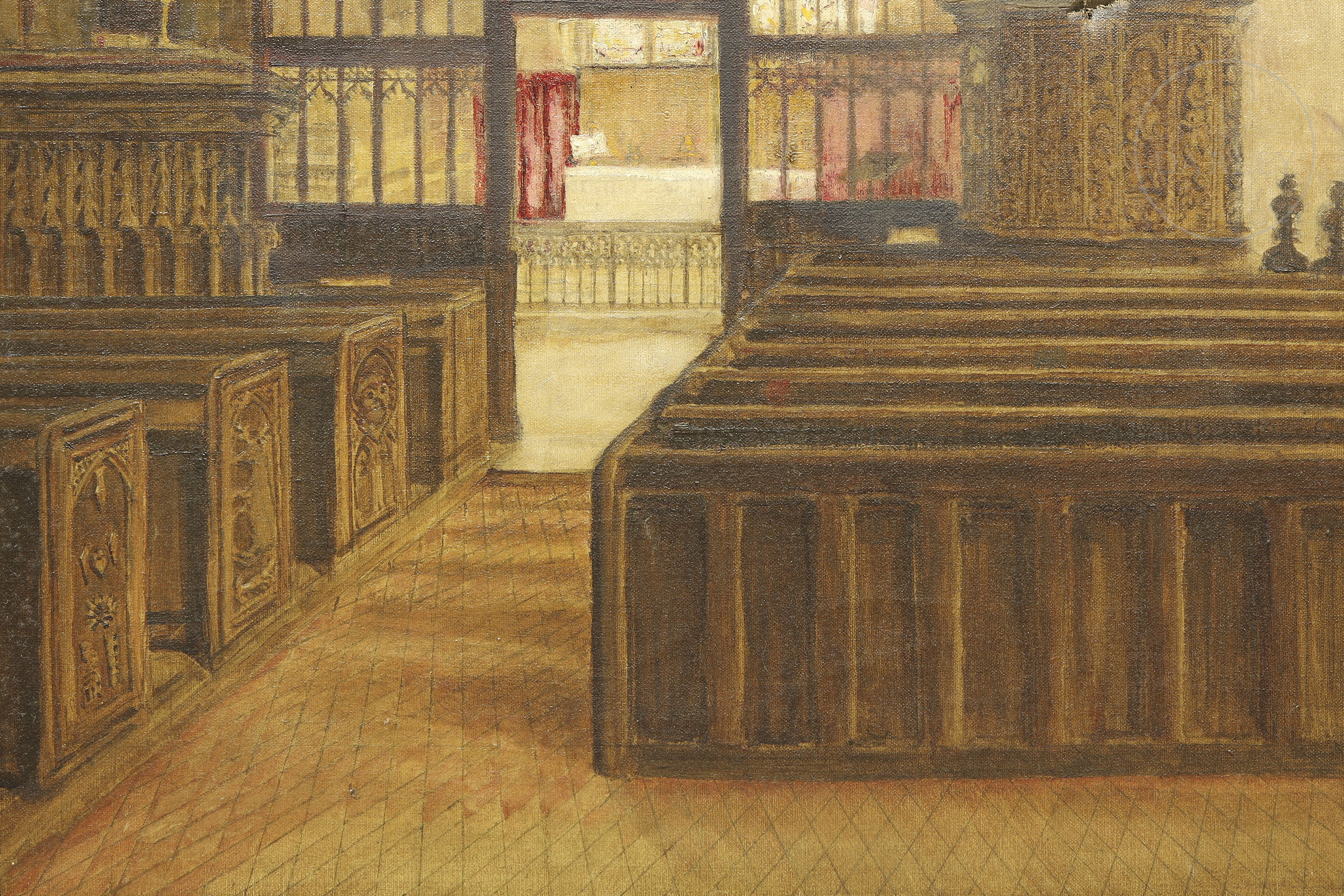 20th century painting "Interior of a church"