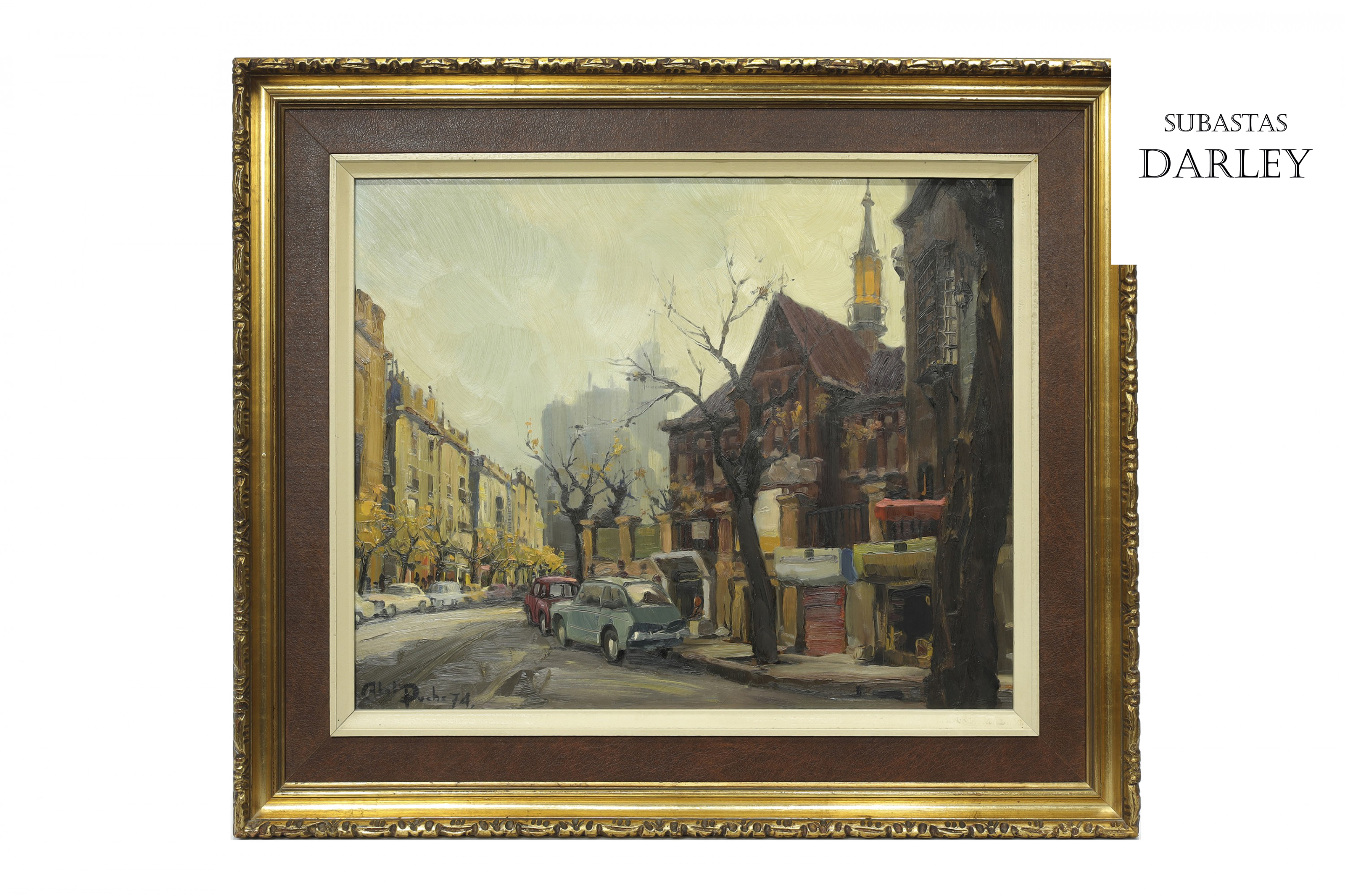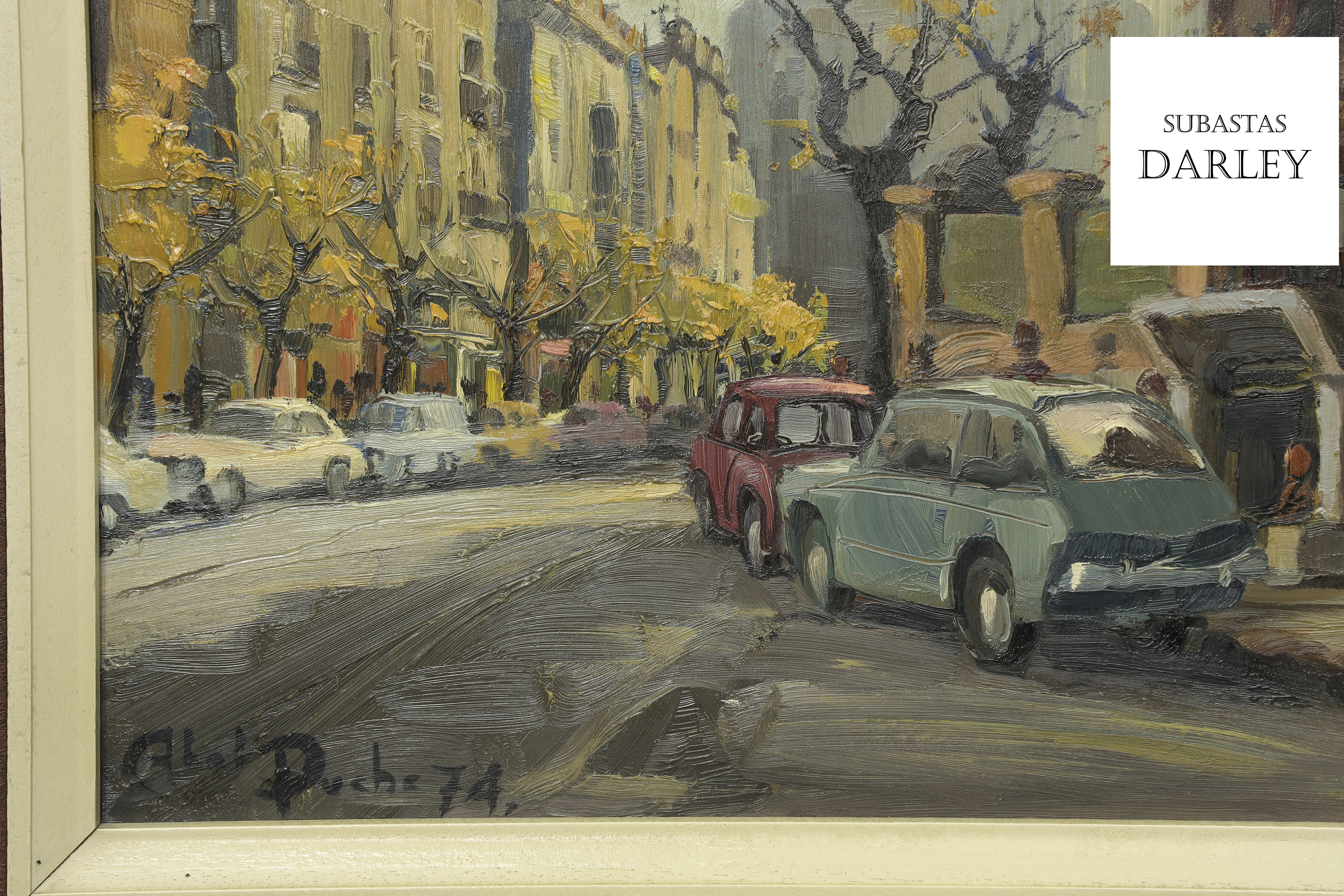 Oil on tablex. Signed "Abel Puche 74" in the lower right corner.