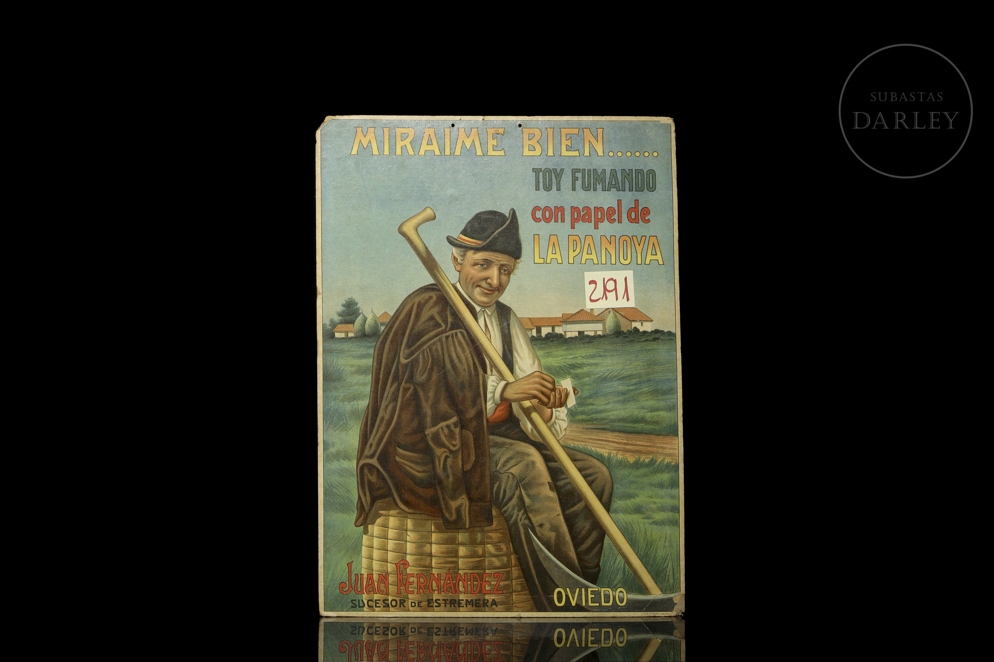Lithograph on soft cardboard. Advertising poster for La Panoya cigarette paper, Oviedo. Based on an oil painting by Tomás García Sampedro. Signed ‘Lit. S. Dura - Valencia’ in the lower right corner.