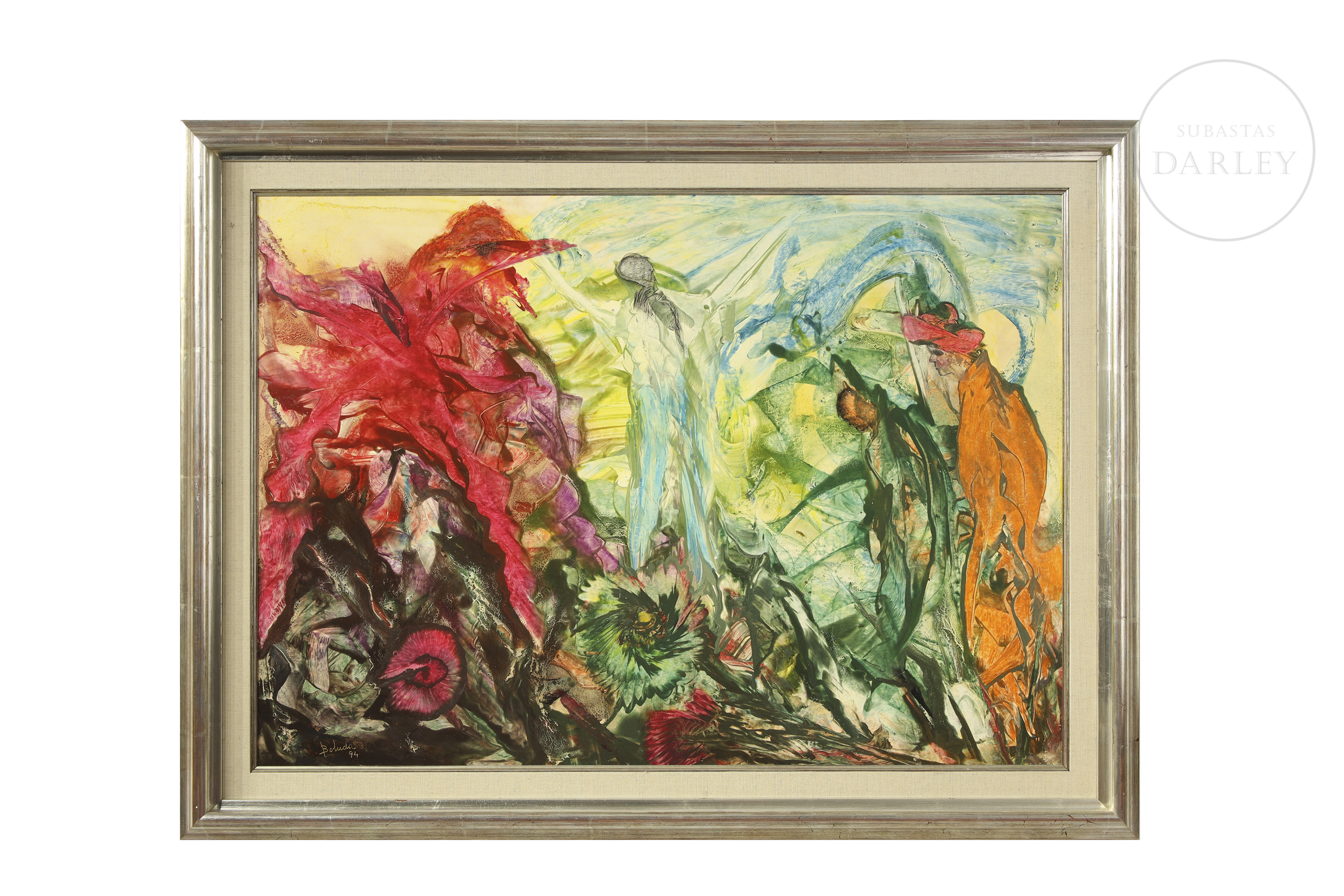 Mixed technique on board. Signed and dated "Boluda/94" in the lower left corner.