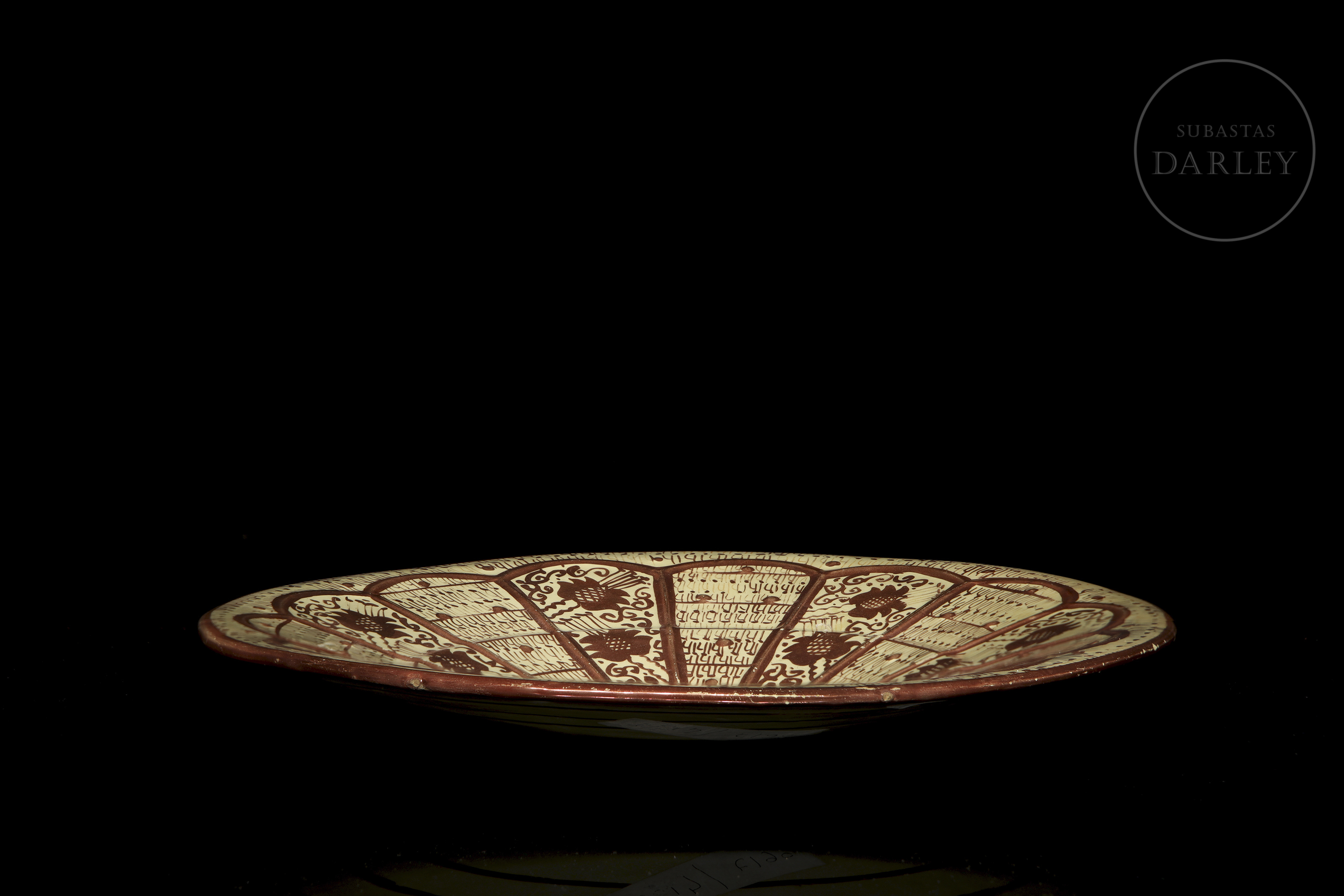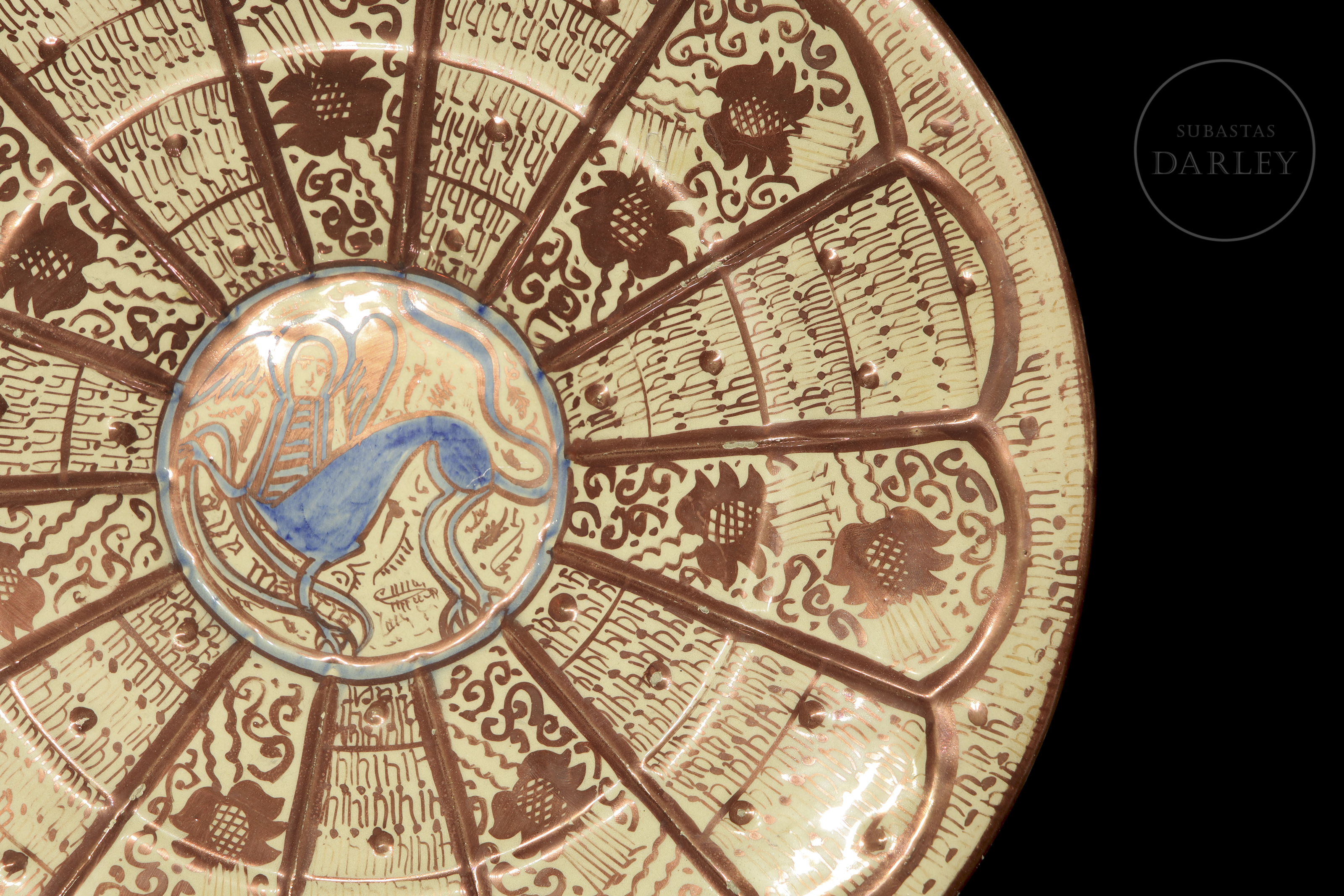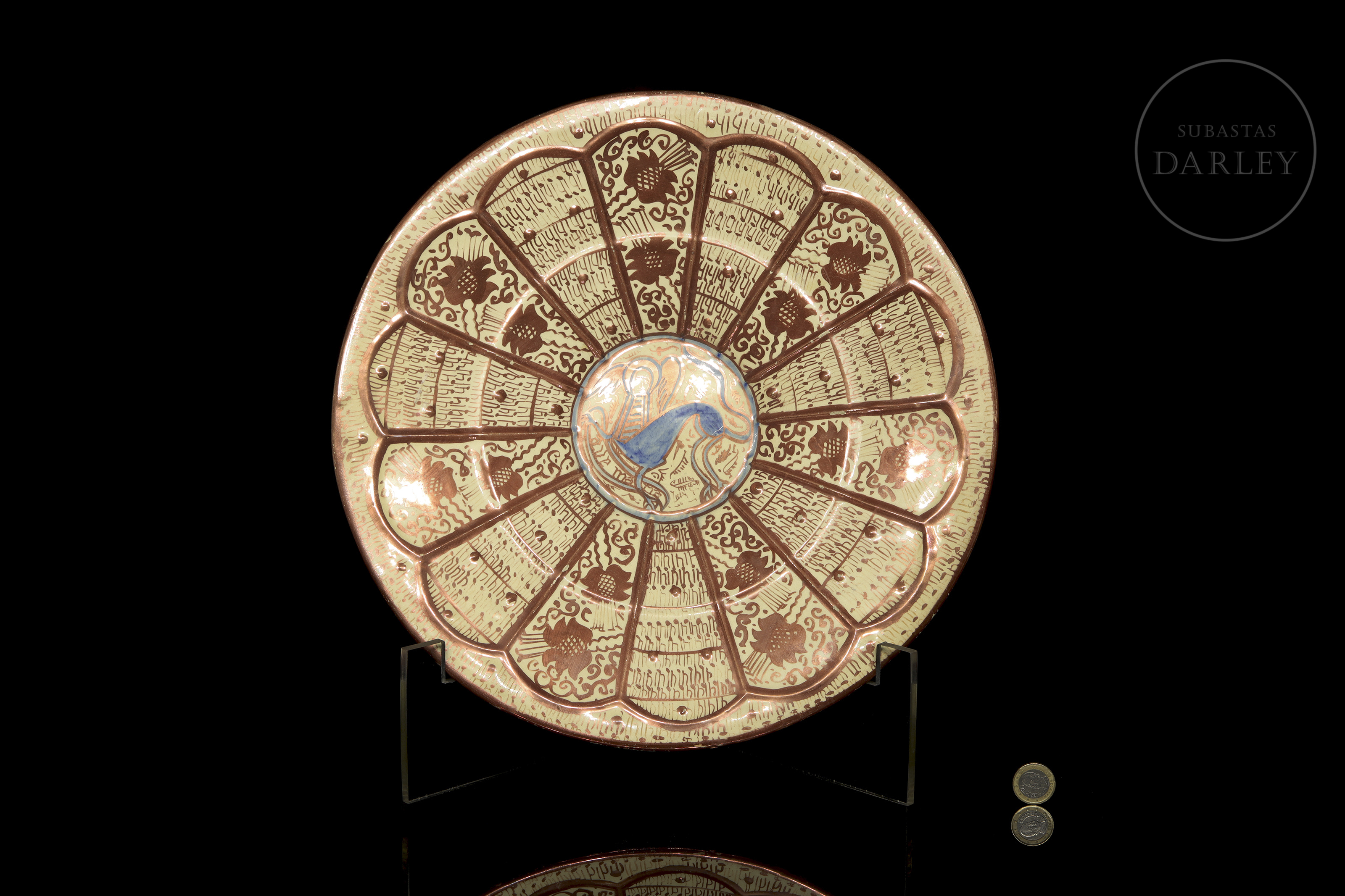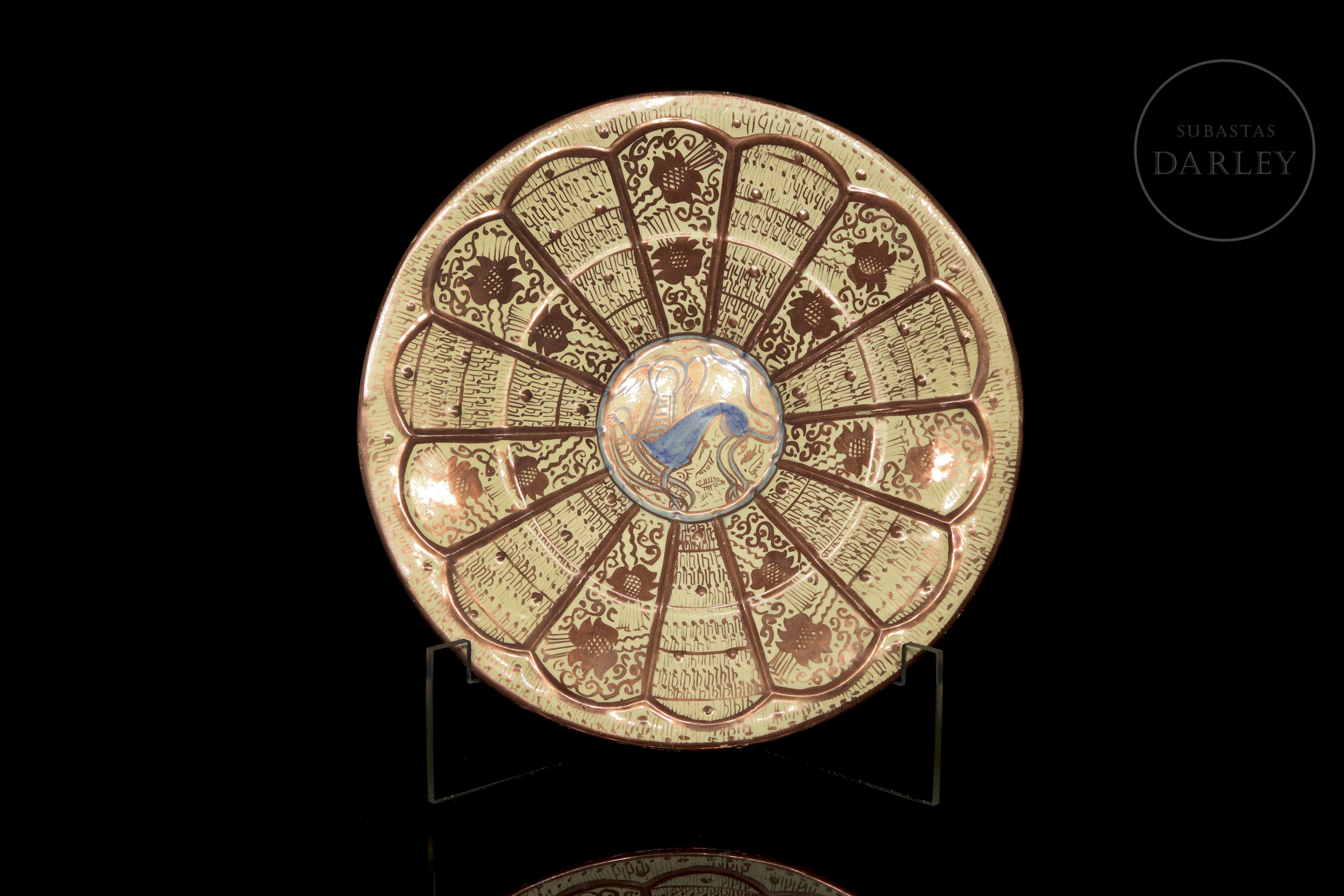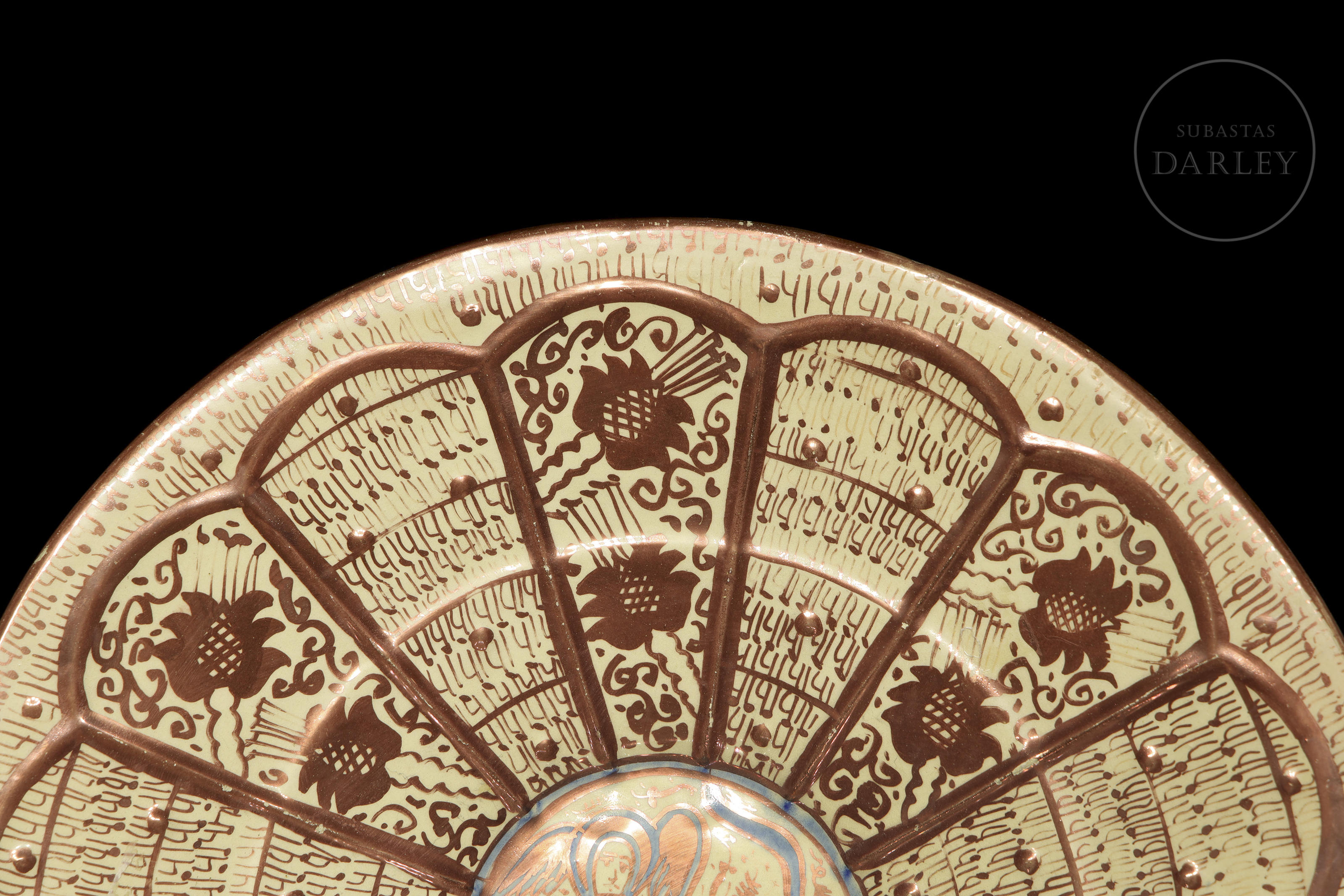 Ceramic plate "Mudejar iconography" metallic glare, 20th century