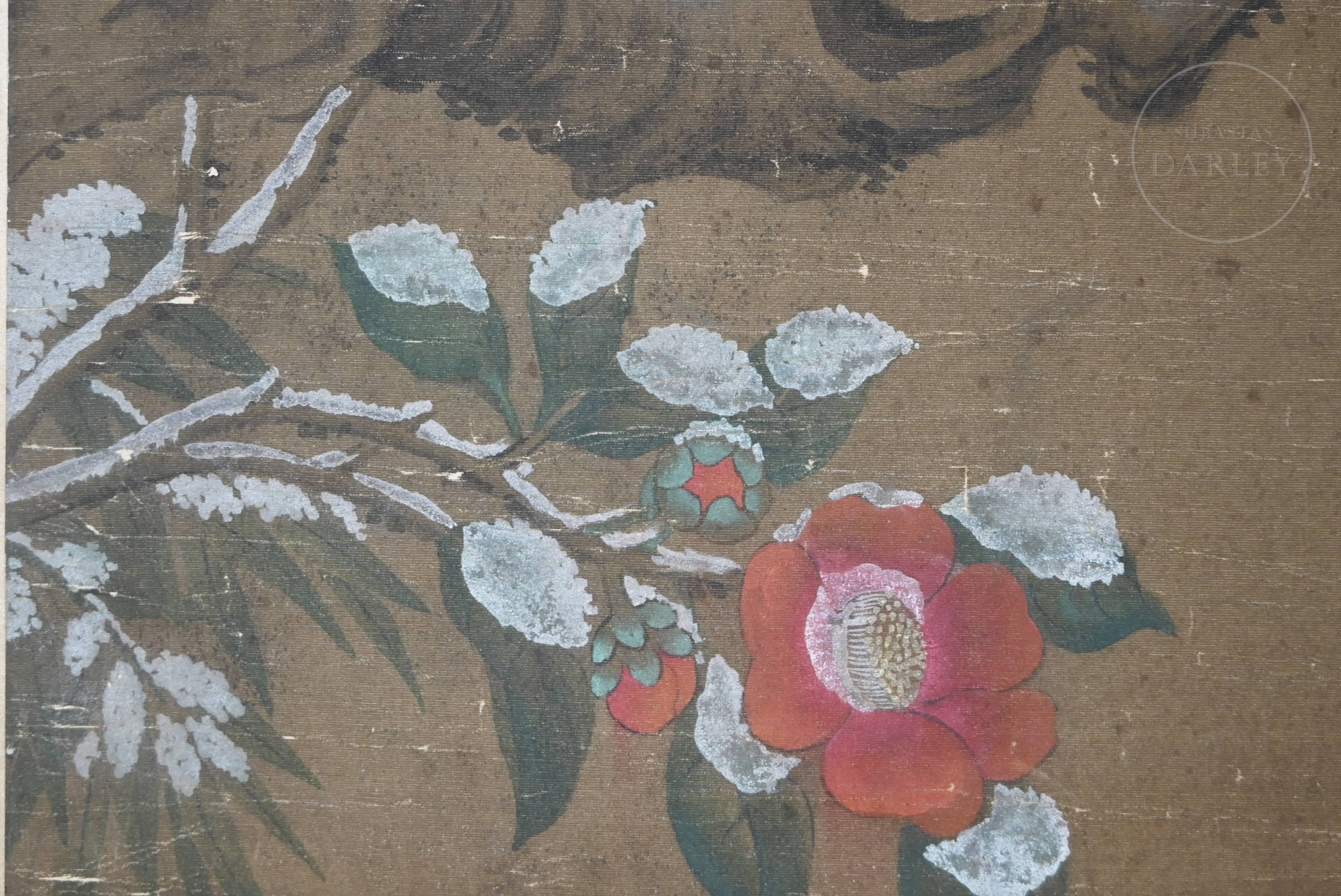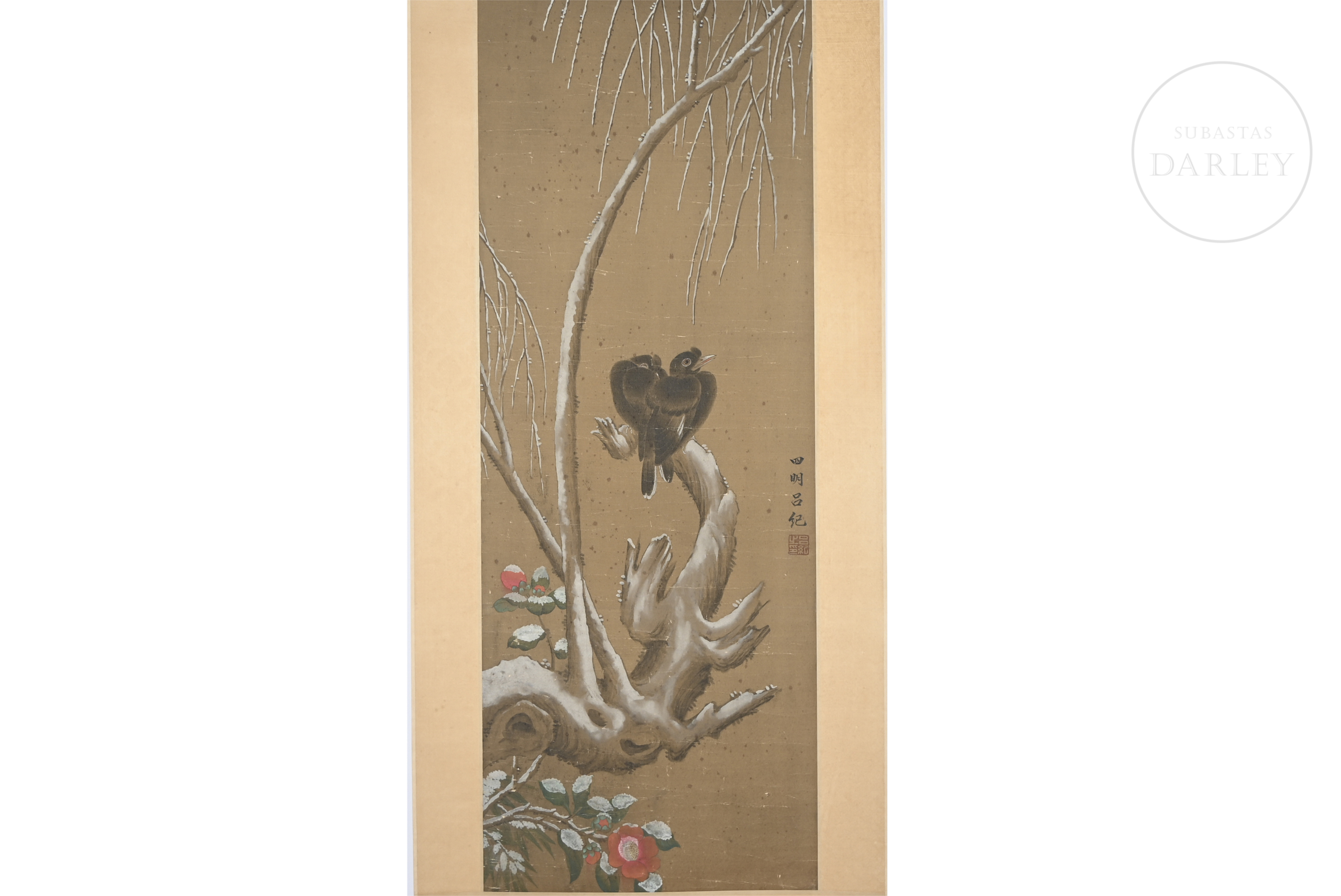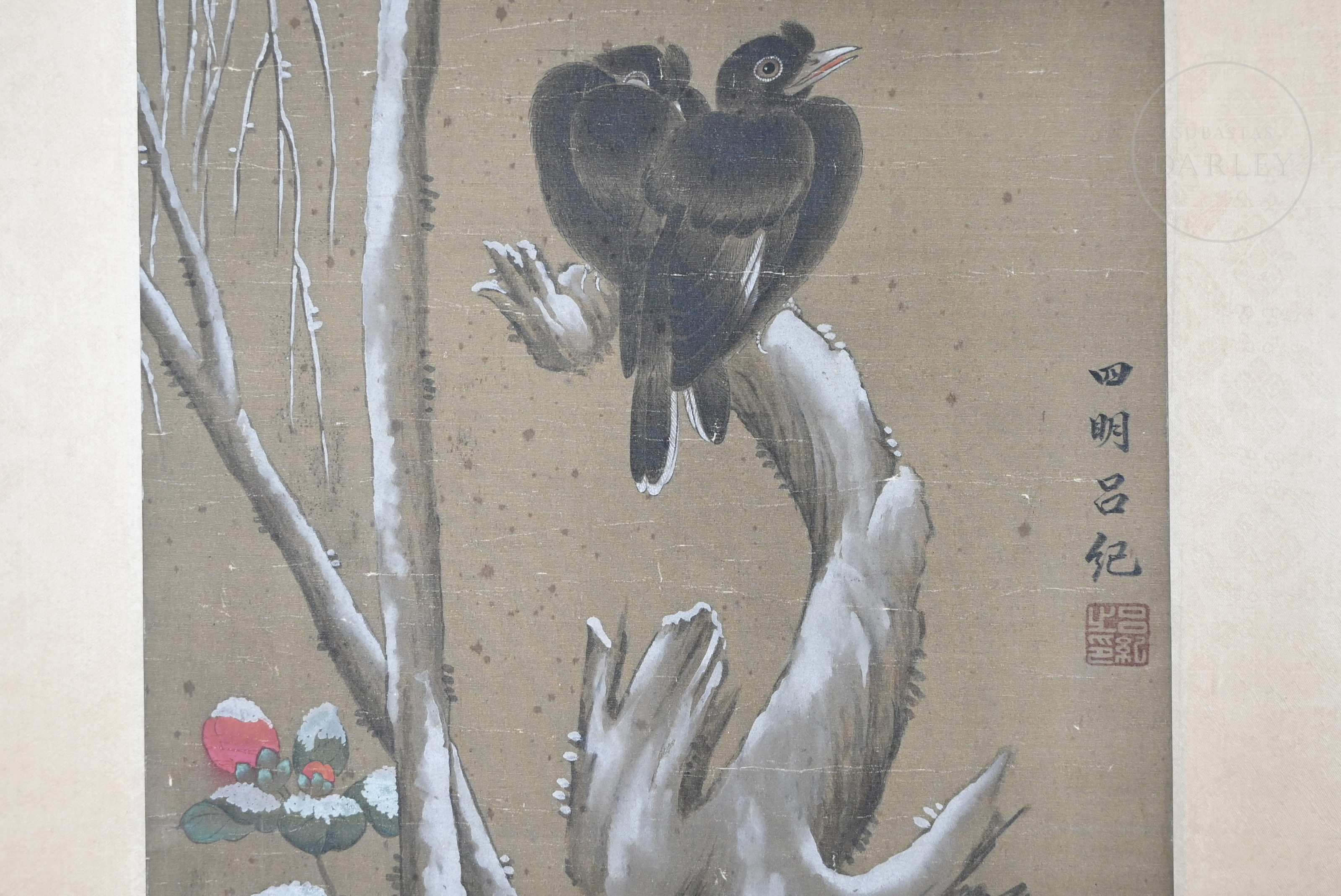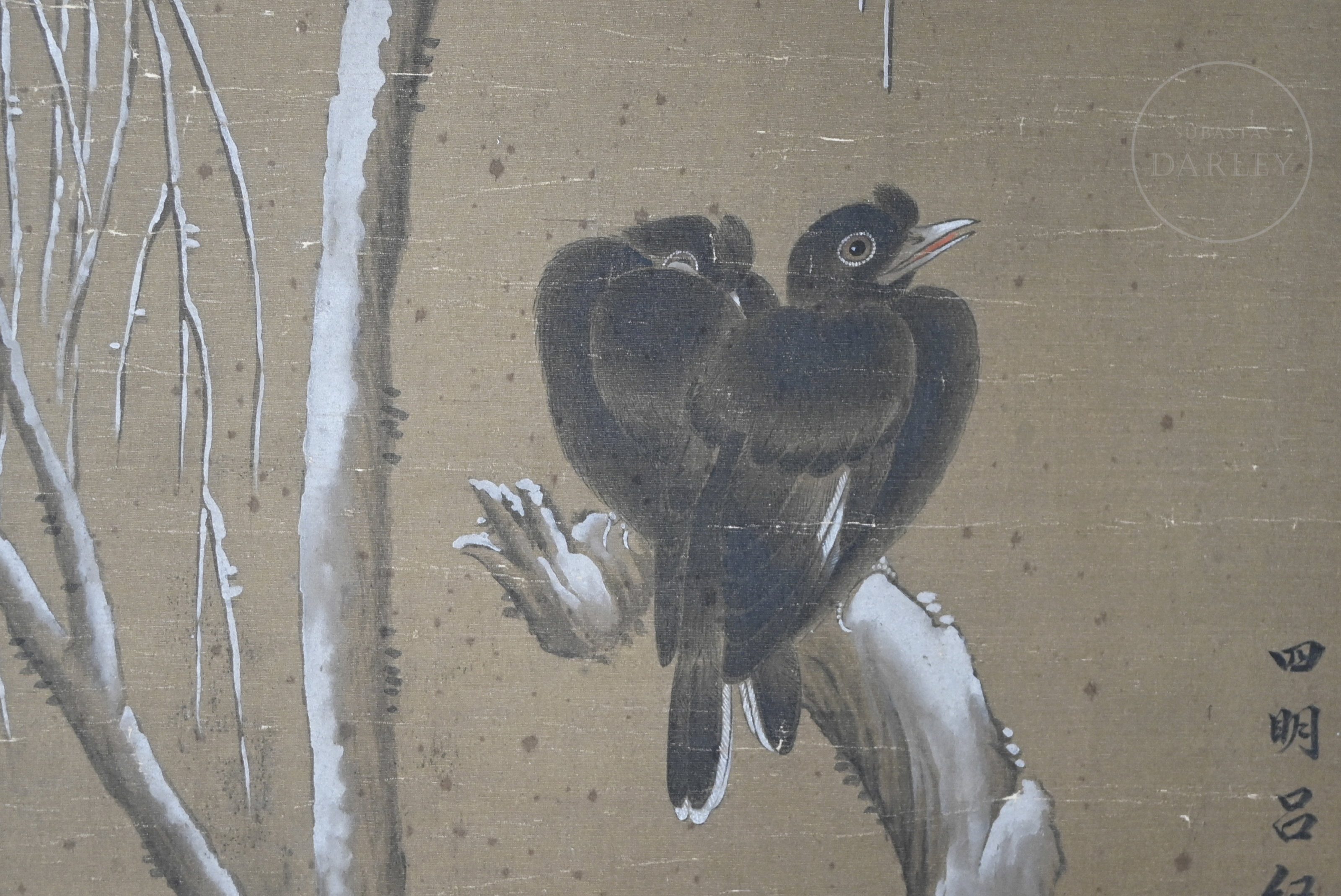 Chinese painting ‘Birds on snowy branches’, signed Lü Ji