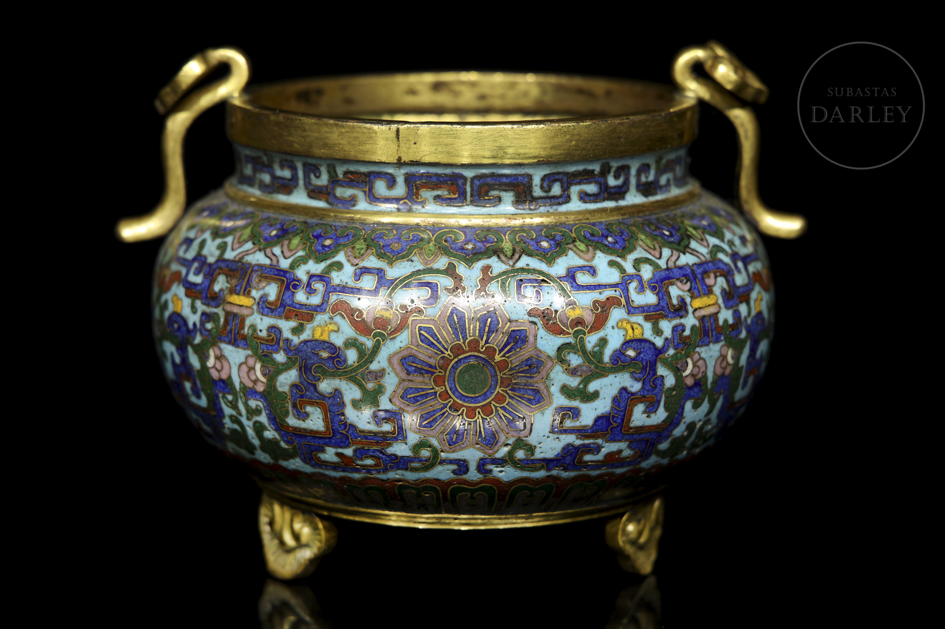 Cloisonné tripod censer ‘Ruyi and phoenix’, Qing dynasty