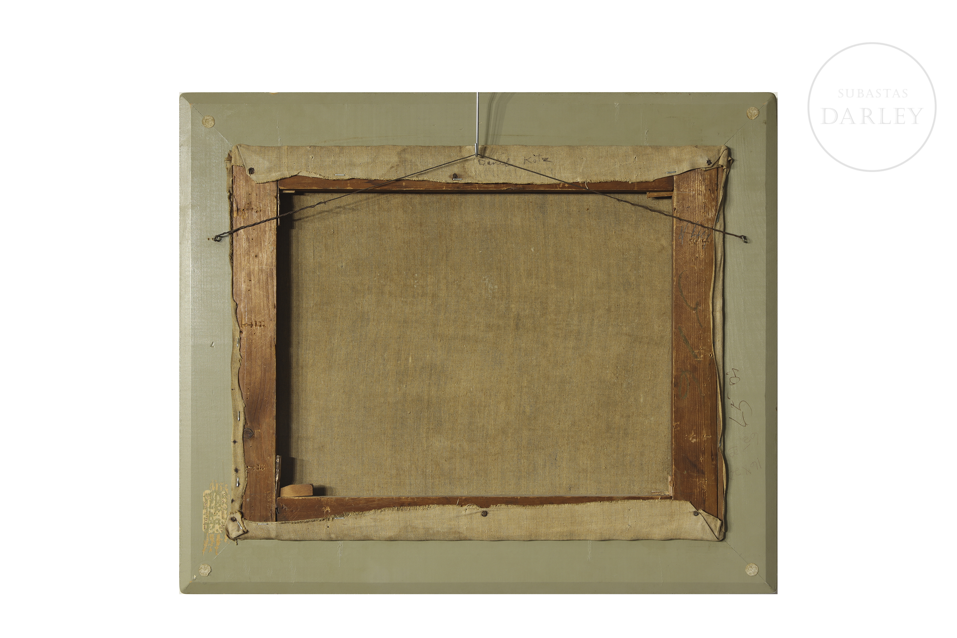 Oil on canvas. Signed on the reverse of the work and partially covered by the frame in the lower left corner.
