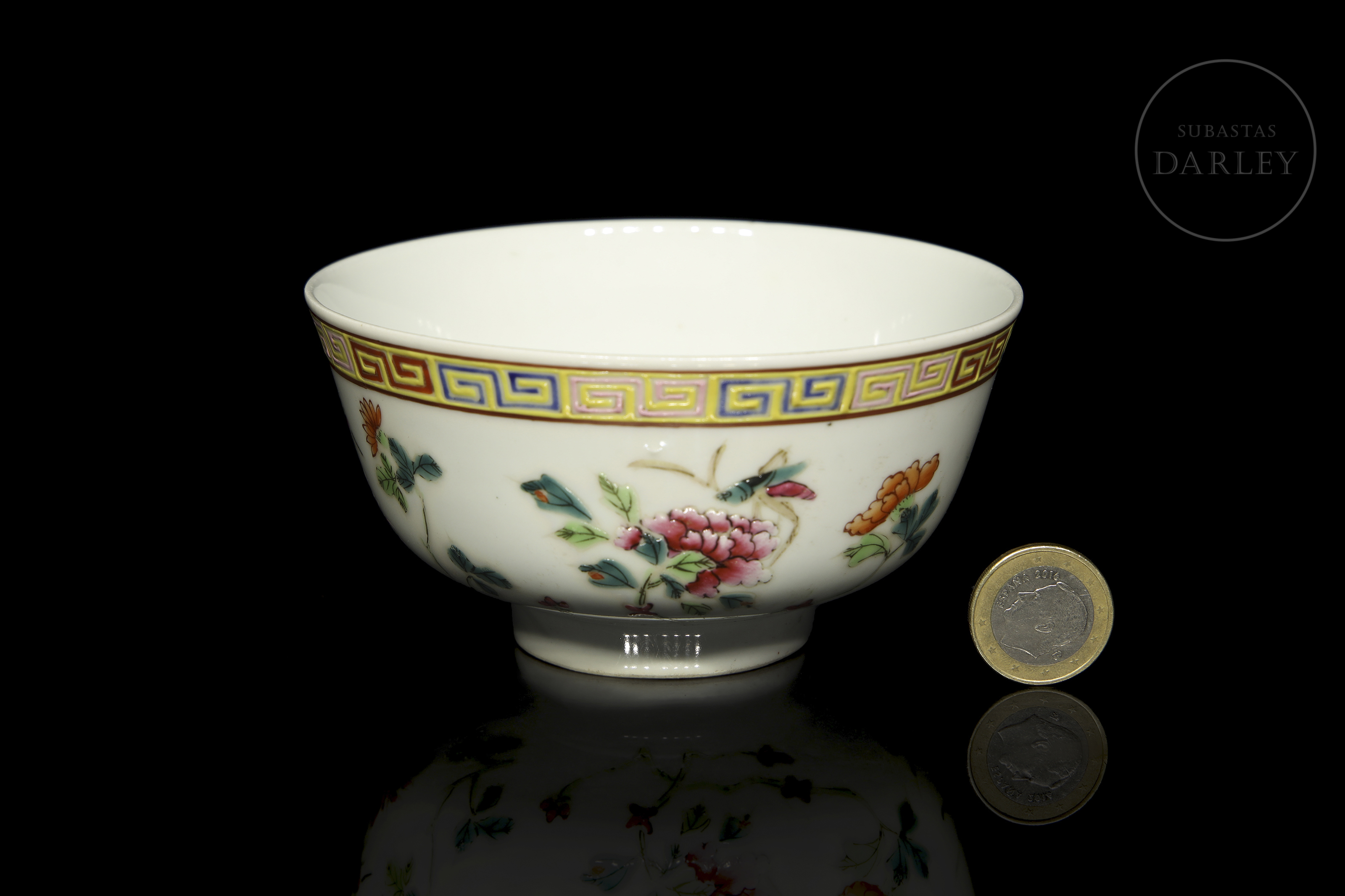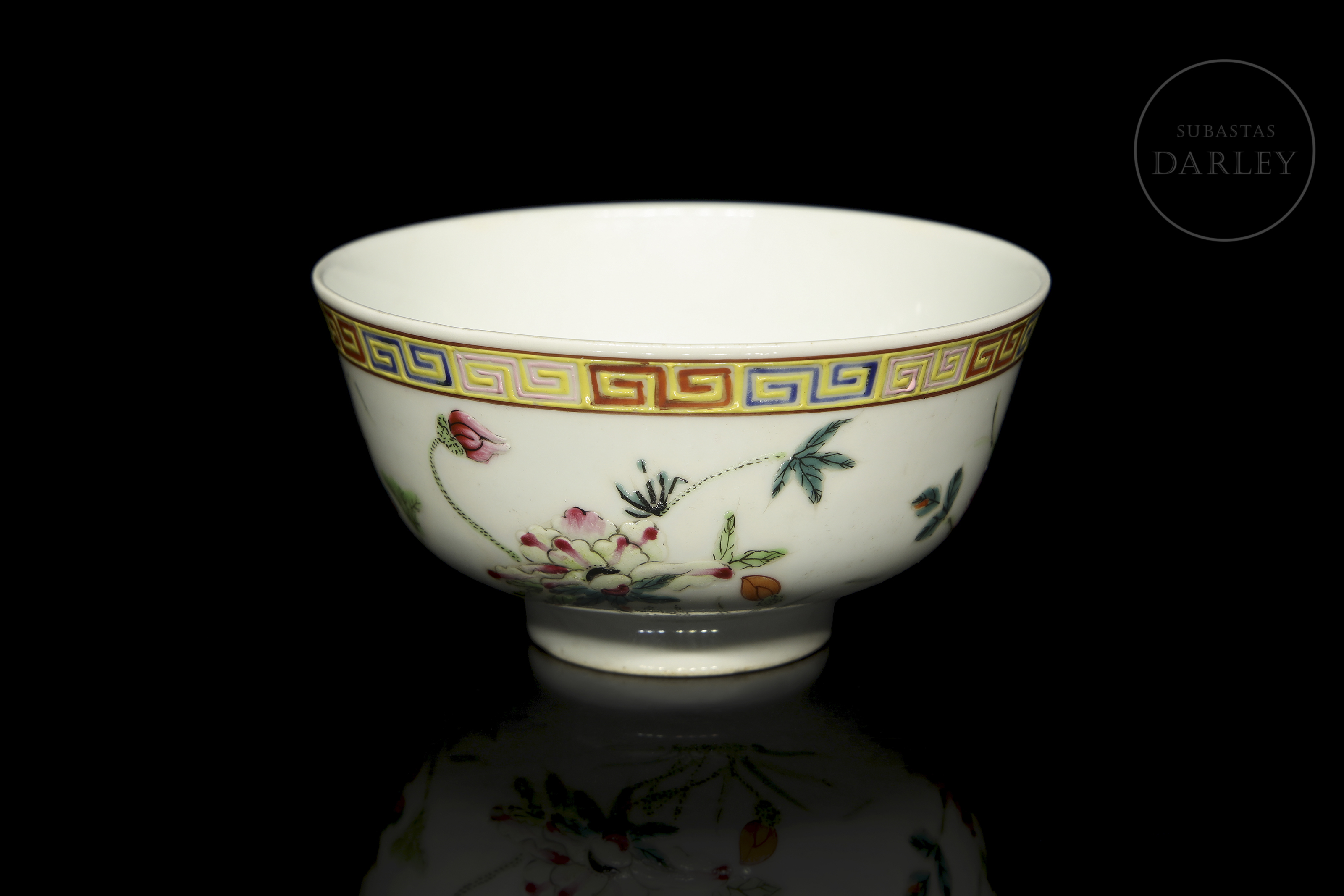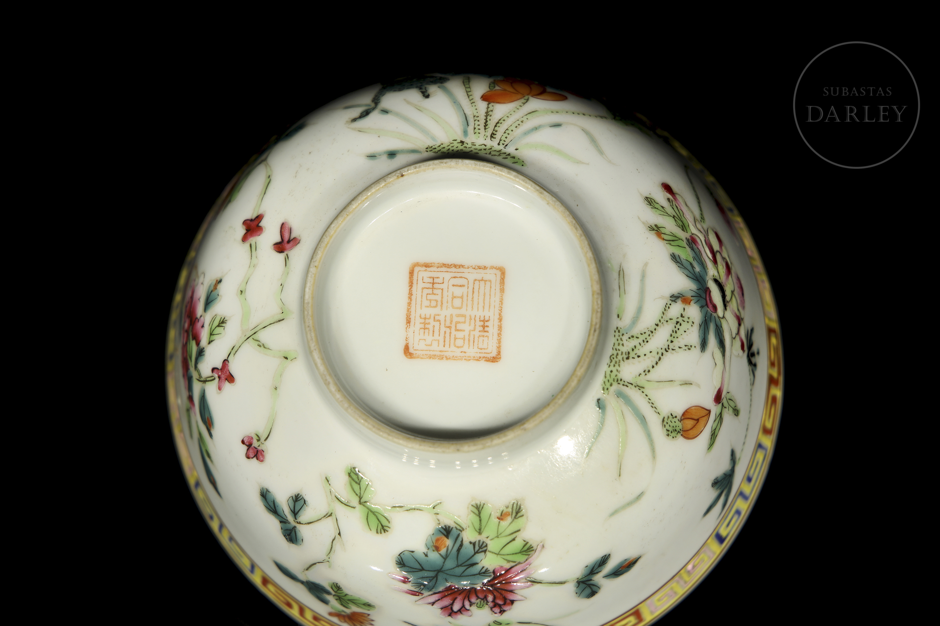 Enamelled porcelain ‘Garden’ bowl, with Qing seal