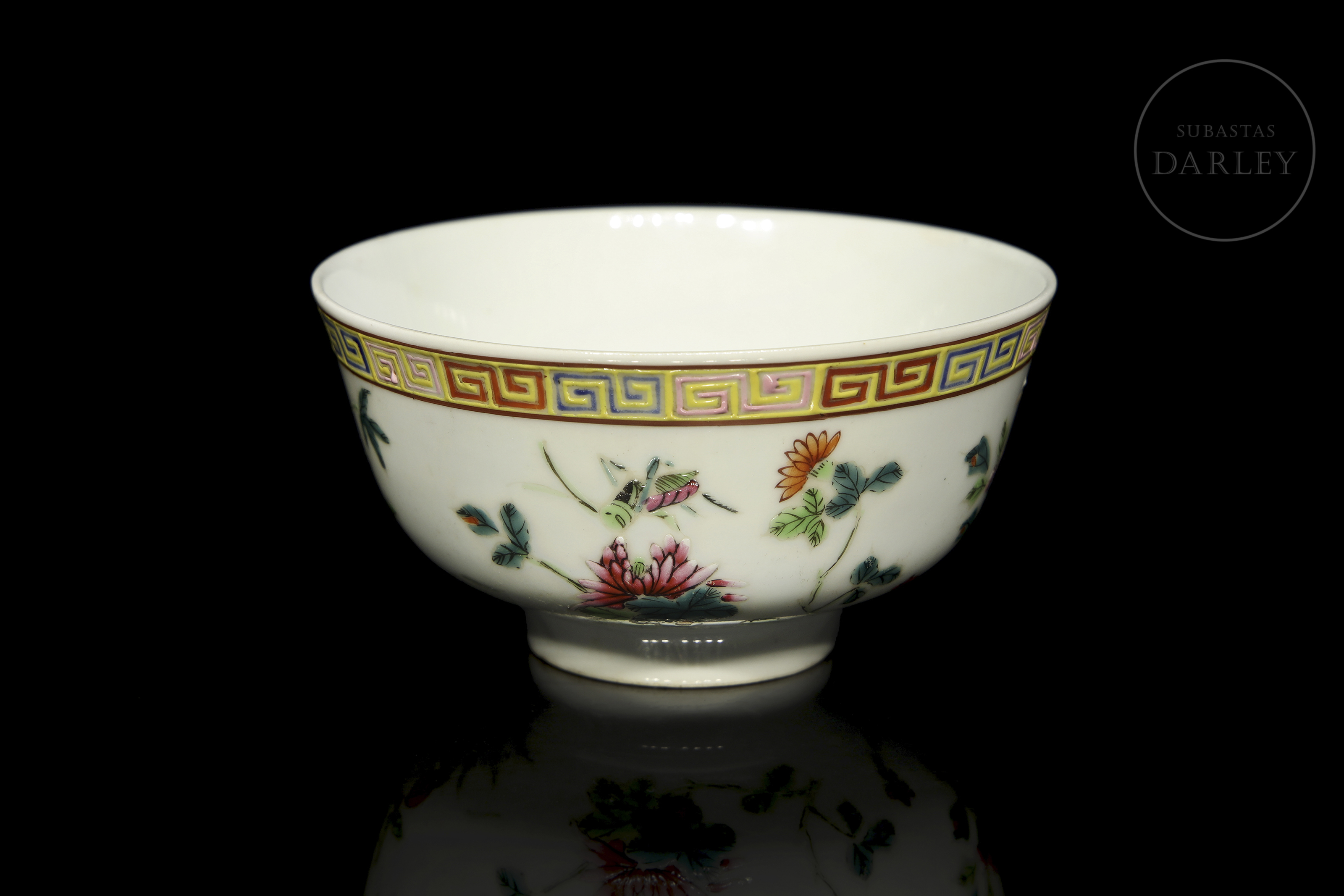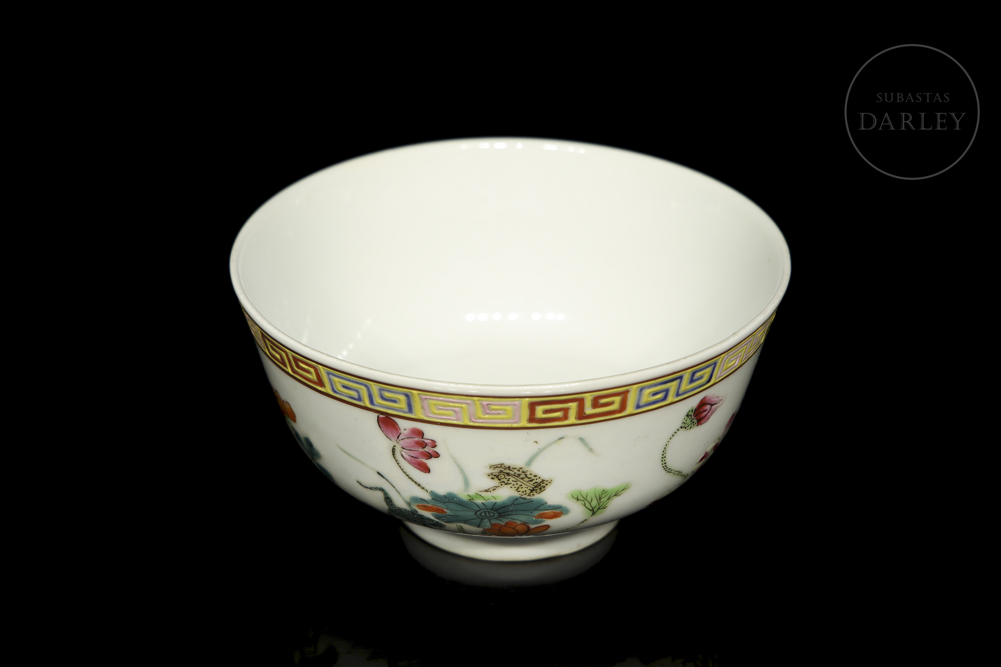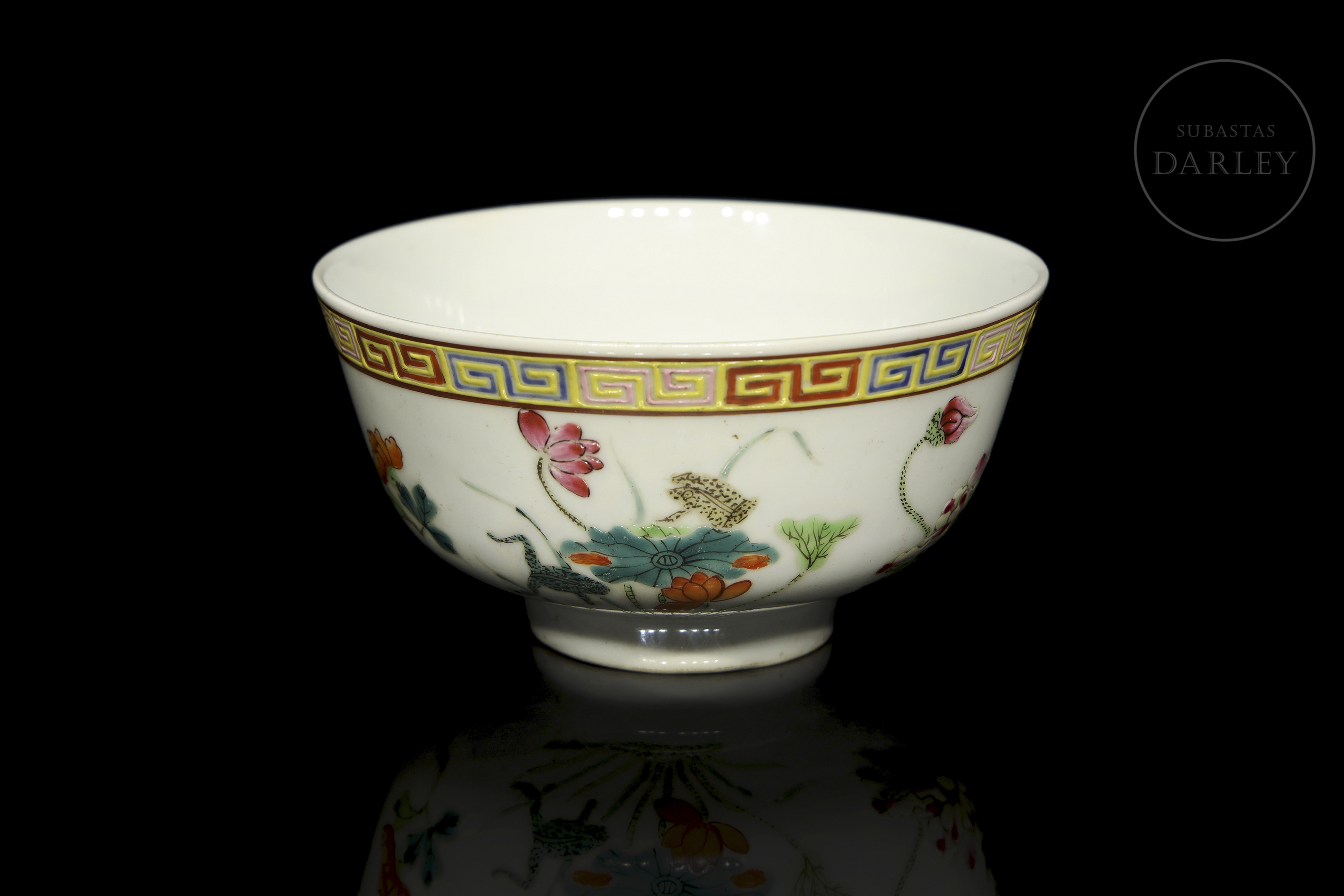 Enamelled porcelain ‘Garden’ bowl, with Qing seal