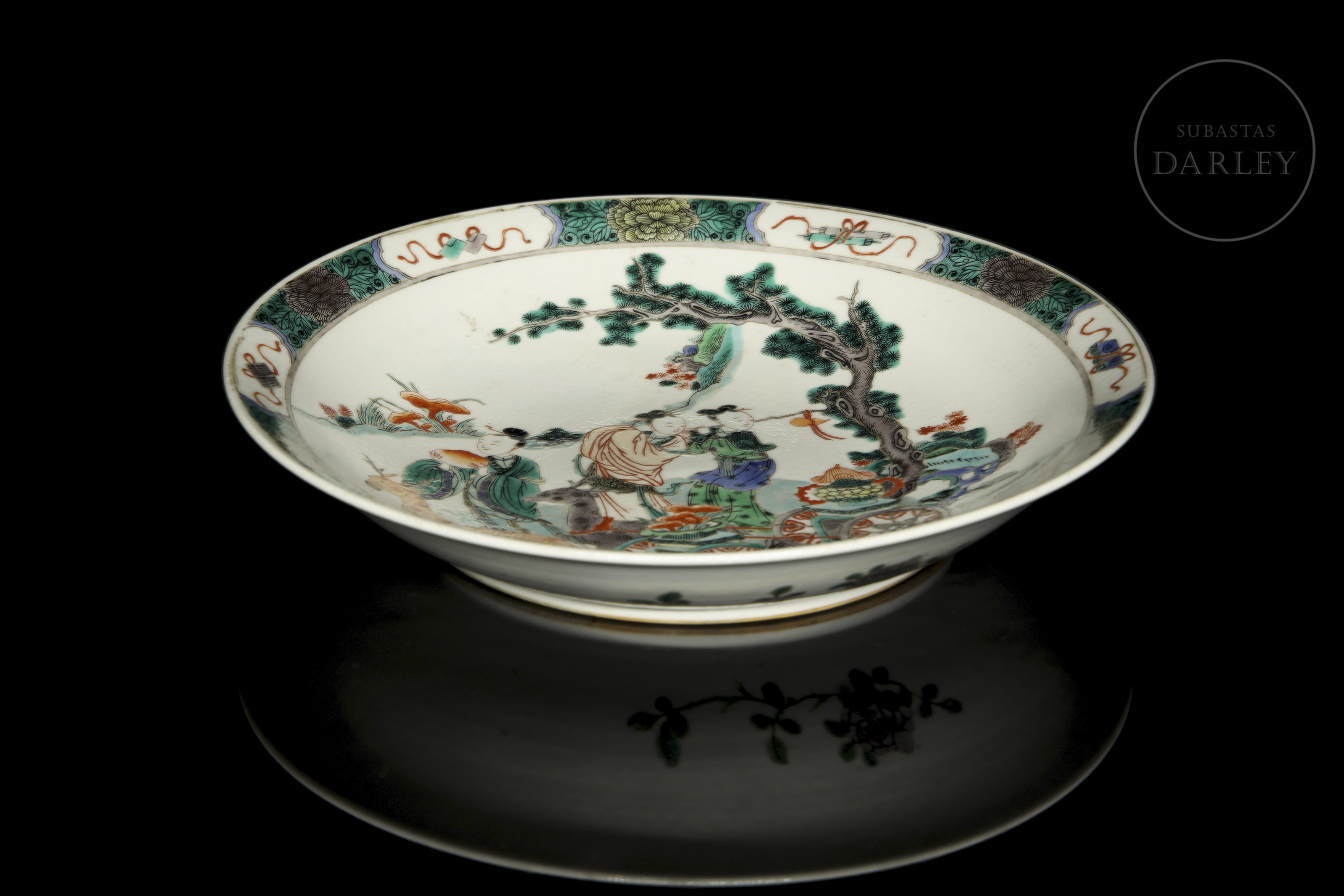 Home > Direct Sale > Asian Porcelain & Ceramics > Famille verte porcelain plate, ‘Court scene’, with Kangxi mark