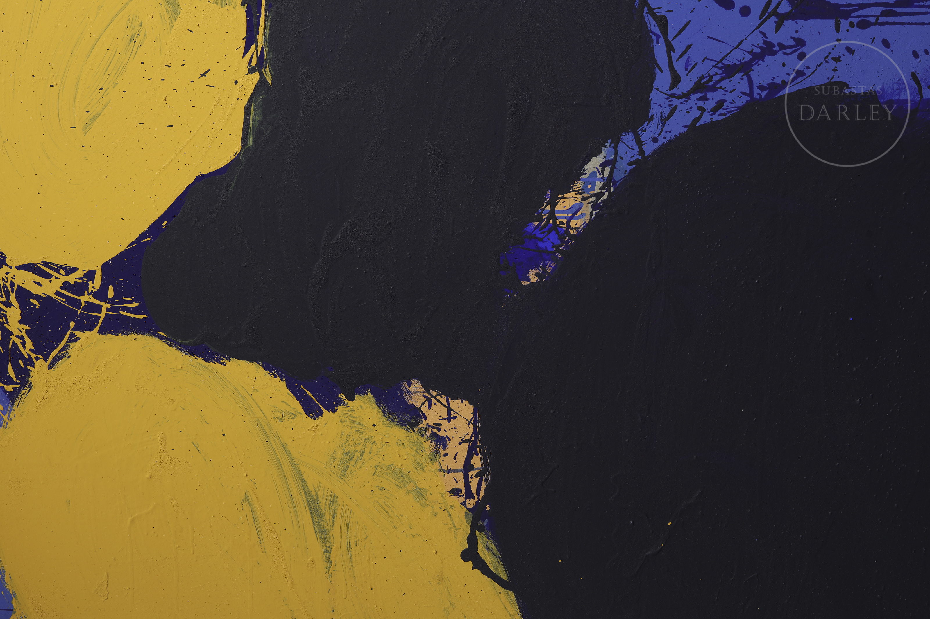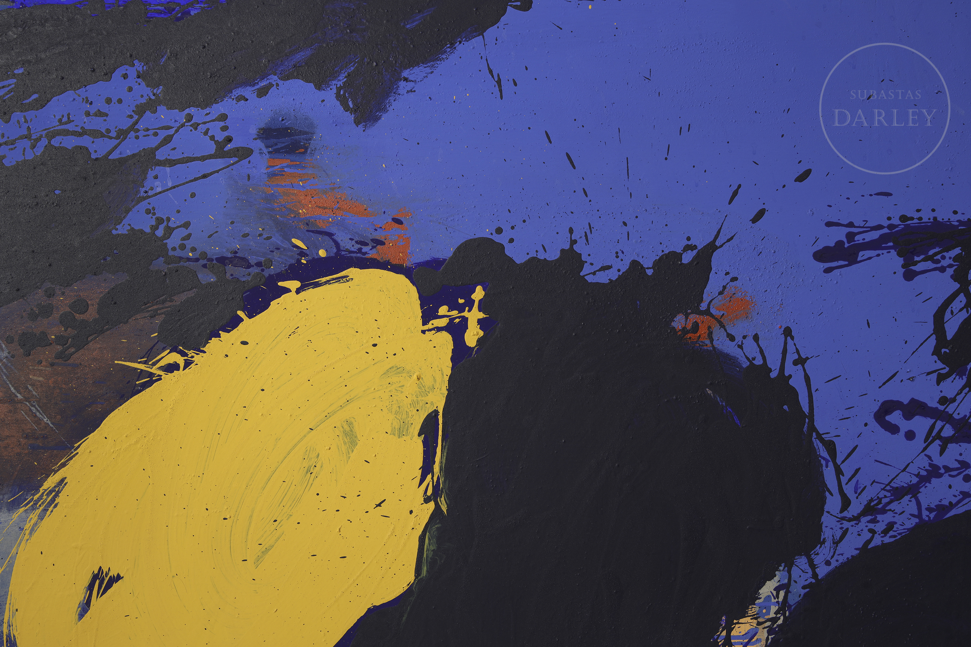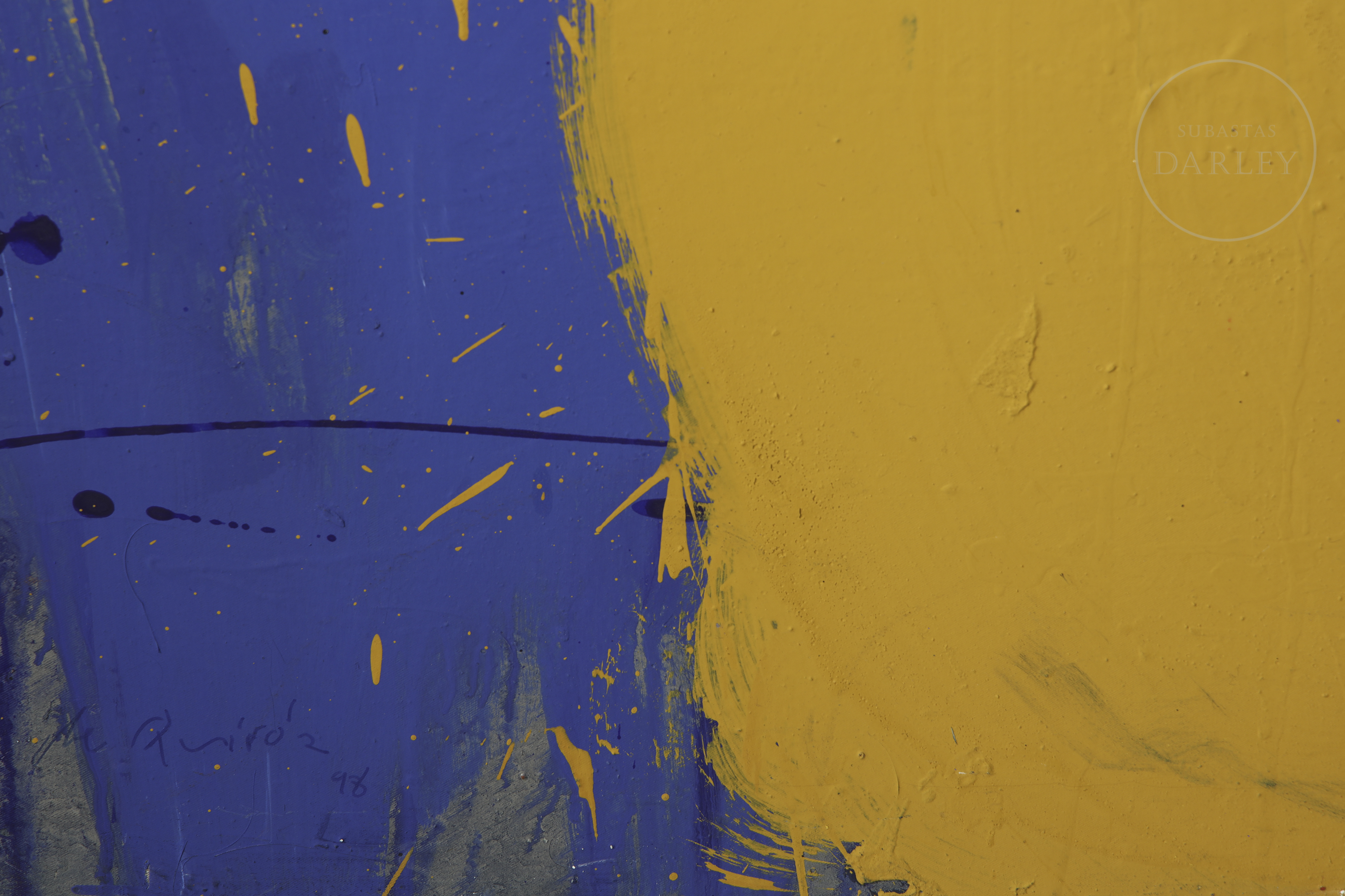 Acrylic on canvas. Signed in the lower left corner “F. Quirós 98.”