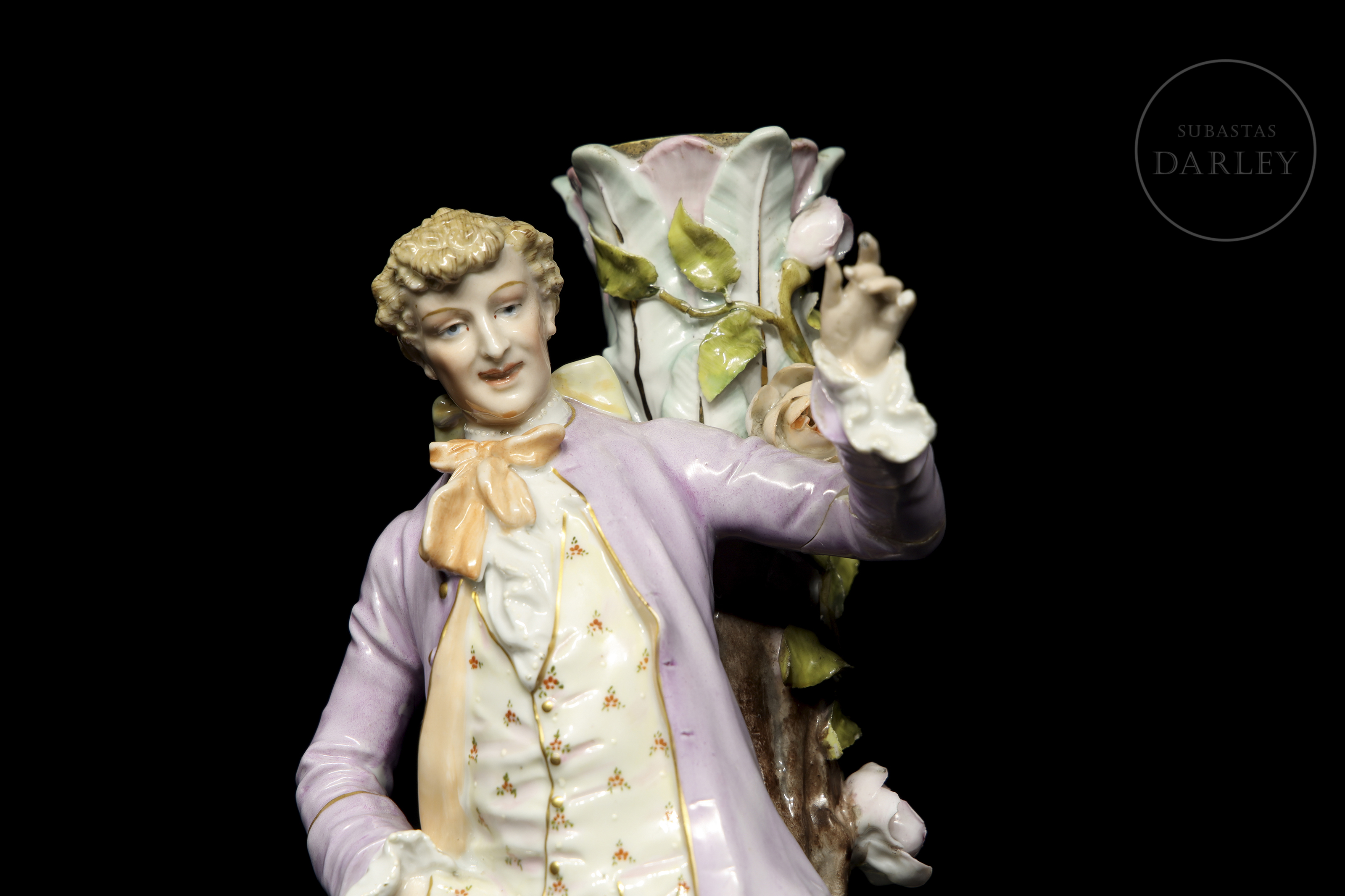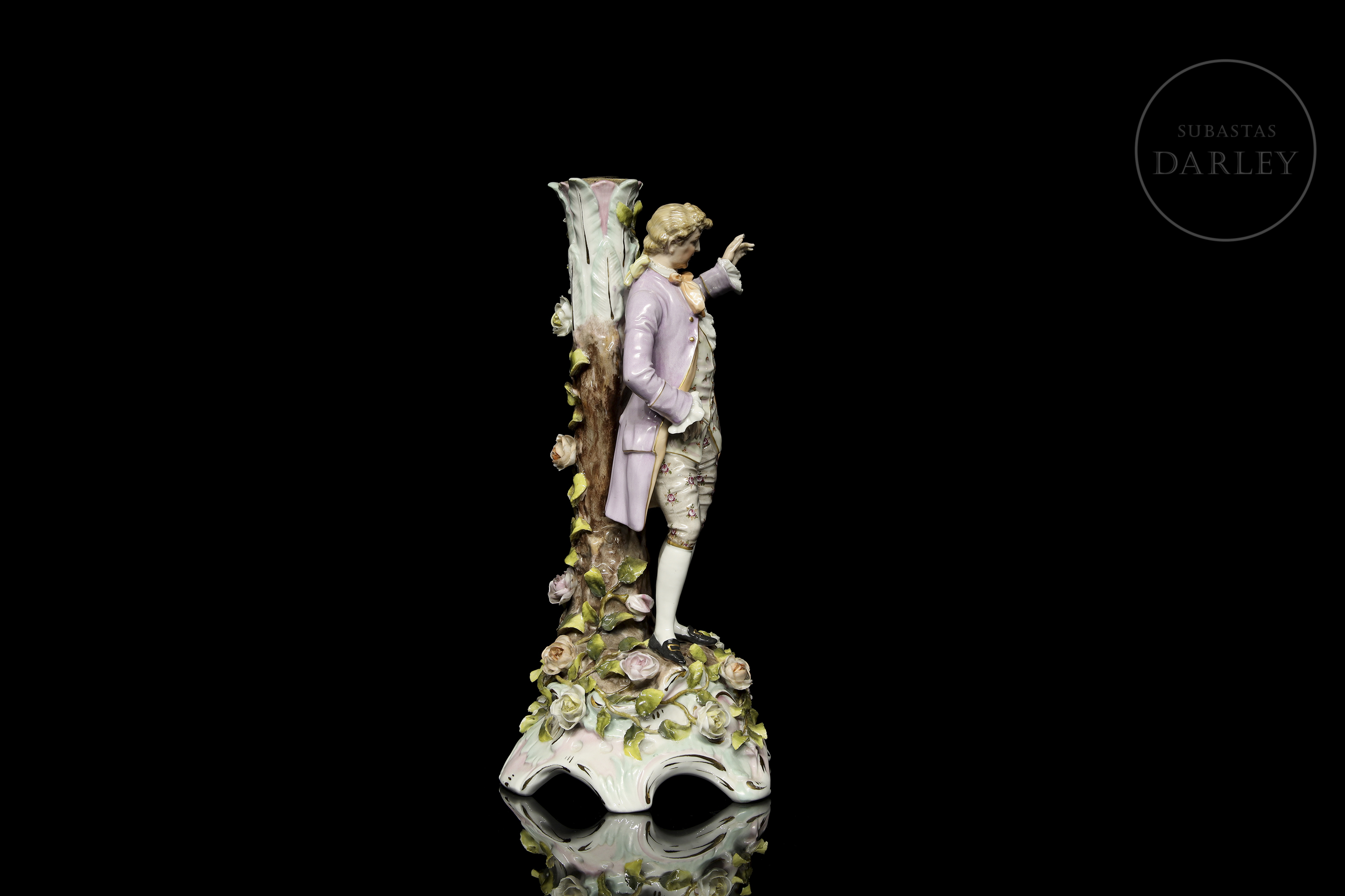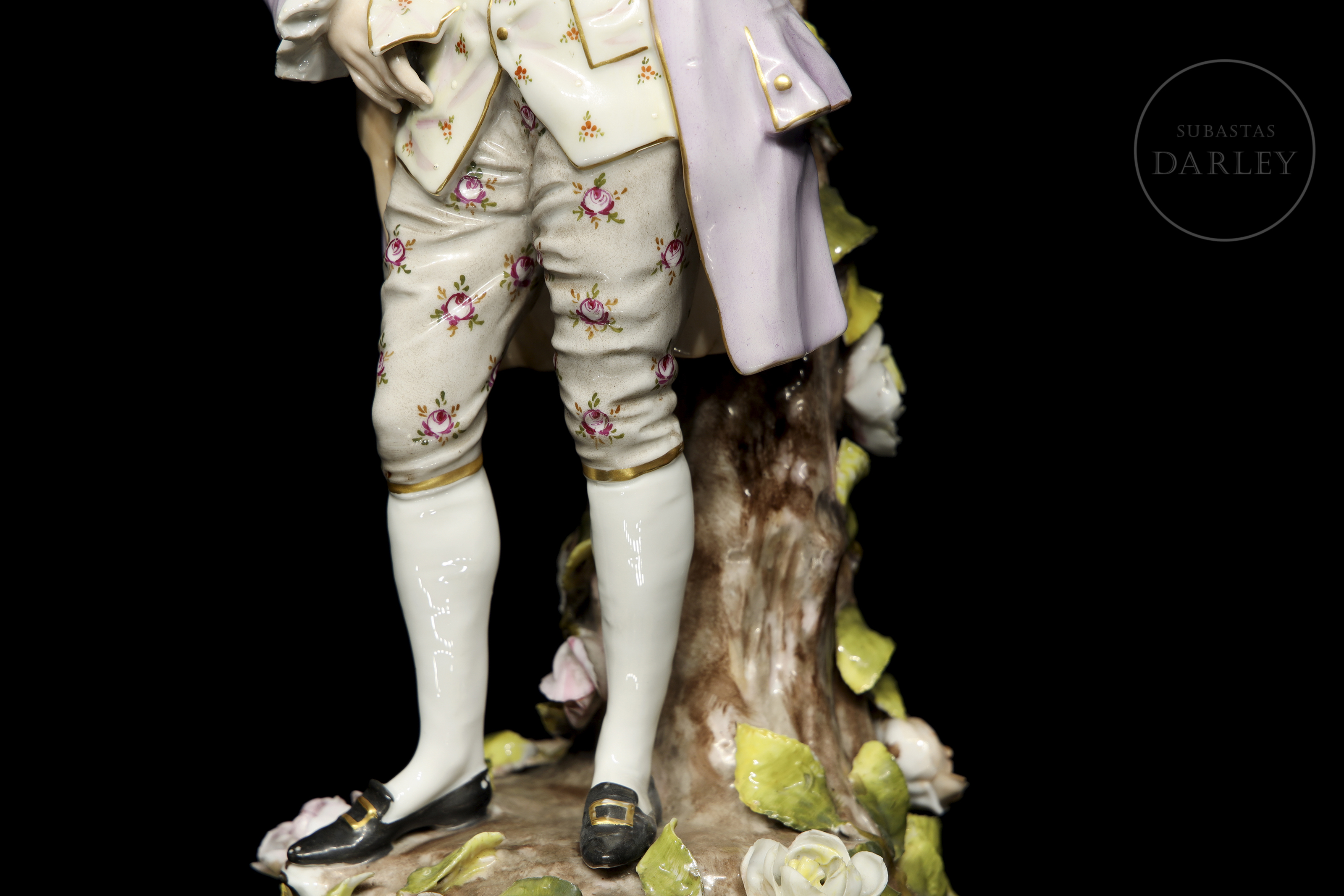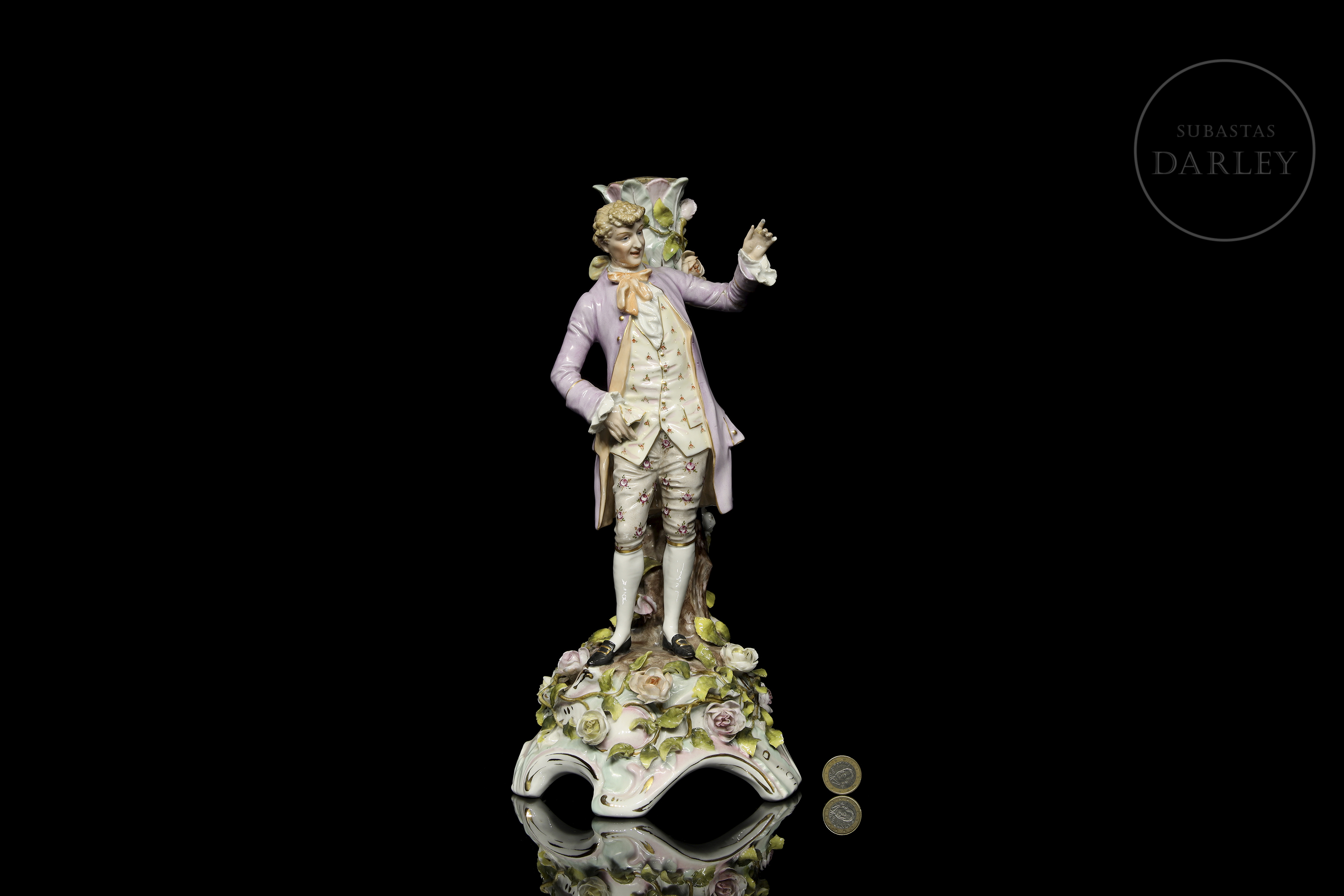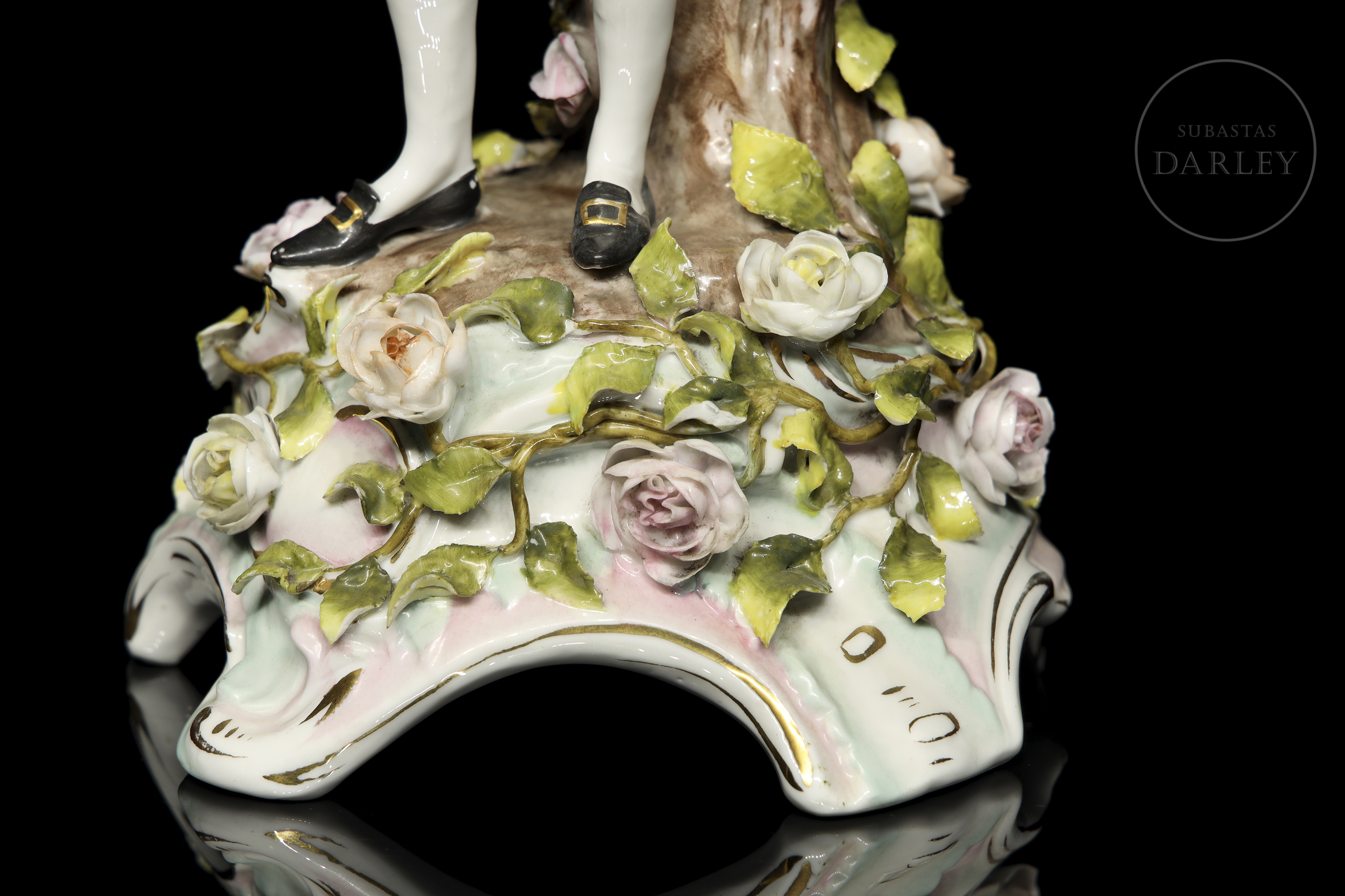 Porcelain enamelled figure with glossy effect. With ‘Coburg’ mark on the base. Slightly damaged.