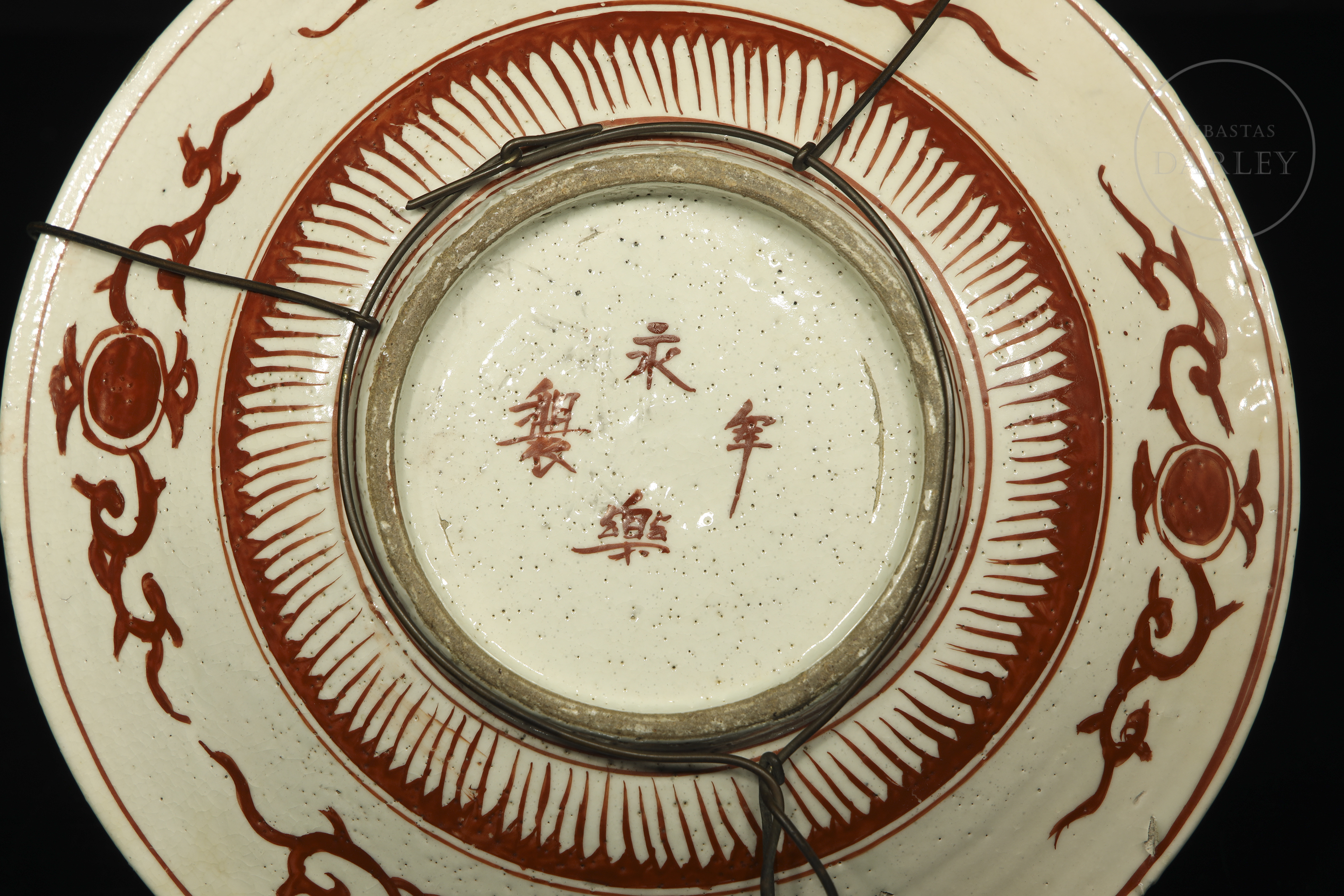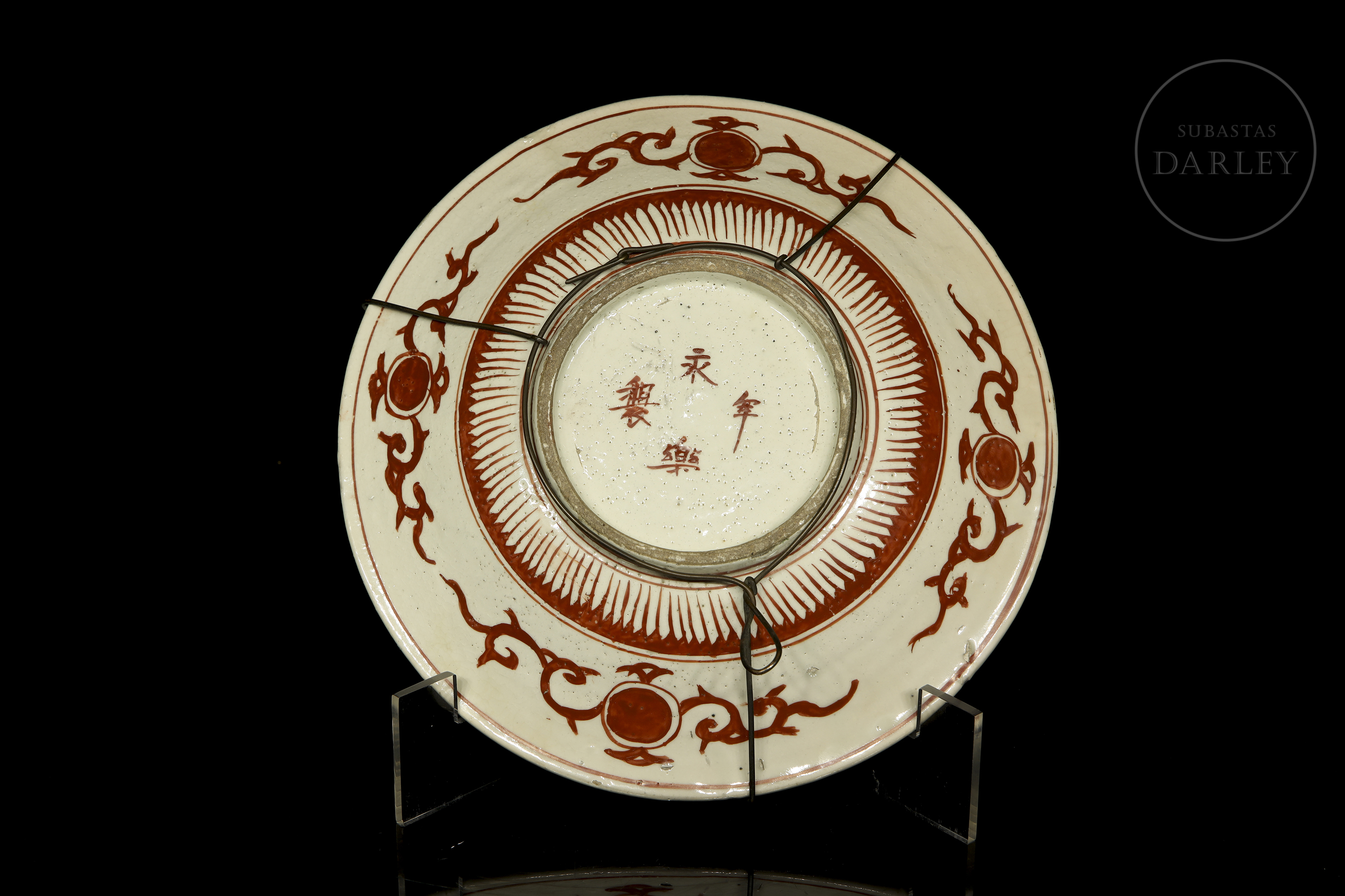 Home > Direct Sale > Completed auctions > Iron-red enamelled porcelain plate ‘Garden Scene’, with Yongle mark