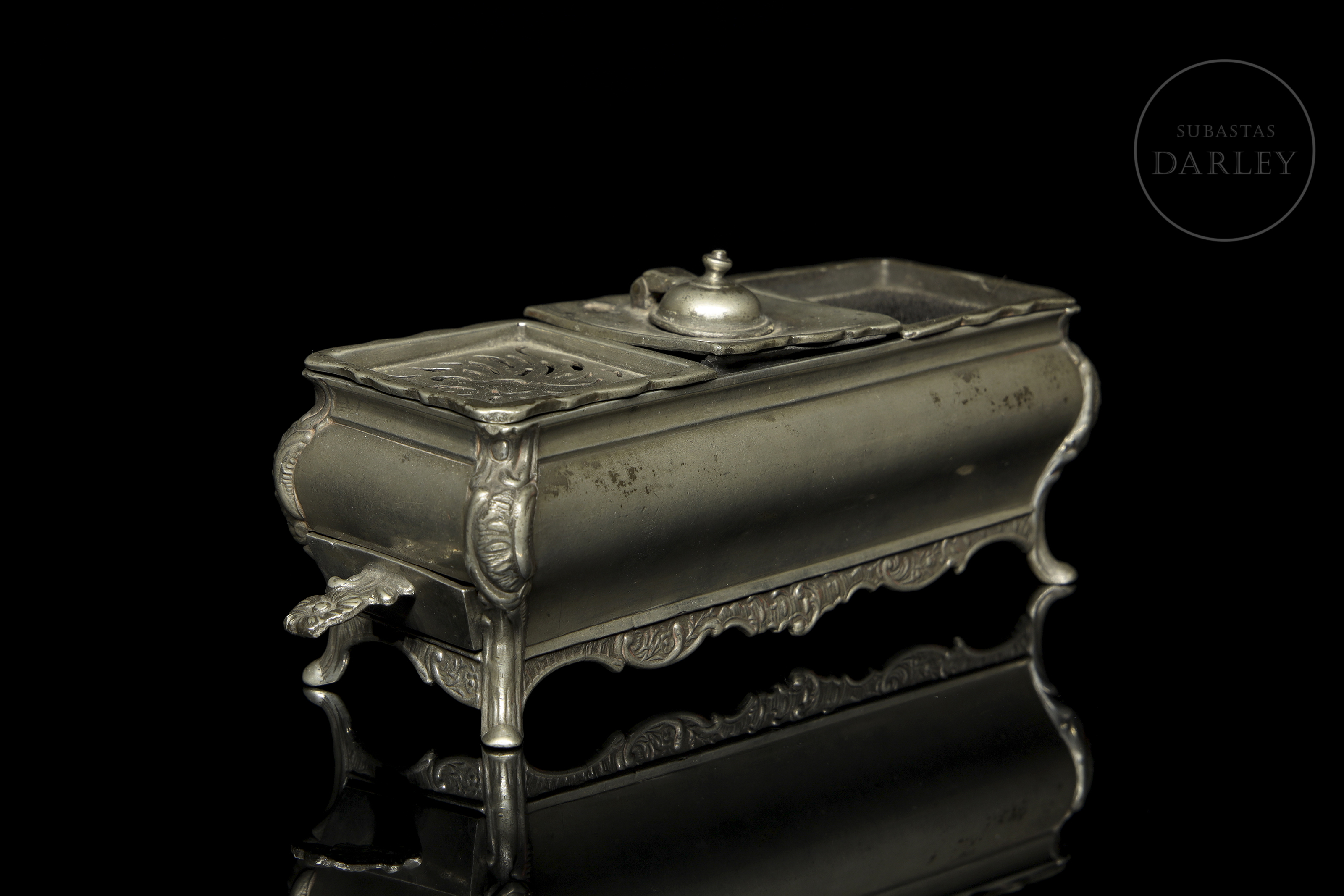 J. Hoofmans, Louis XIV style pewter writing desk, 19th century