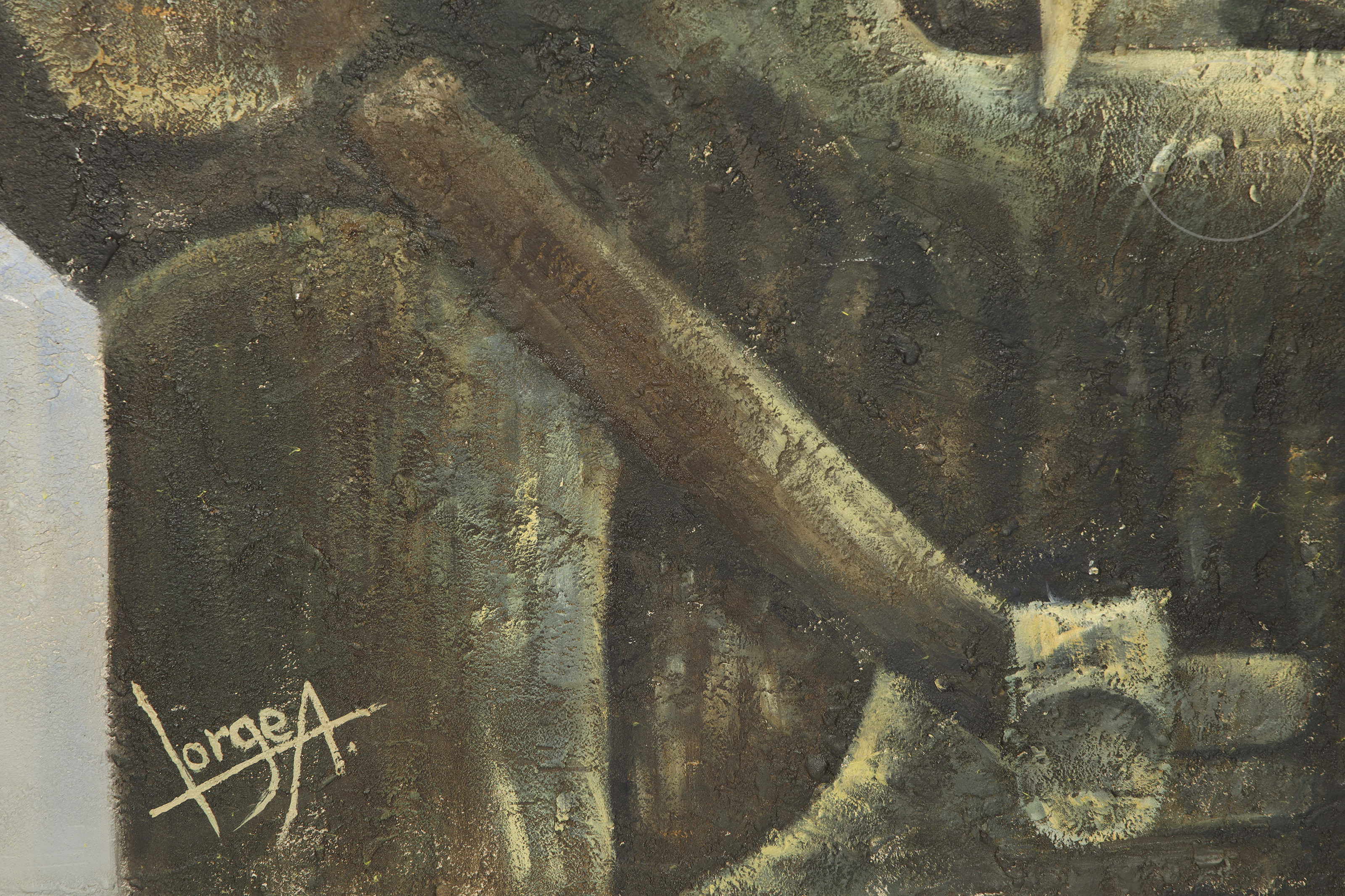 Mixed media on chipboard. Signed ‘Jorge A’ in the lower left corner.