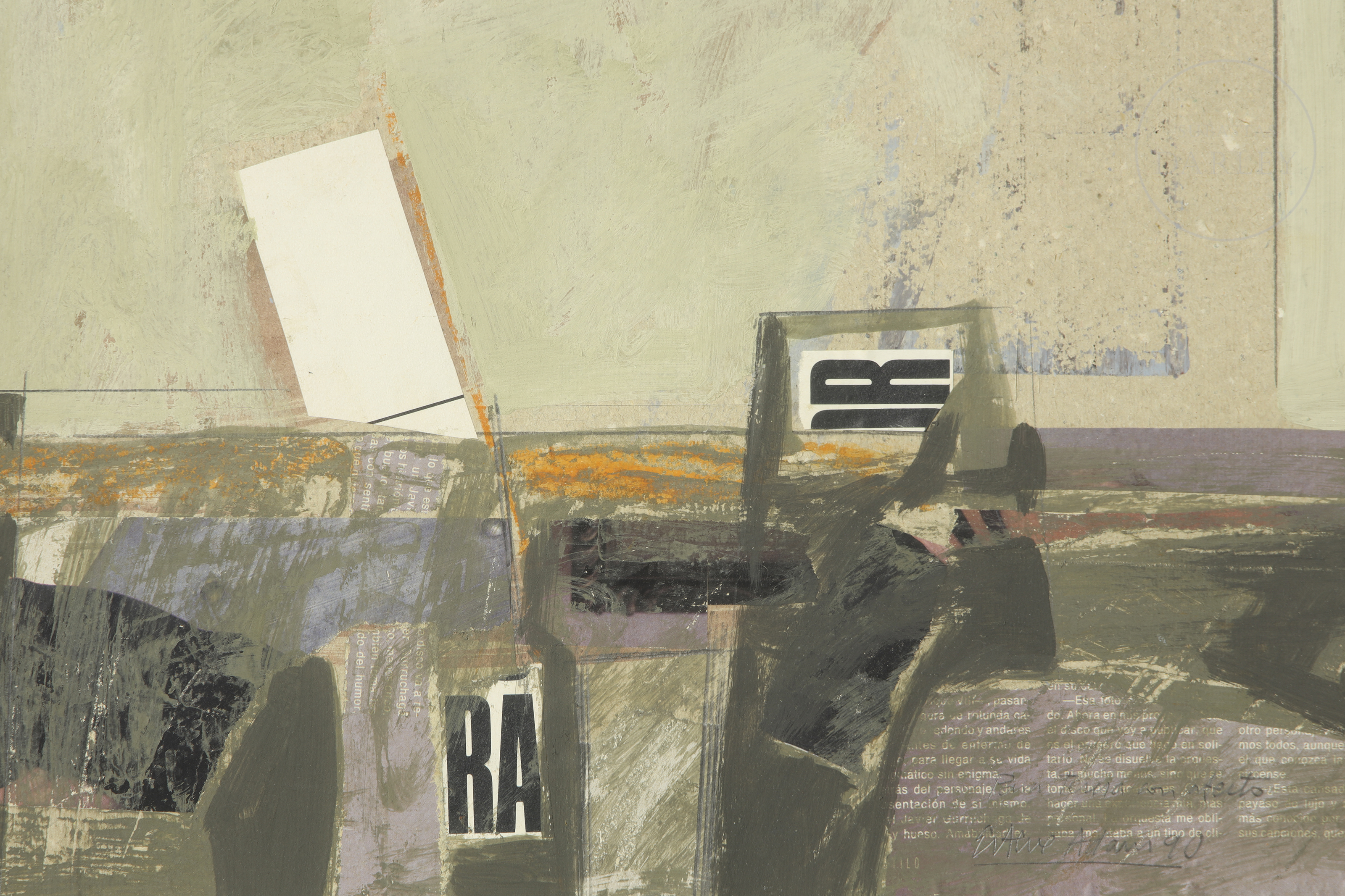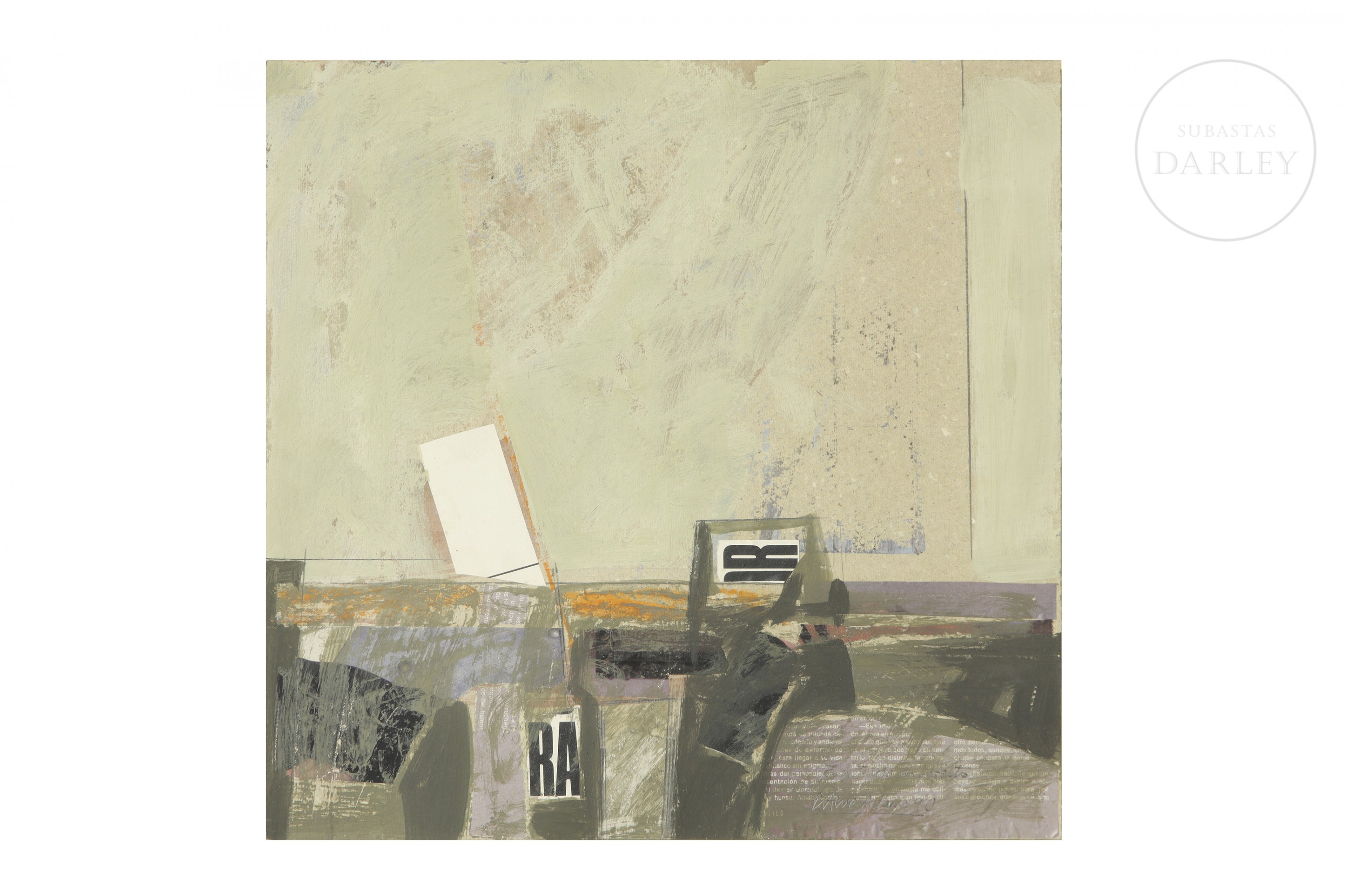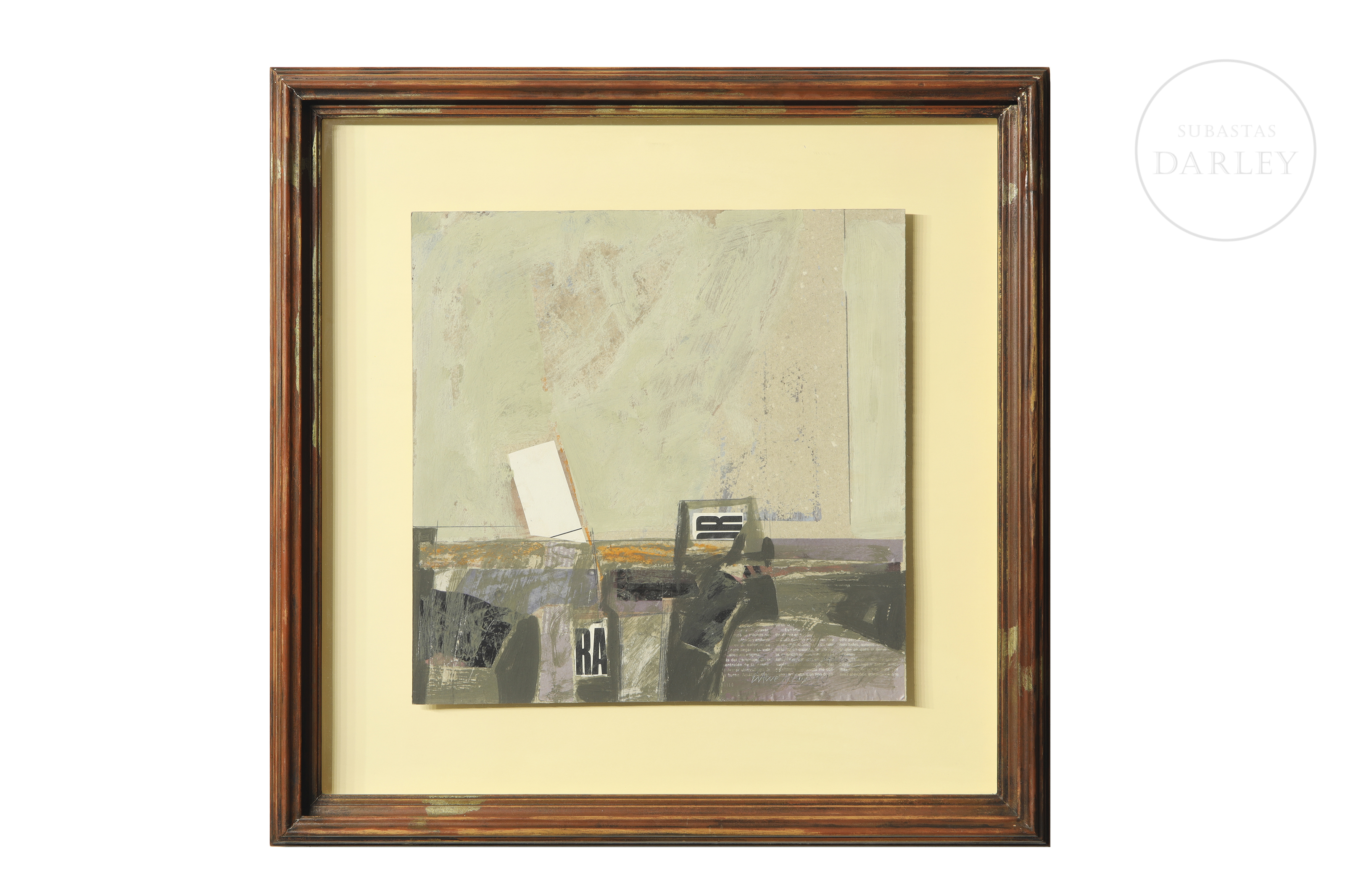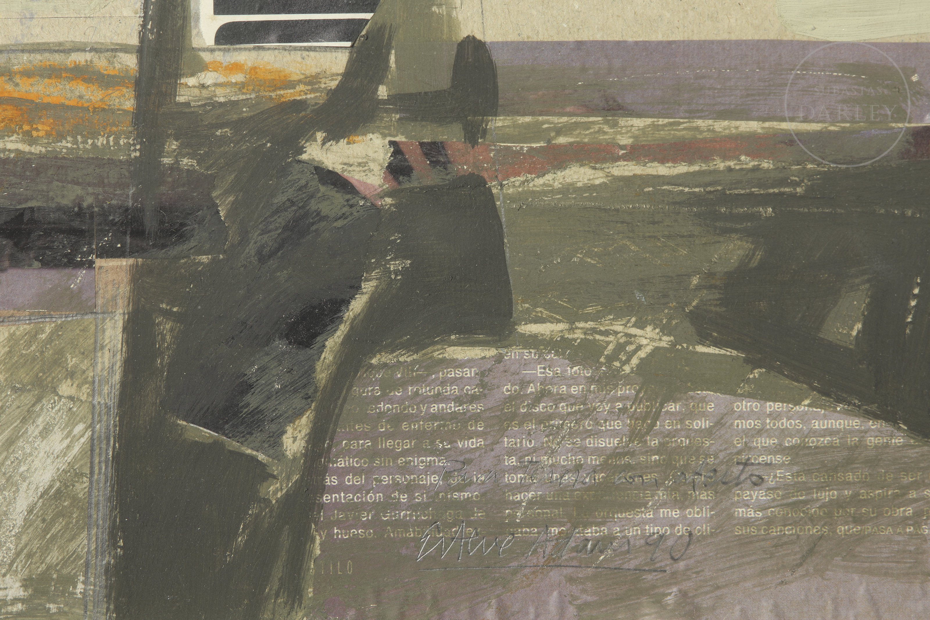 Mixed media on plywood. Signed and dated ‘Esteve Adam, 90’ in the lower right corner.