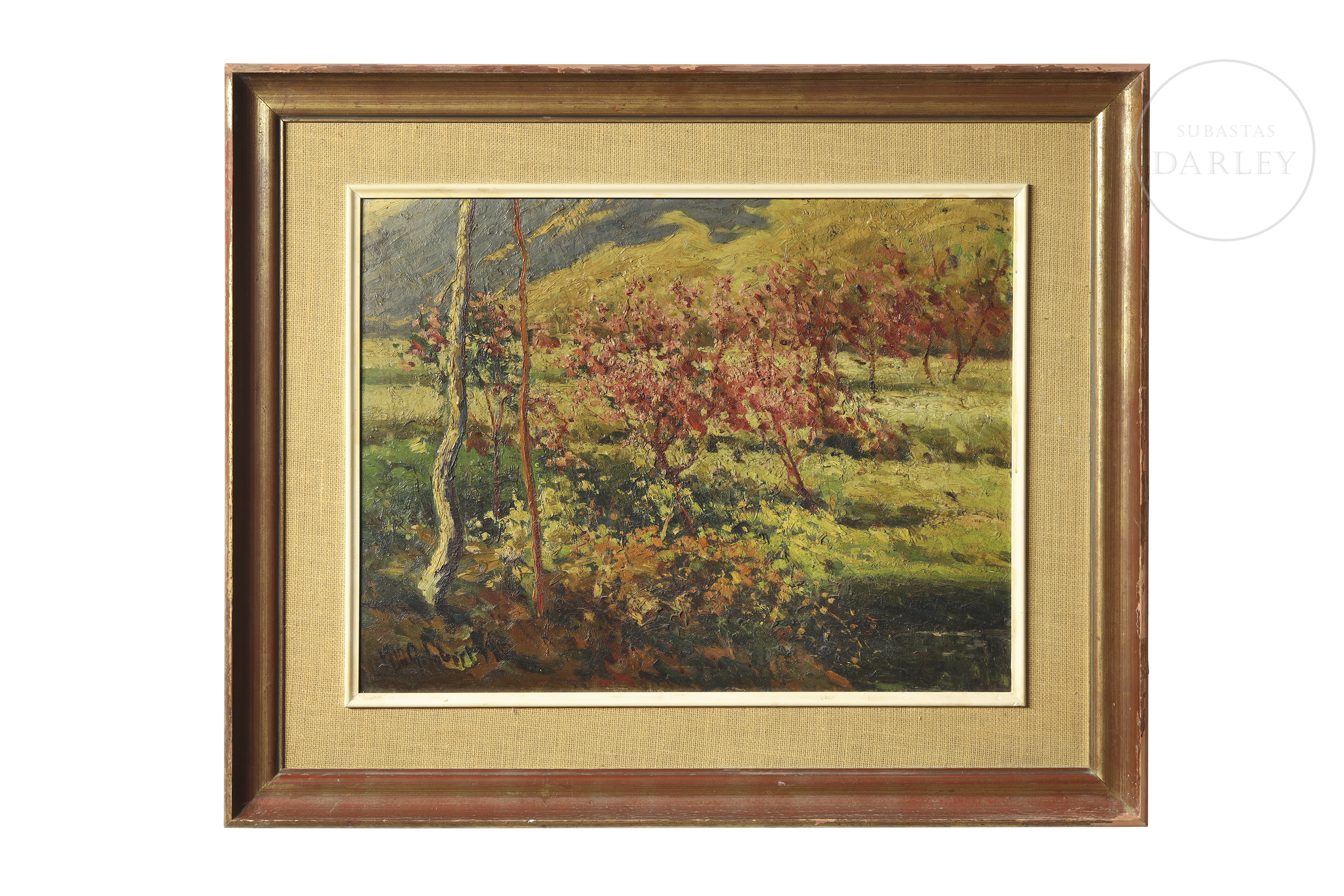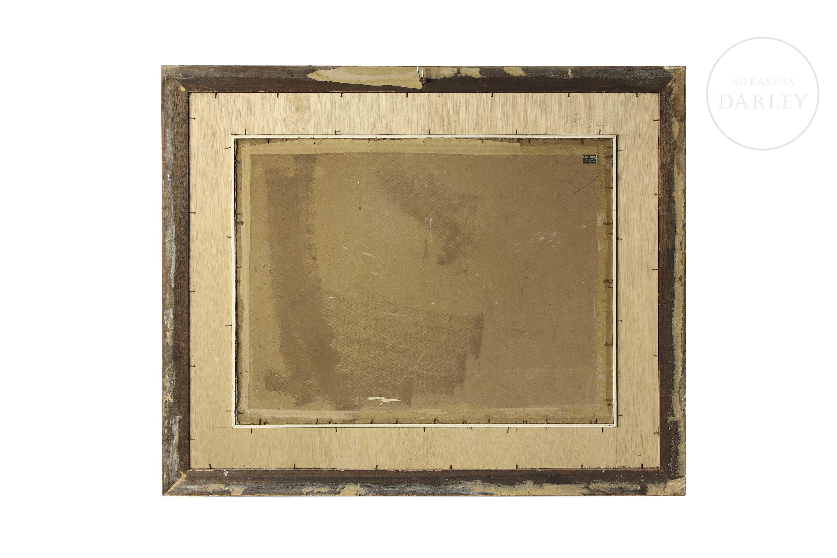 Oil on panel. Signed in the lower left corner “Josep Gelabert.”
