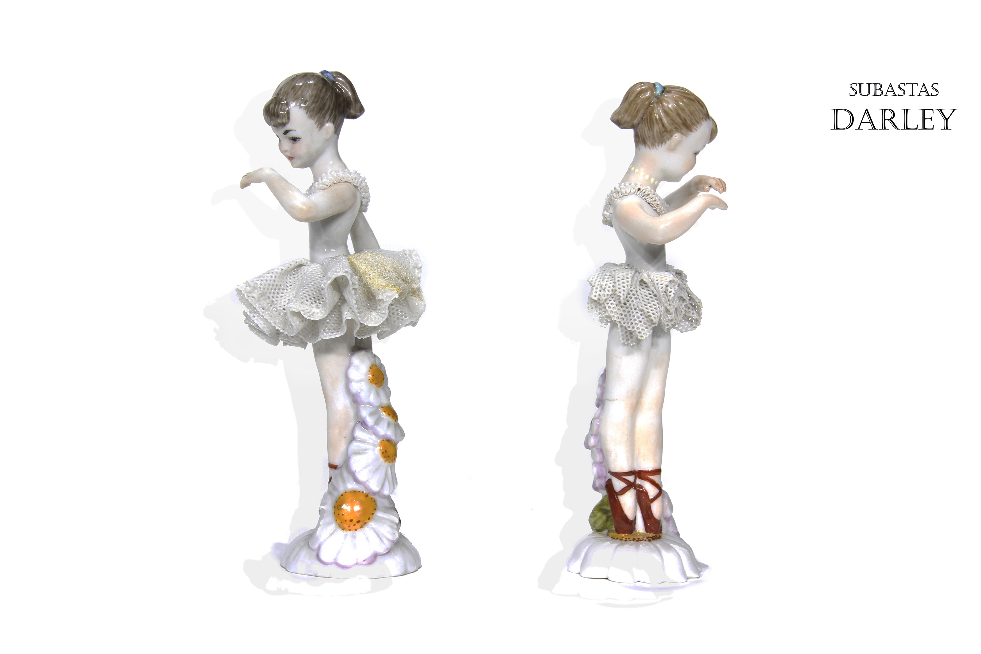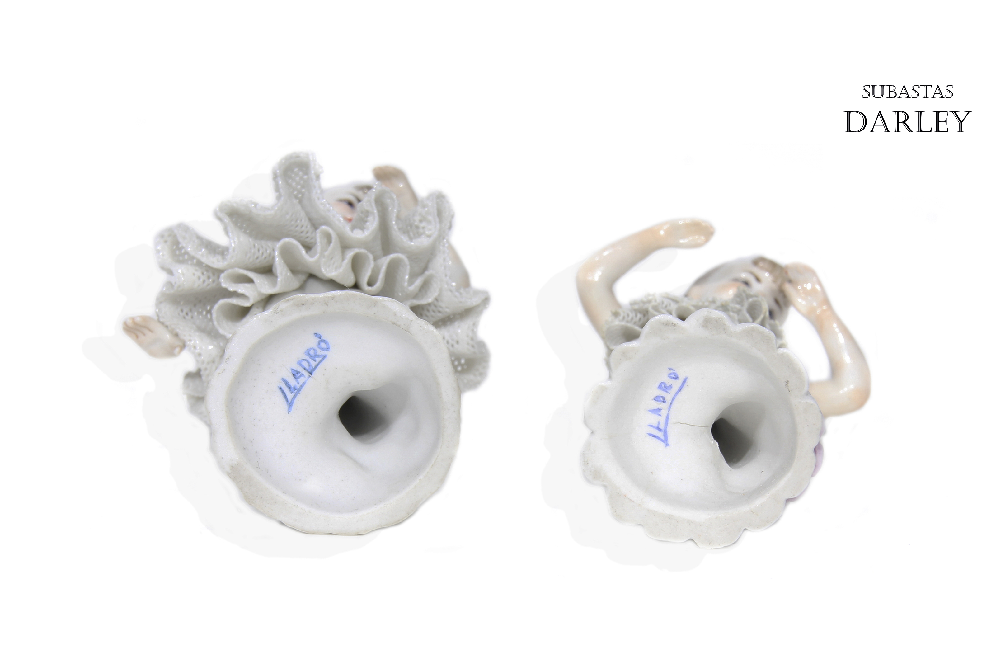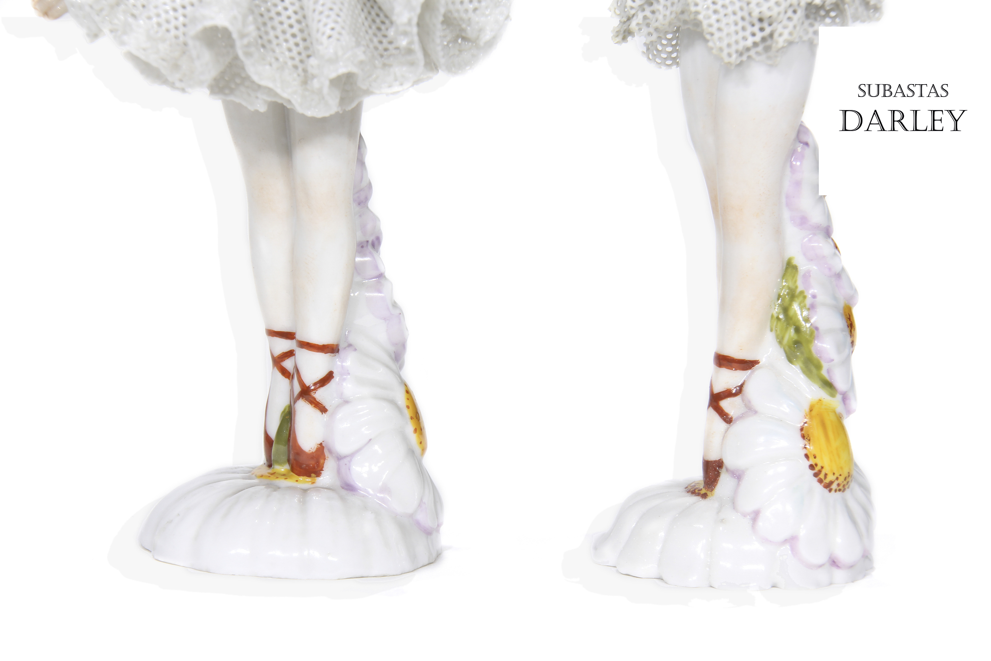 Porcelain gloss. Sealed at the base. It has flaws in the skirts.