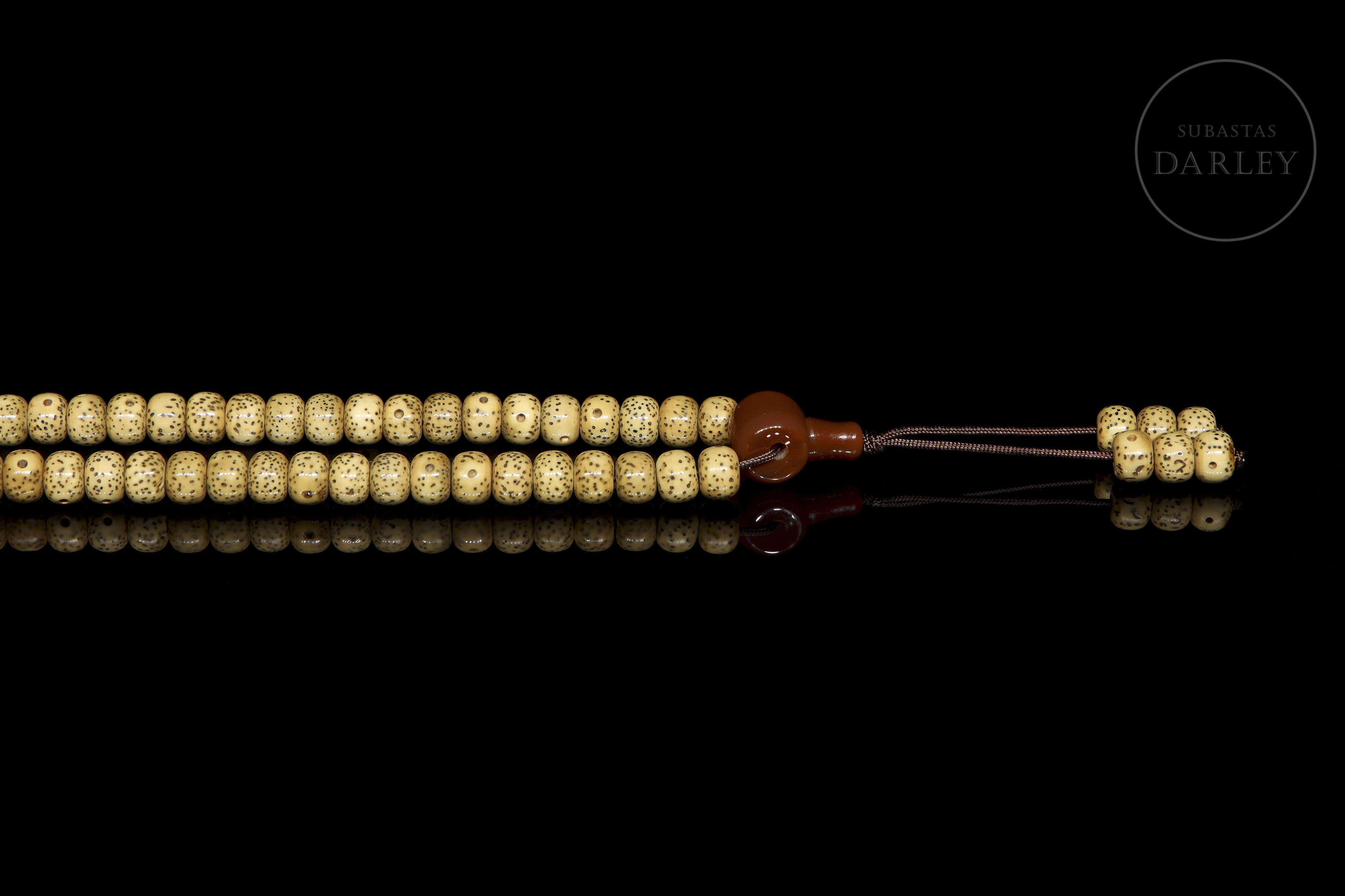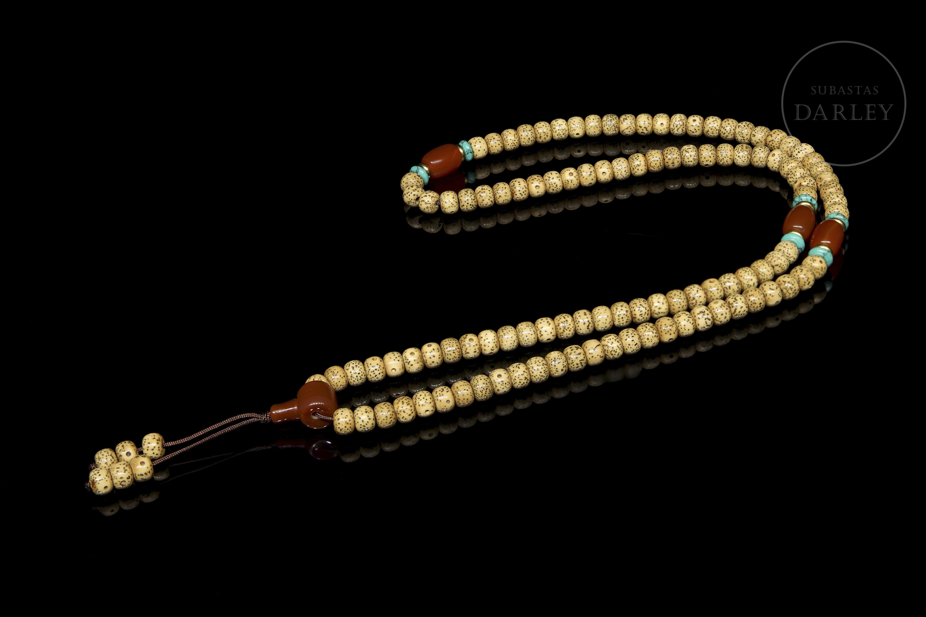 Mala with 118 seed, amber and turquoise beads, 20th century
