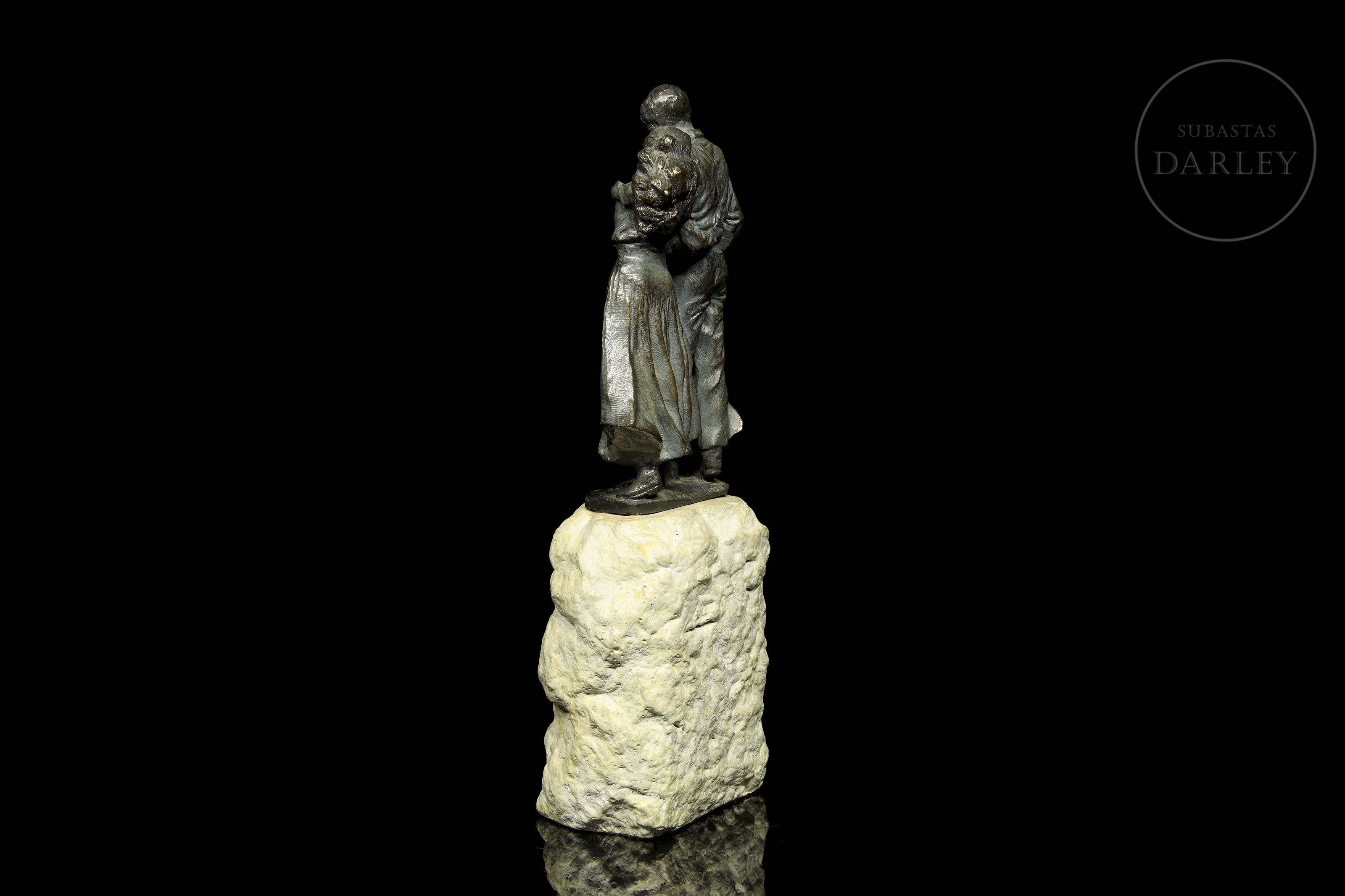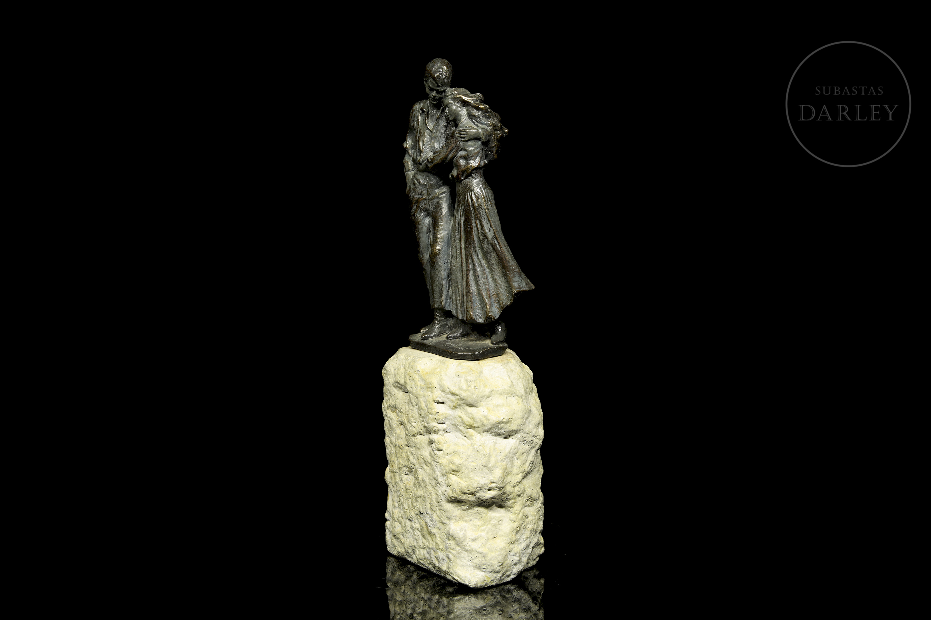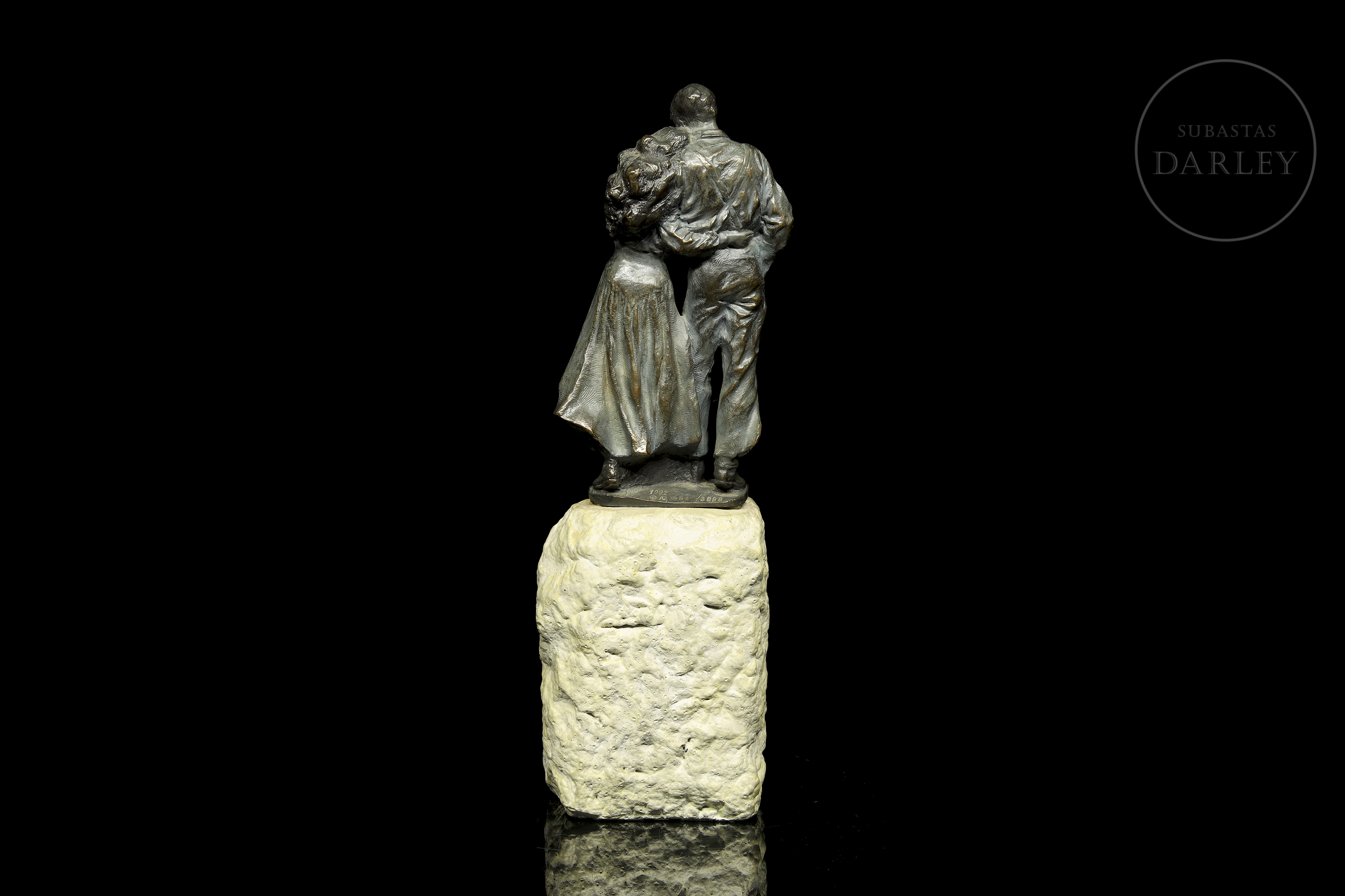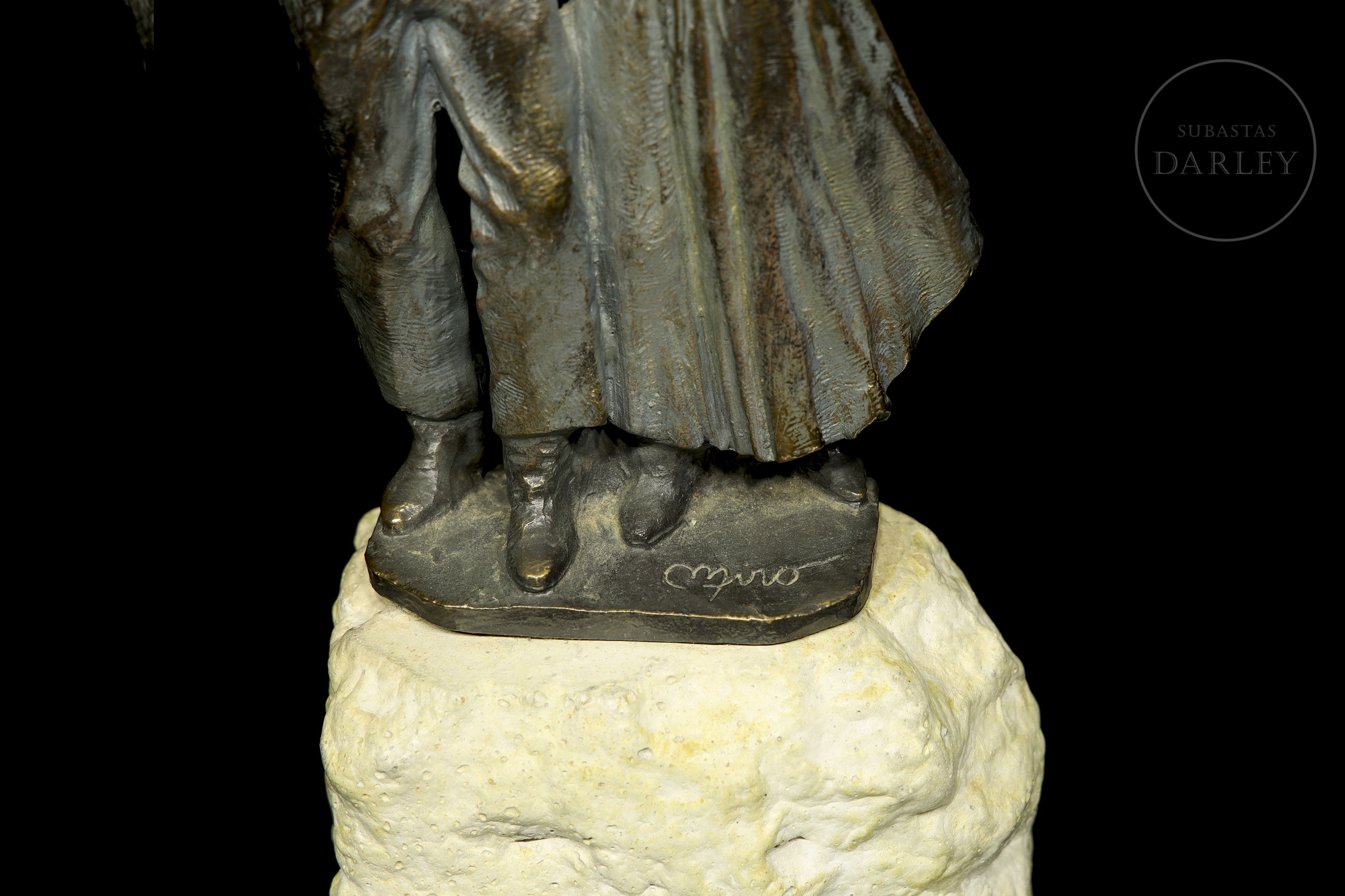 Bronze sculpture on imitation stone base. Signed "Miró" on the base.