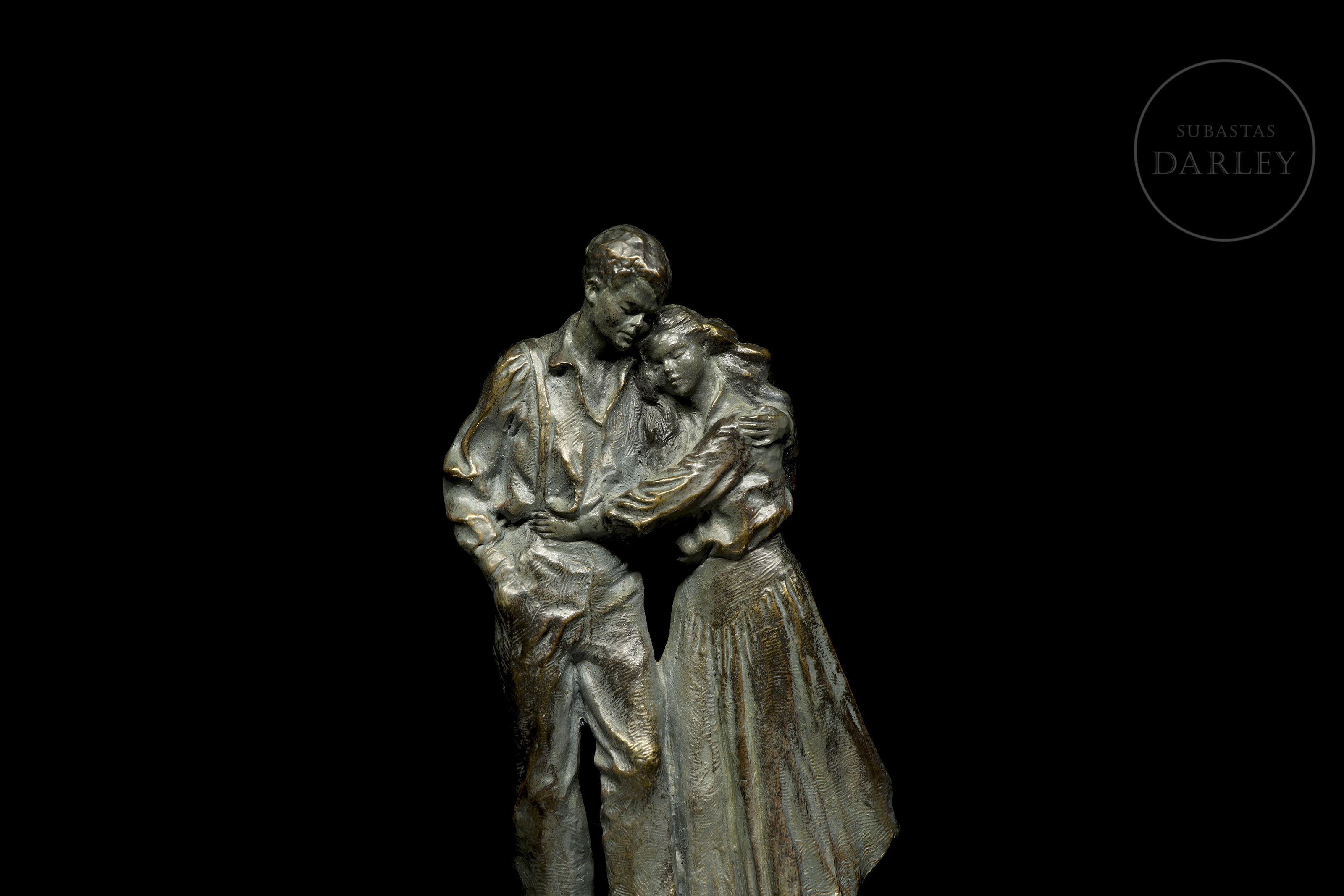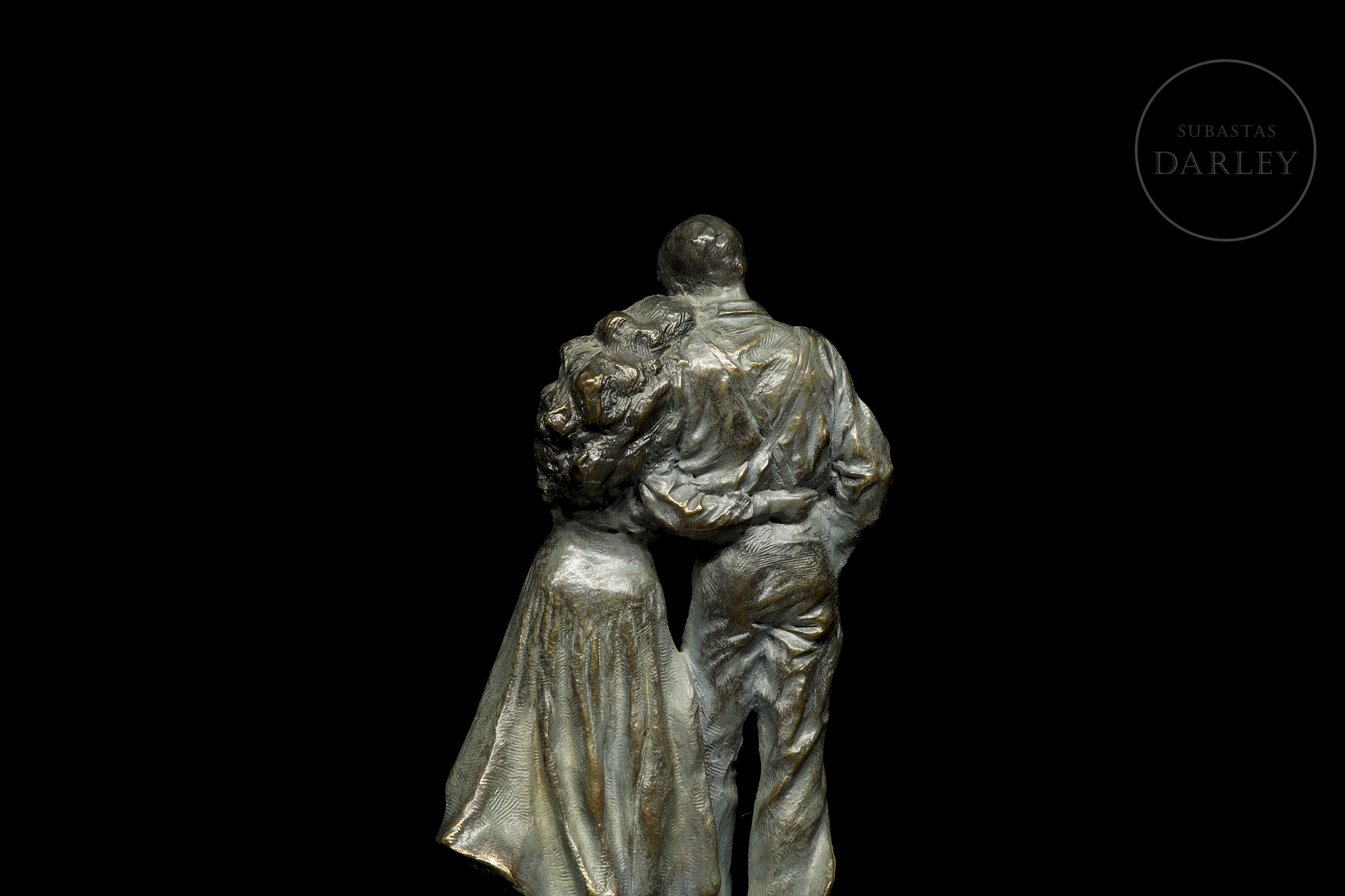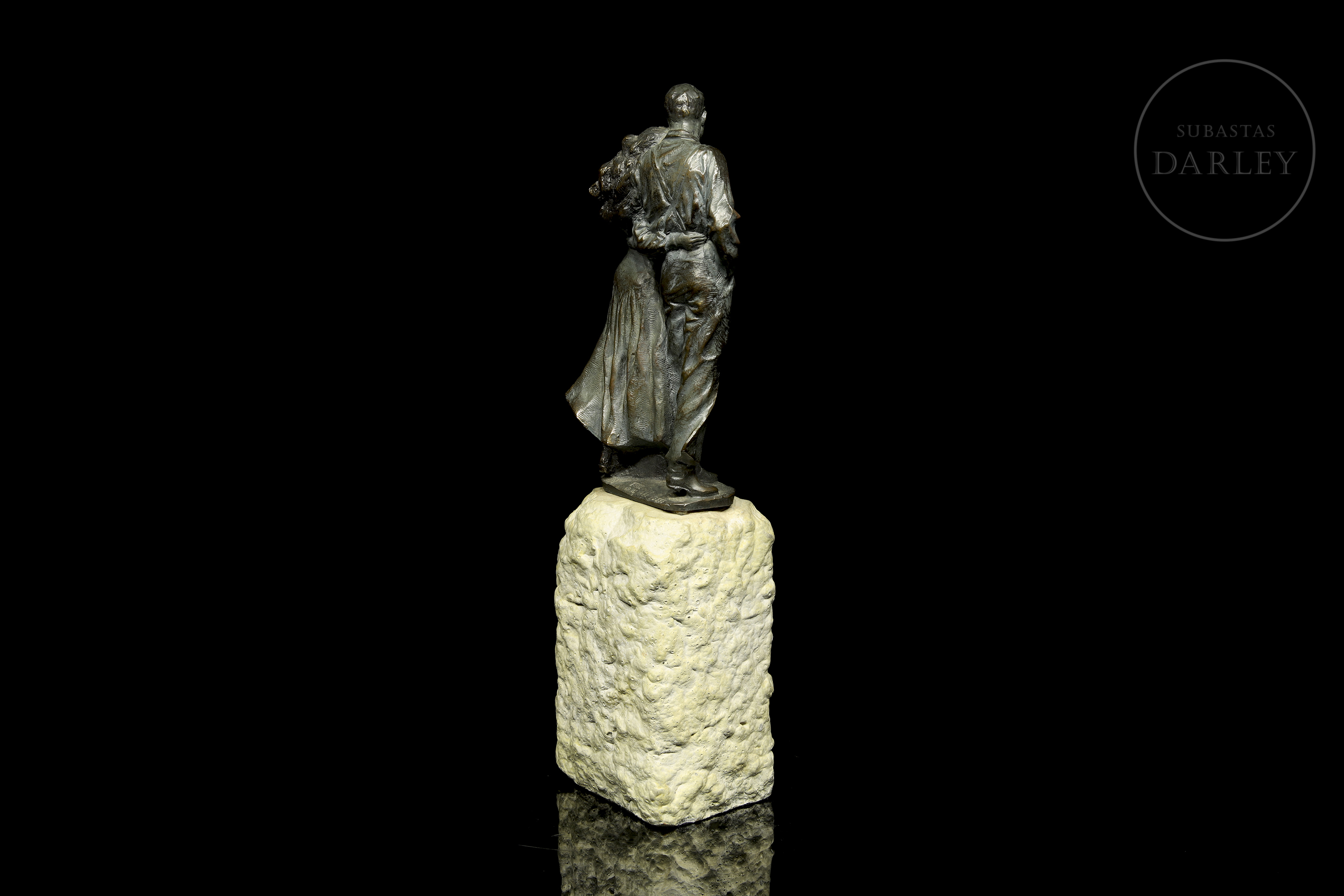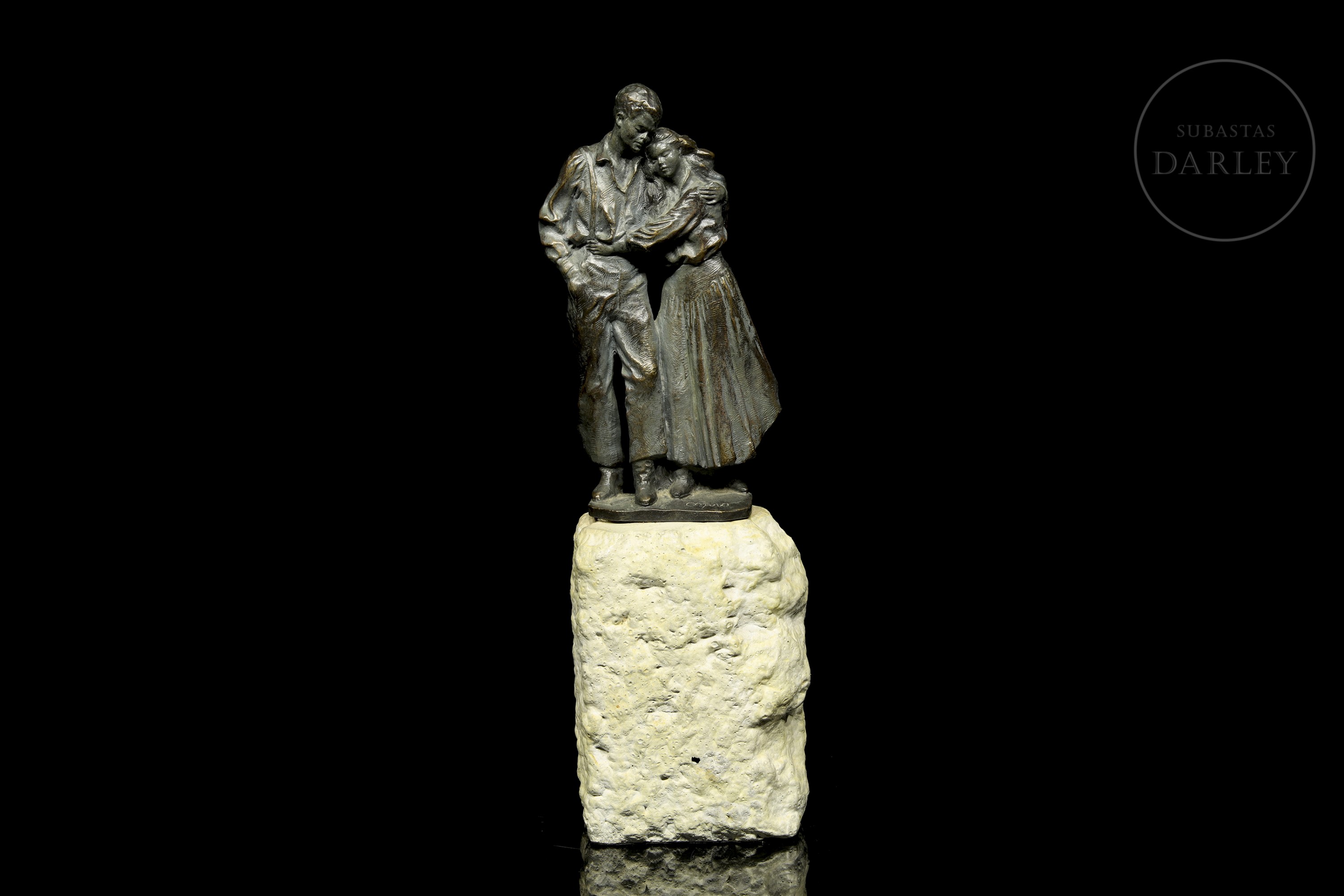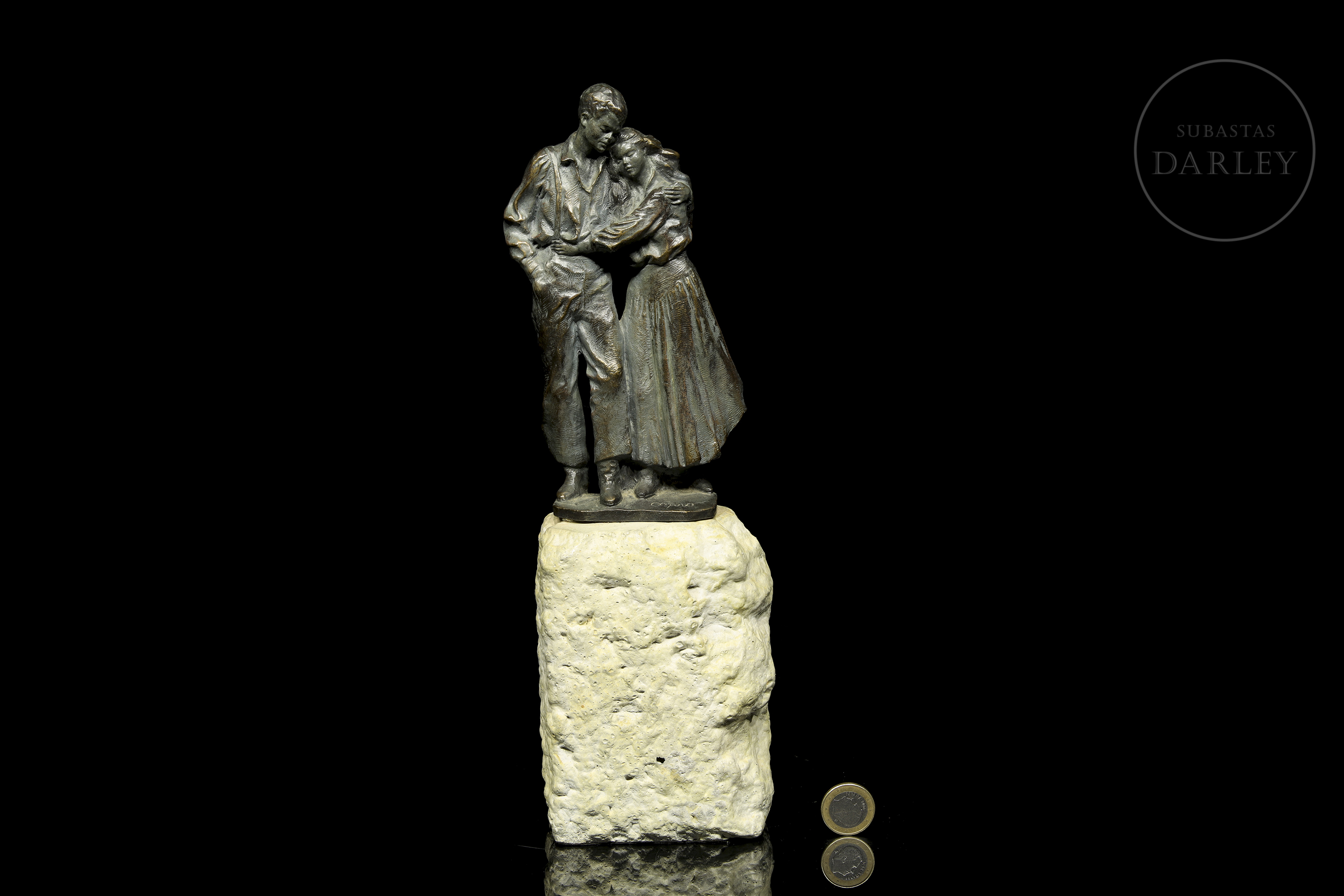 Bronze sculpture on imitation stone base. Signed "Miró" on the base.