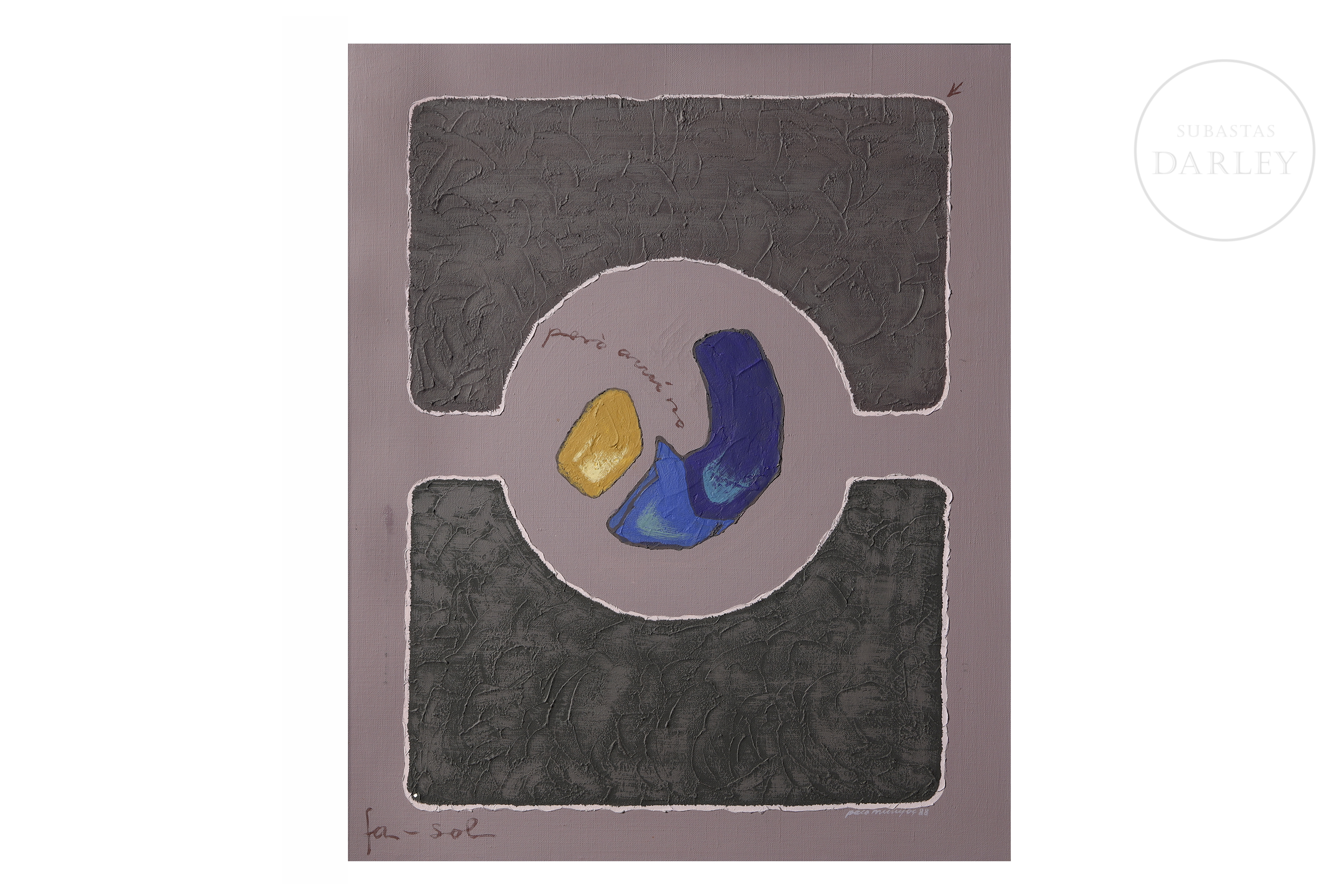 Mixed media on canvas. Signed and dated ‘Paco Munyoç/88’ in the lower right corner.