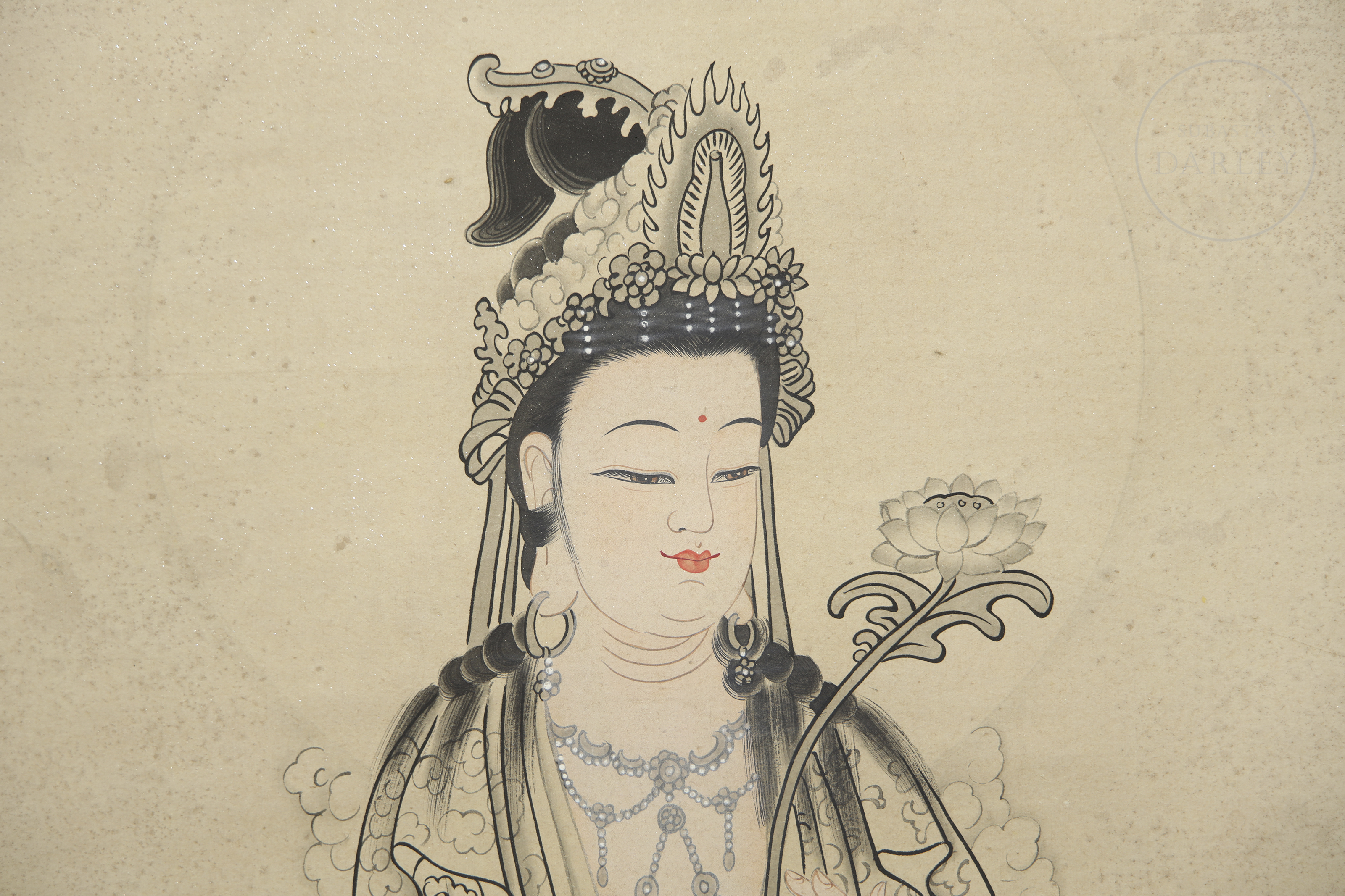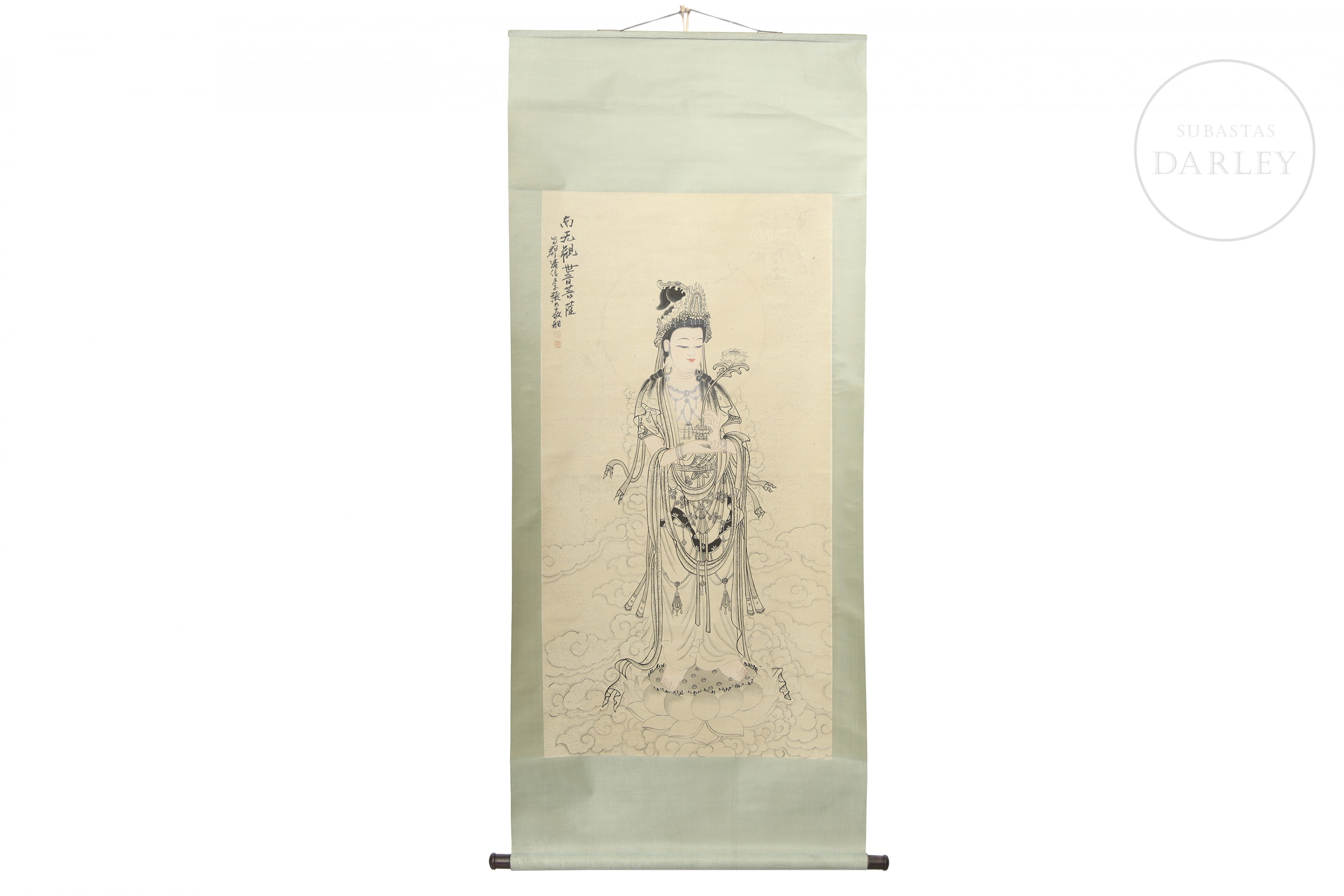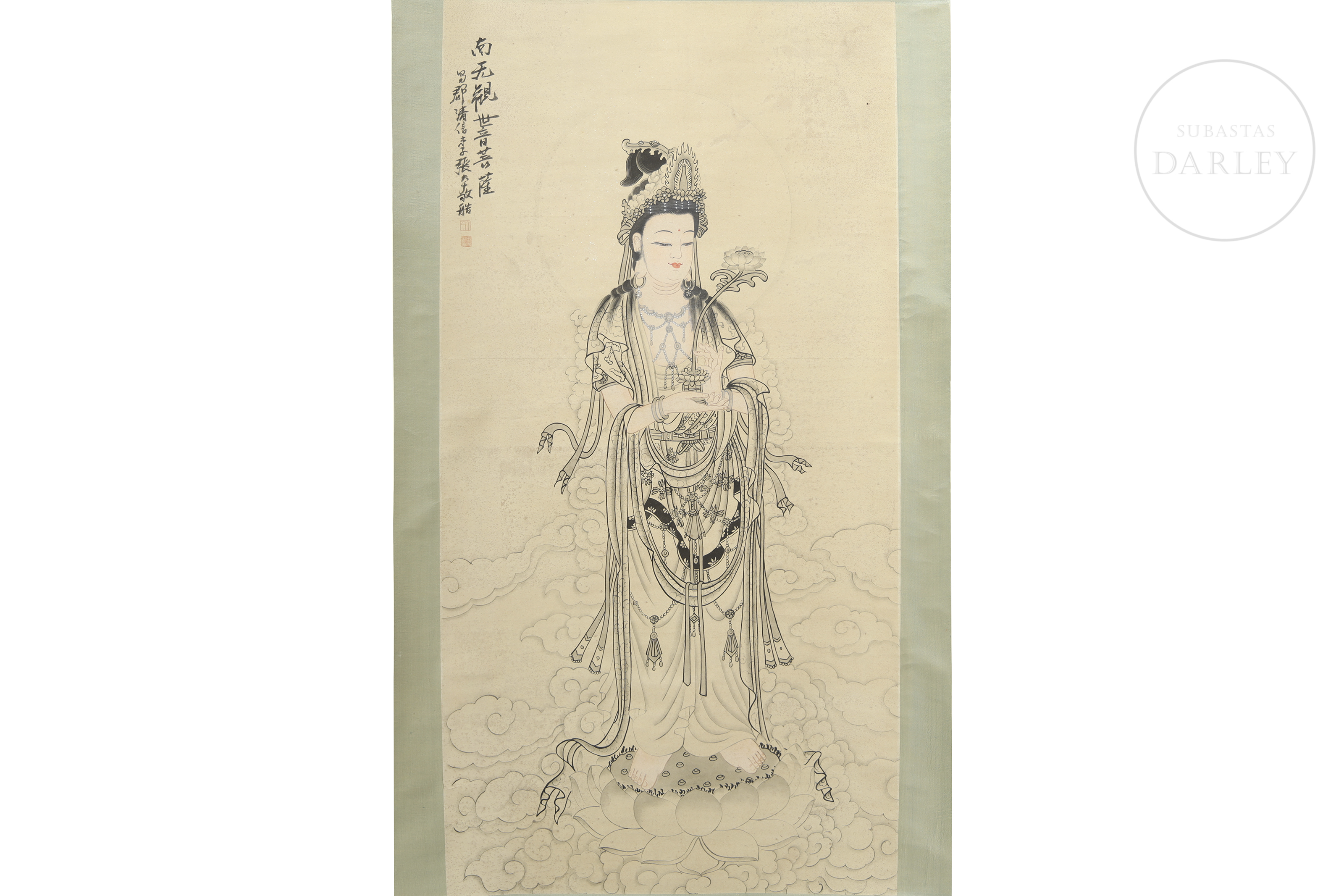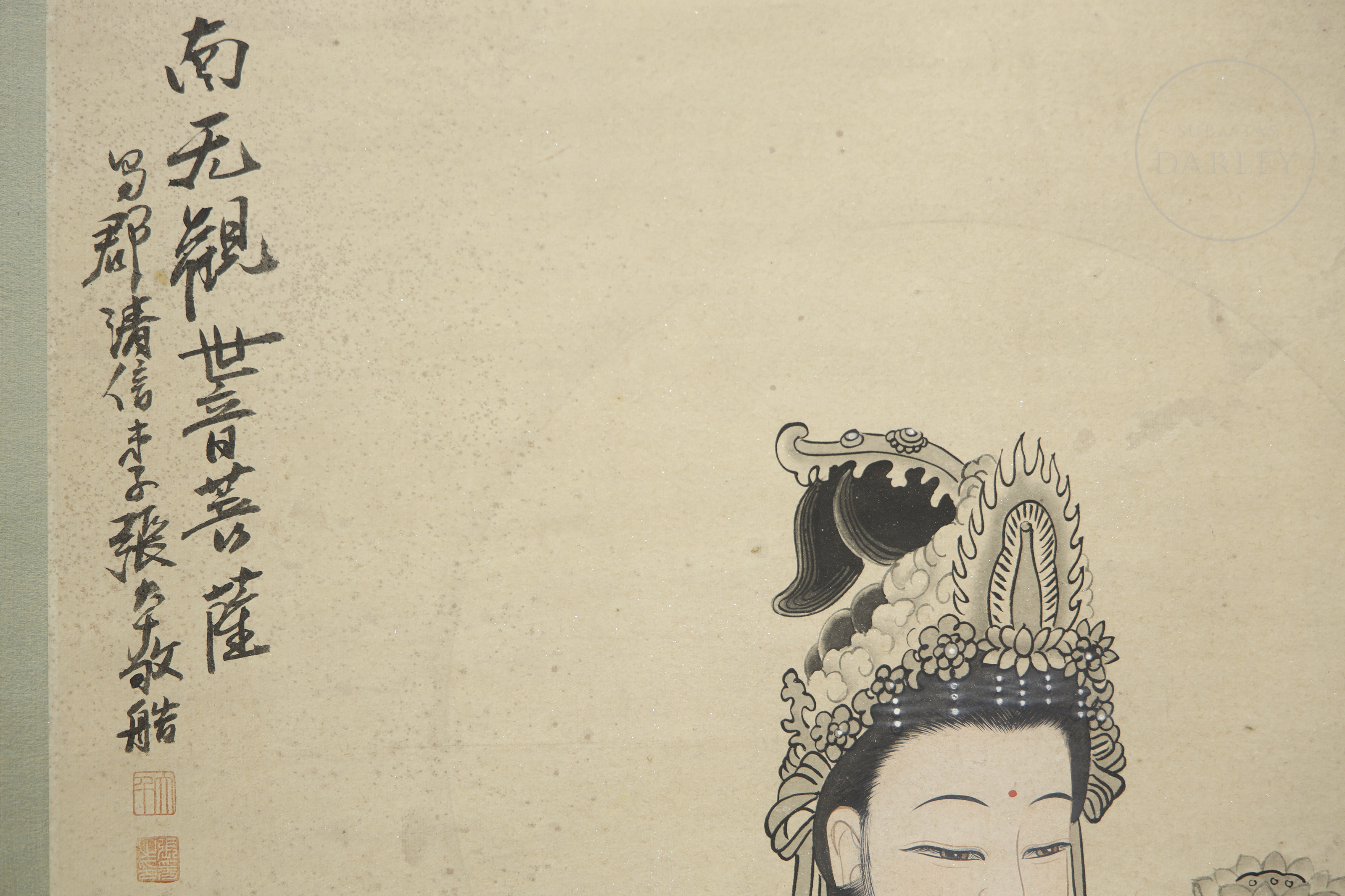 Painting ‘Quanyin with Lotus’, signed Zhang Daqian