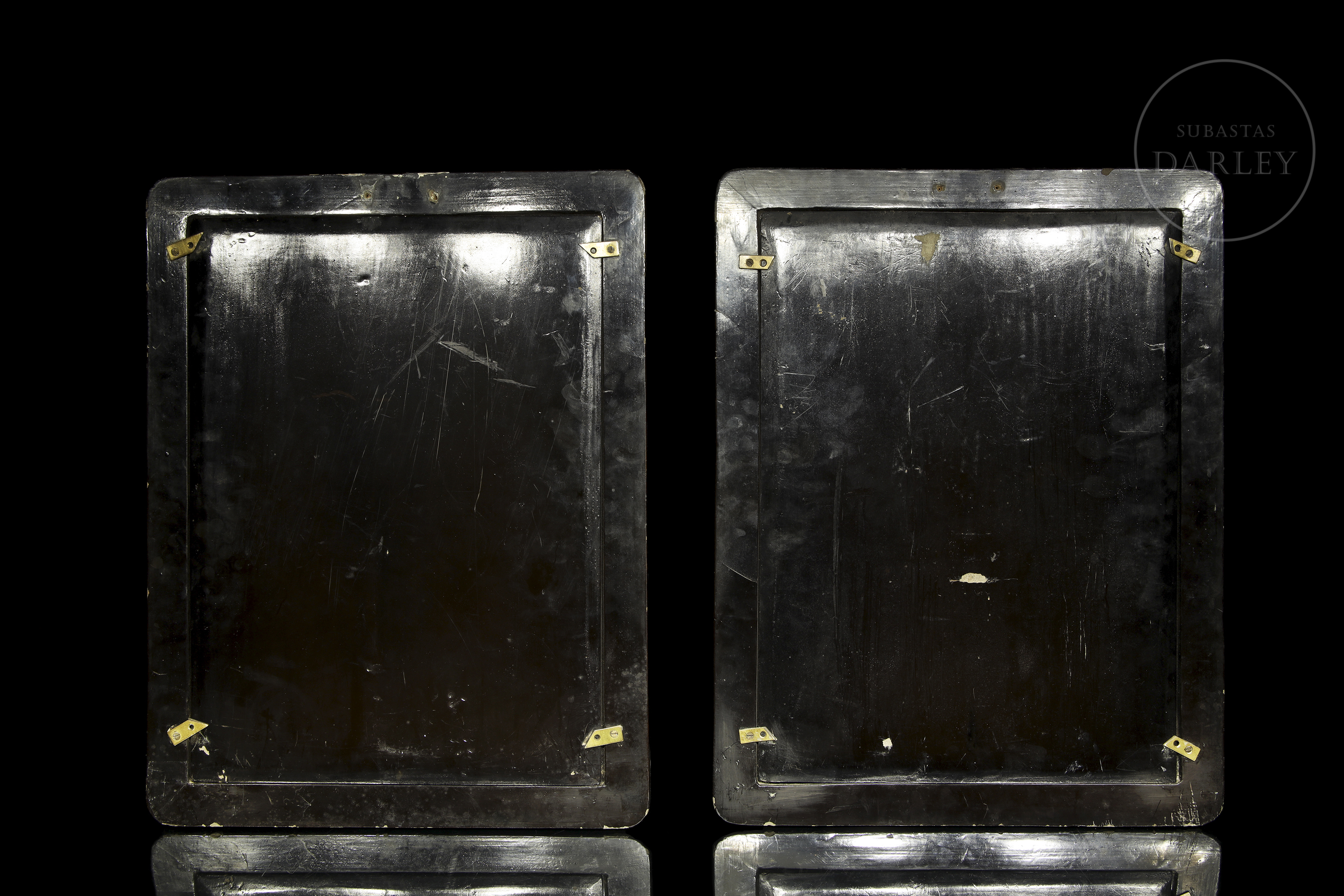 Pair of inlaid wooden mirrors, Qing dynasty.
