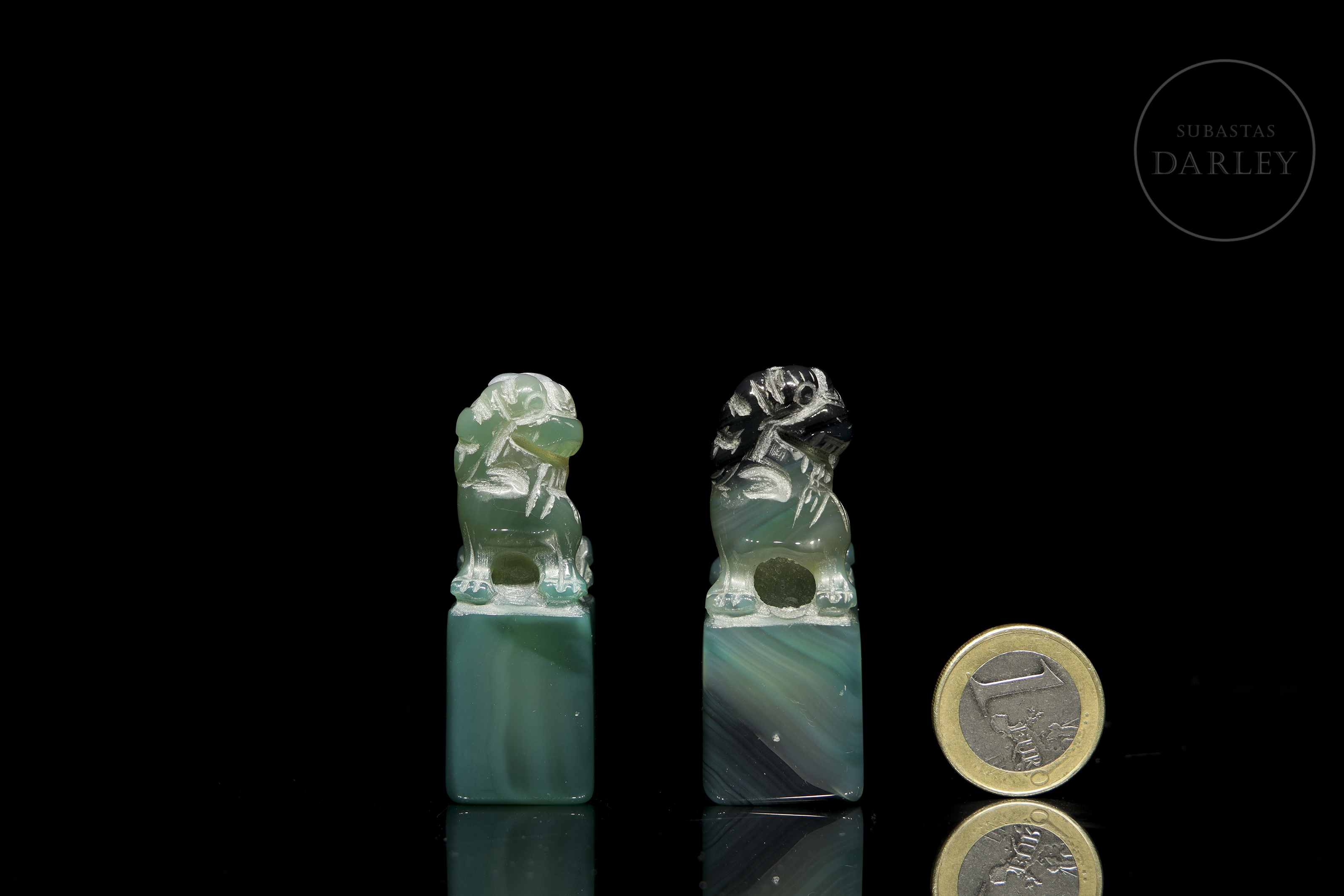 Pair of ‘Lion’ agate stamps, early 20th century