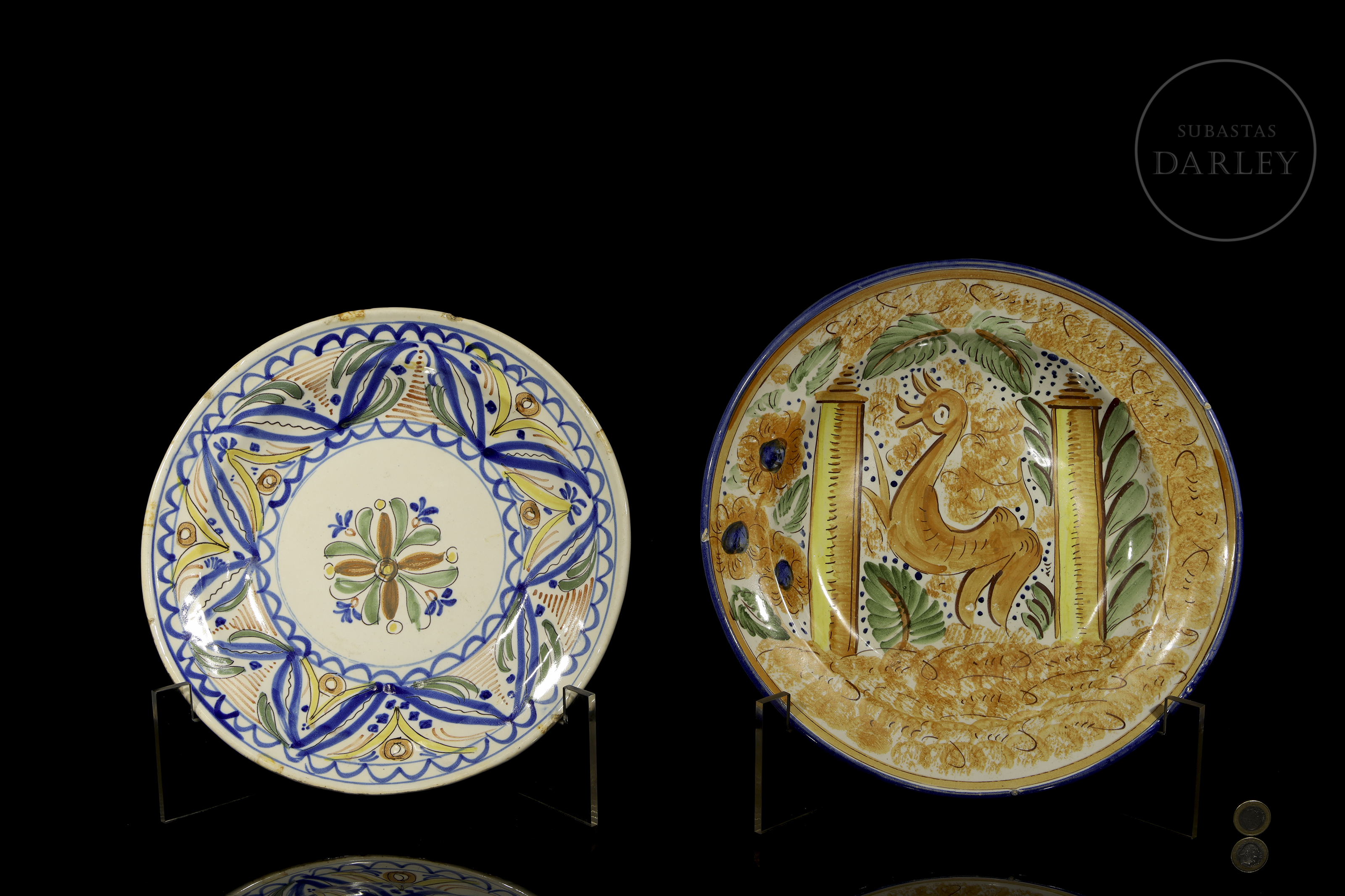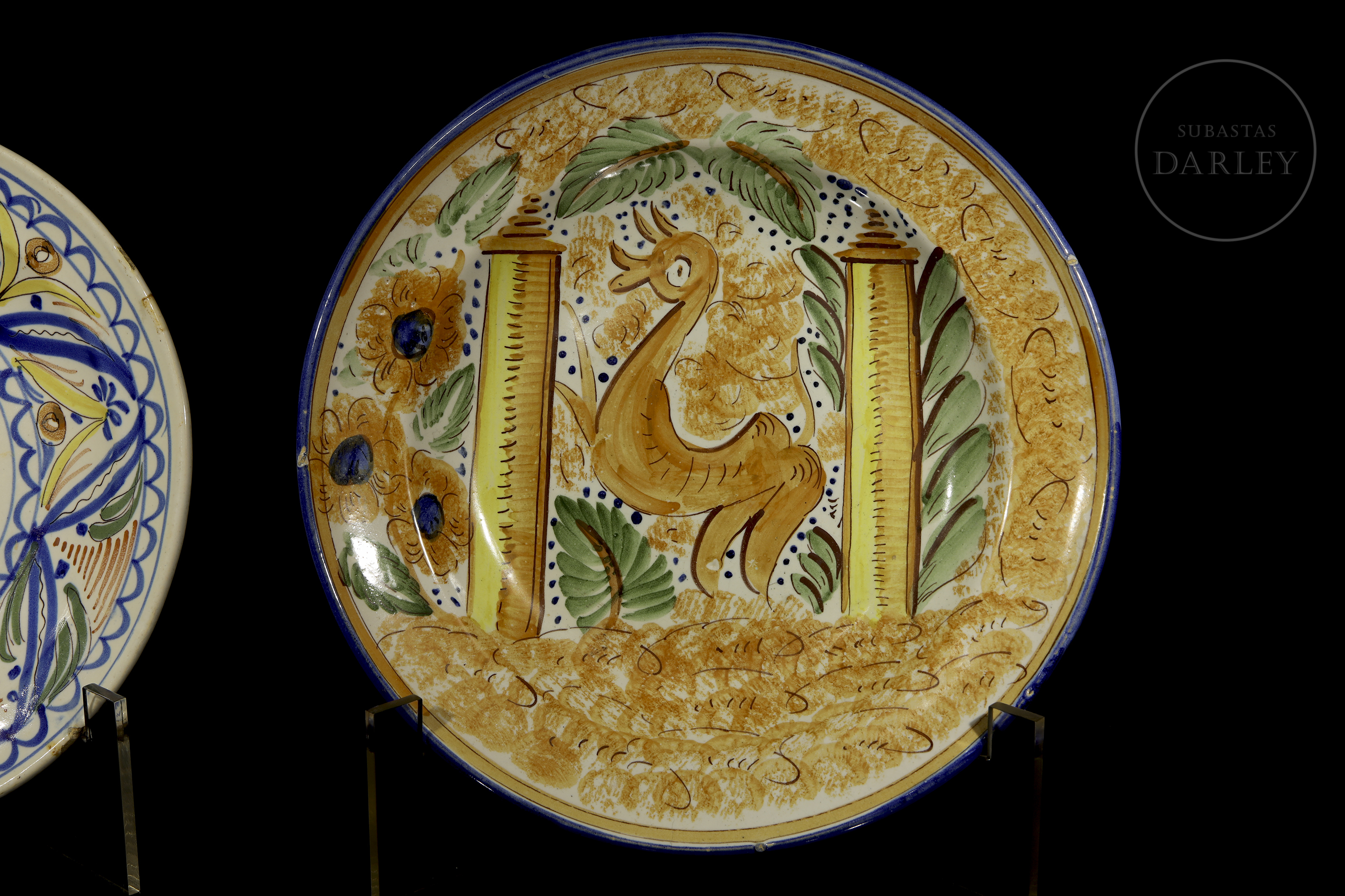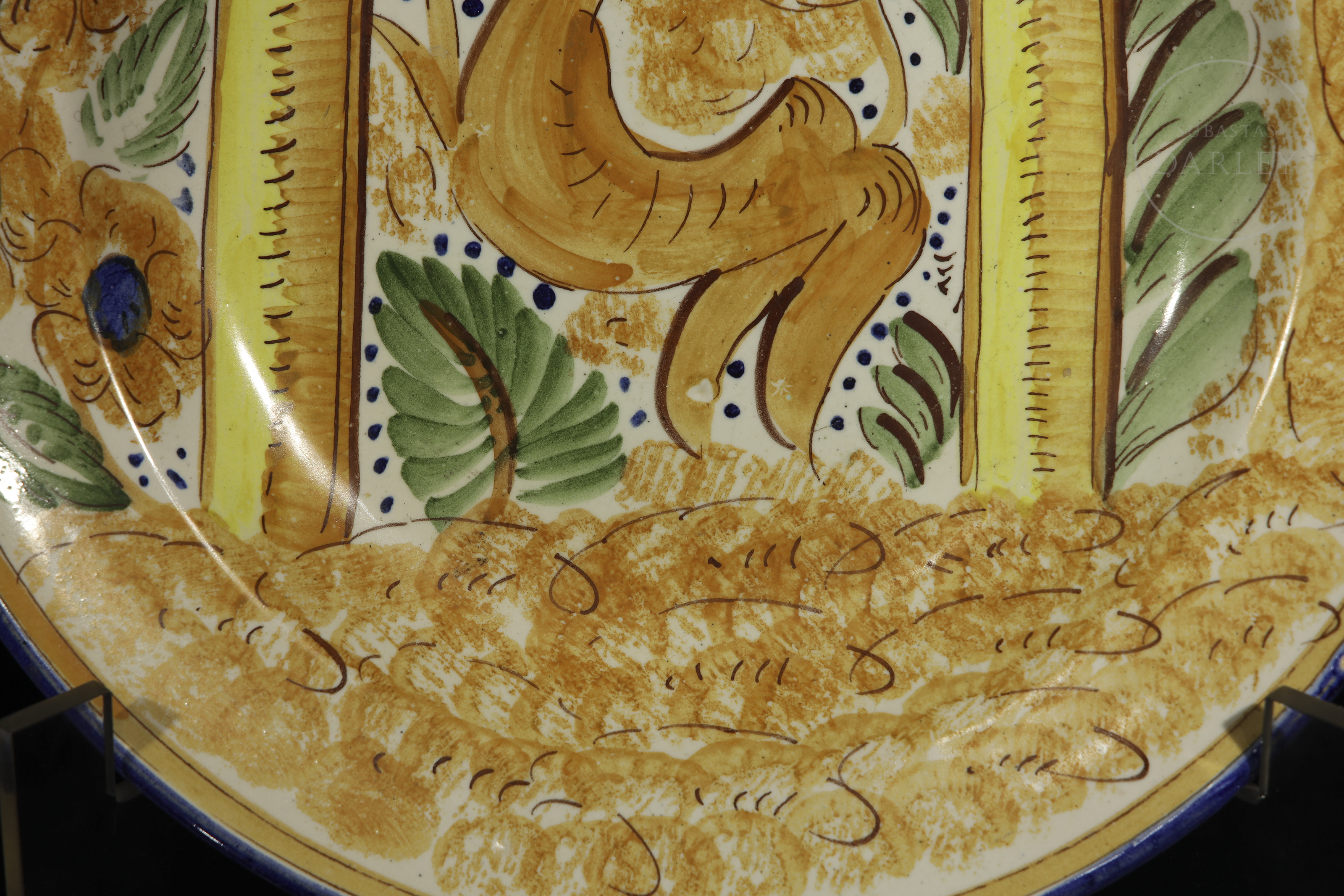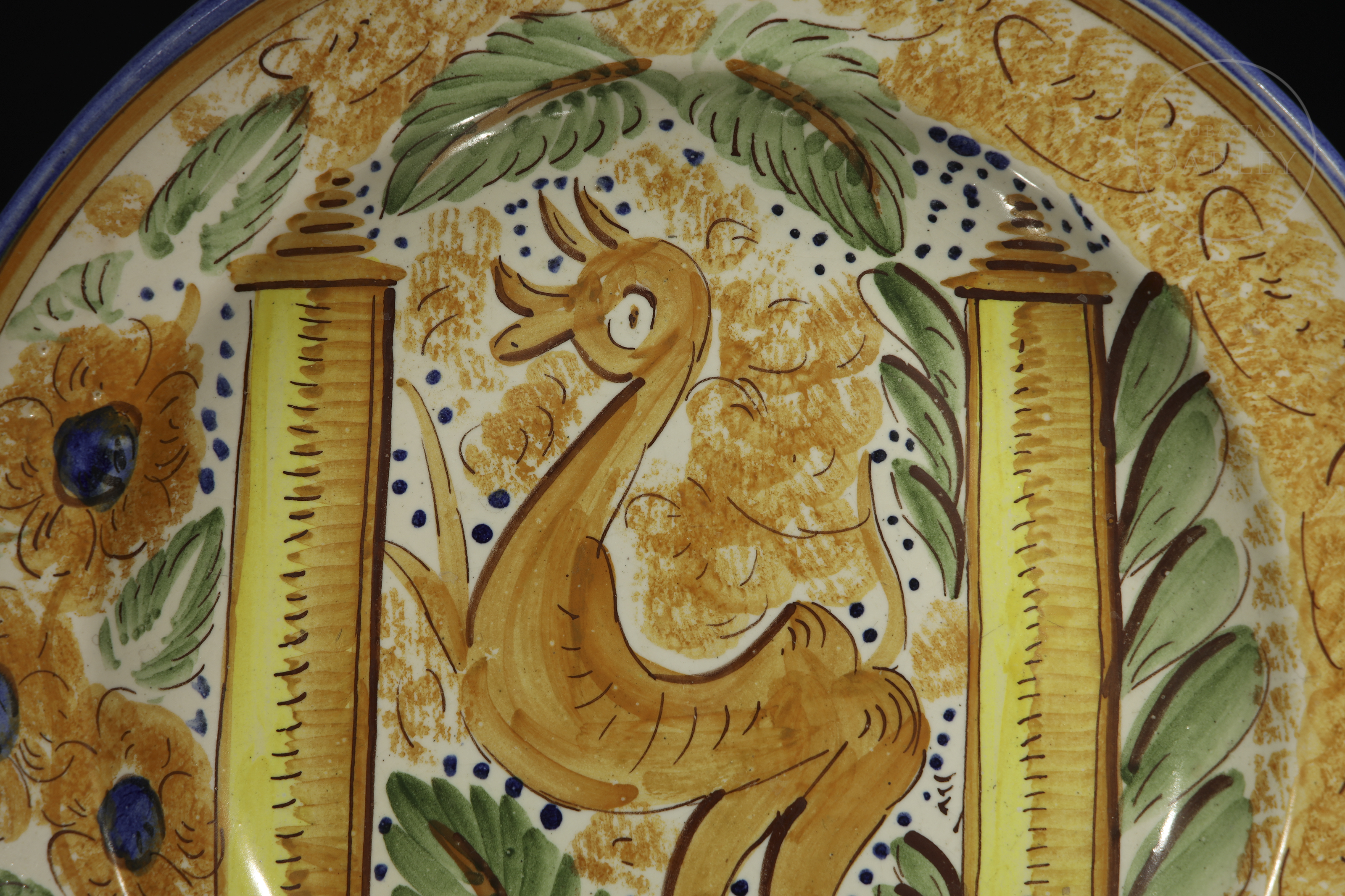 Glazed ceramic with plant and animal motifs. With mark on the base.