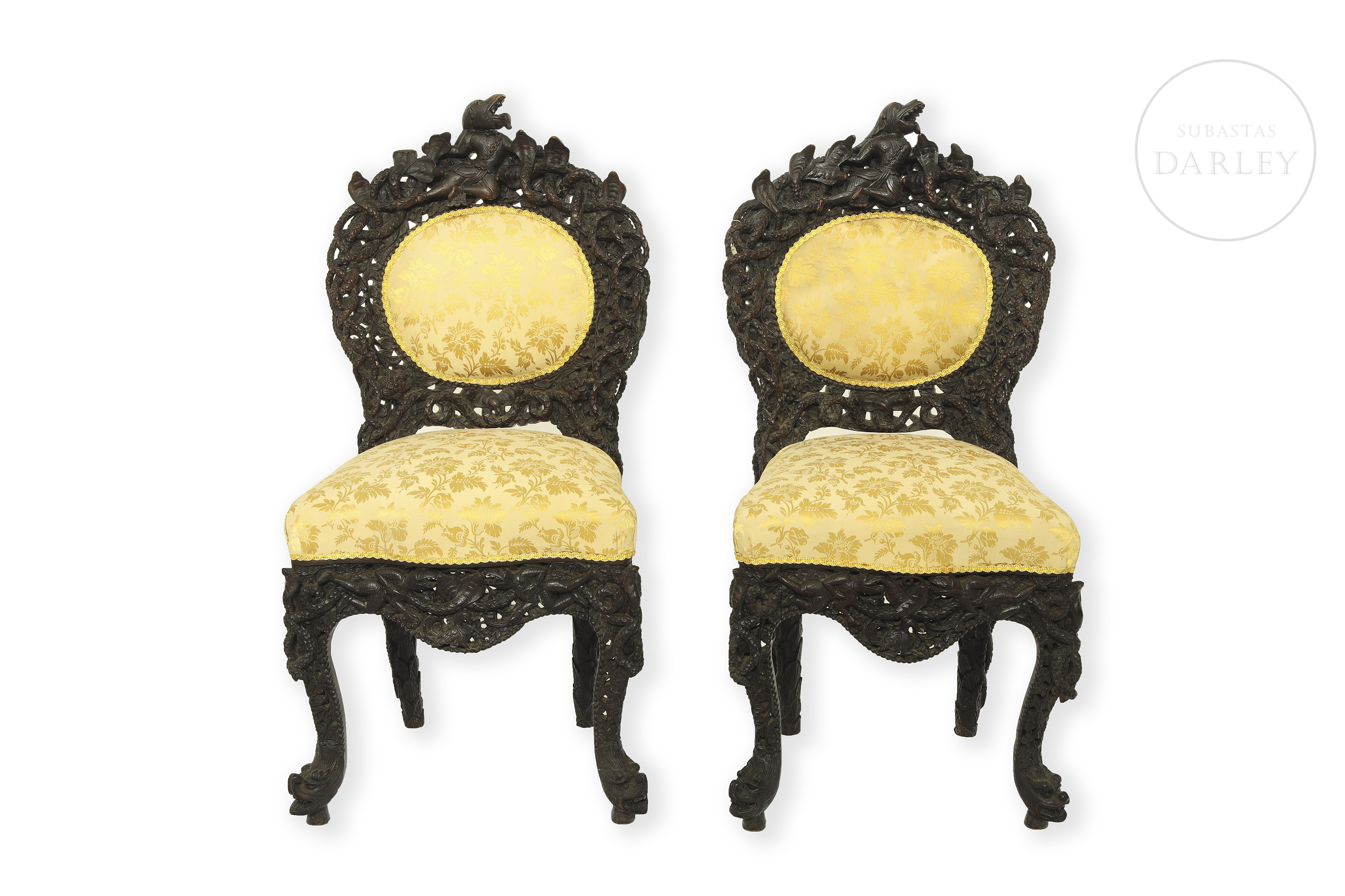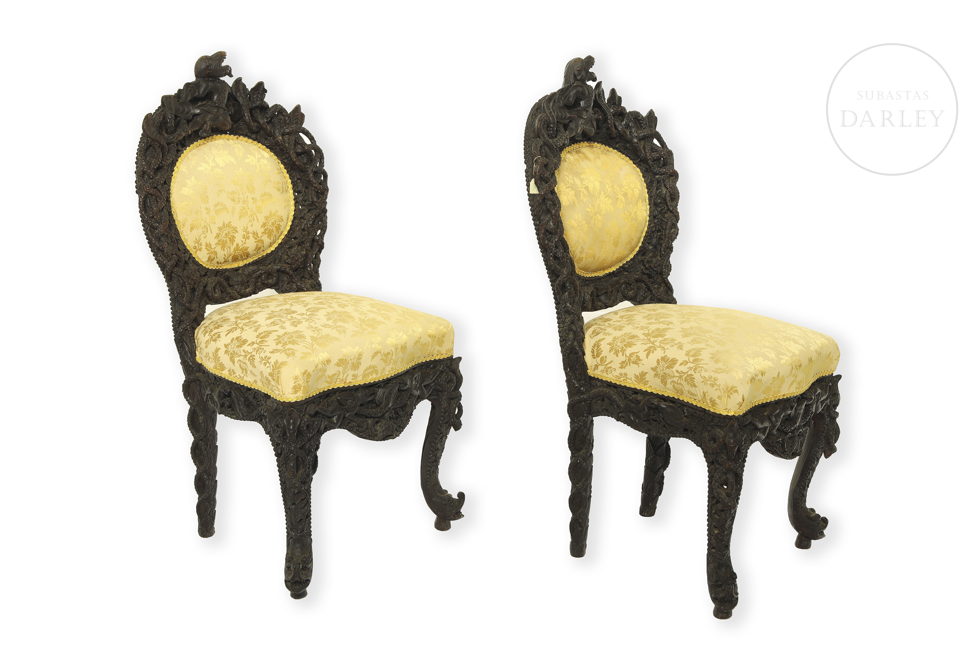 Home > Direct Sale > Completed auctions > Pair of Thai carved wooden chairs, carved wood, 19th century