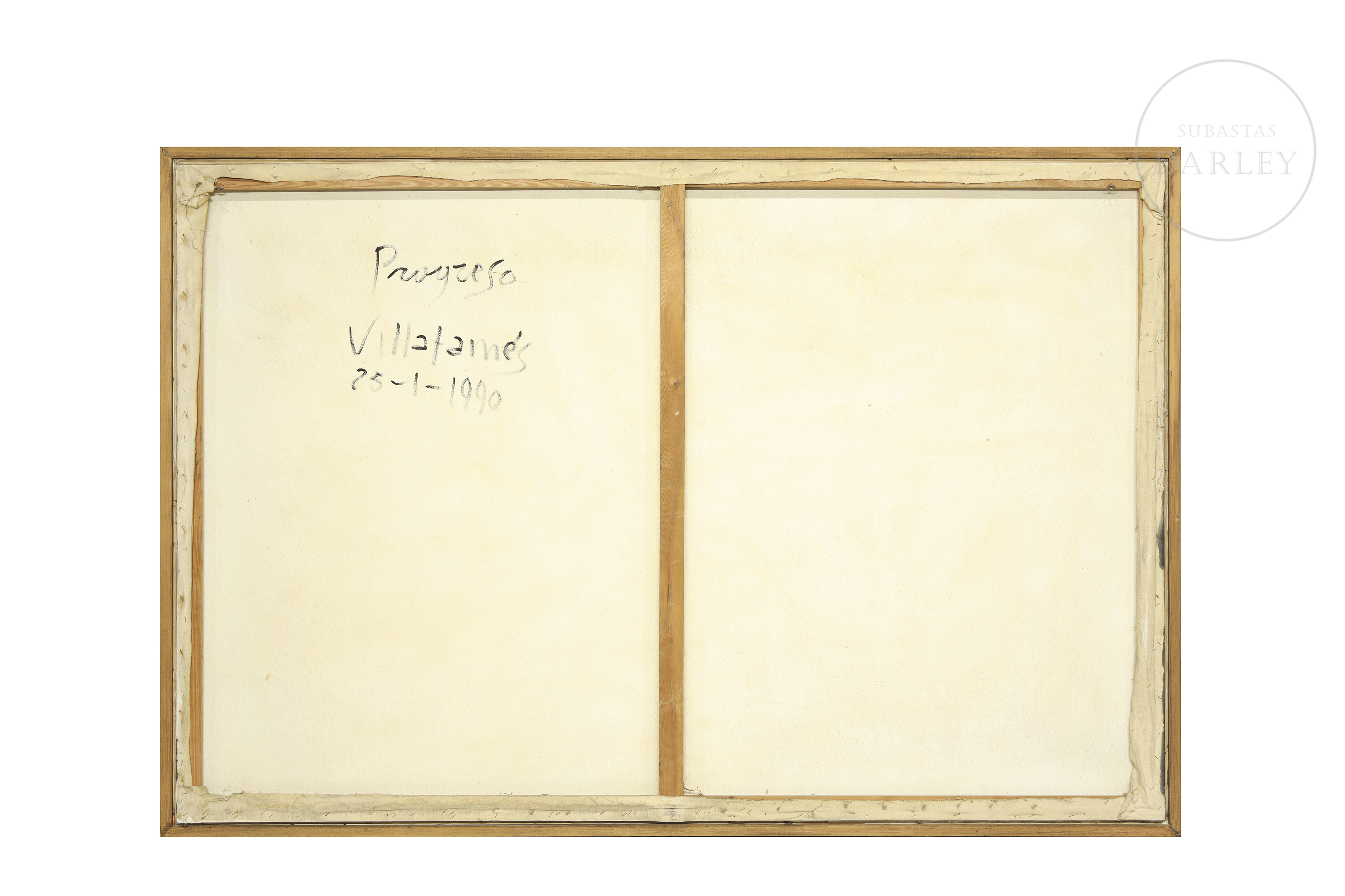 Oil on canvas. Signed "Progress" in the lower right corner. Signed, located and dated on the back.