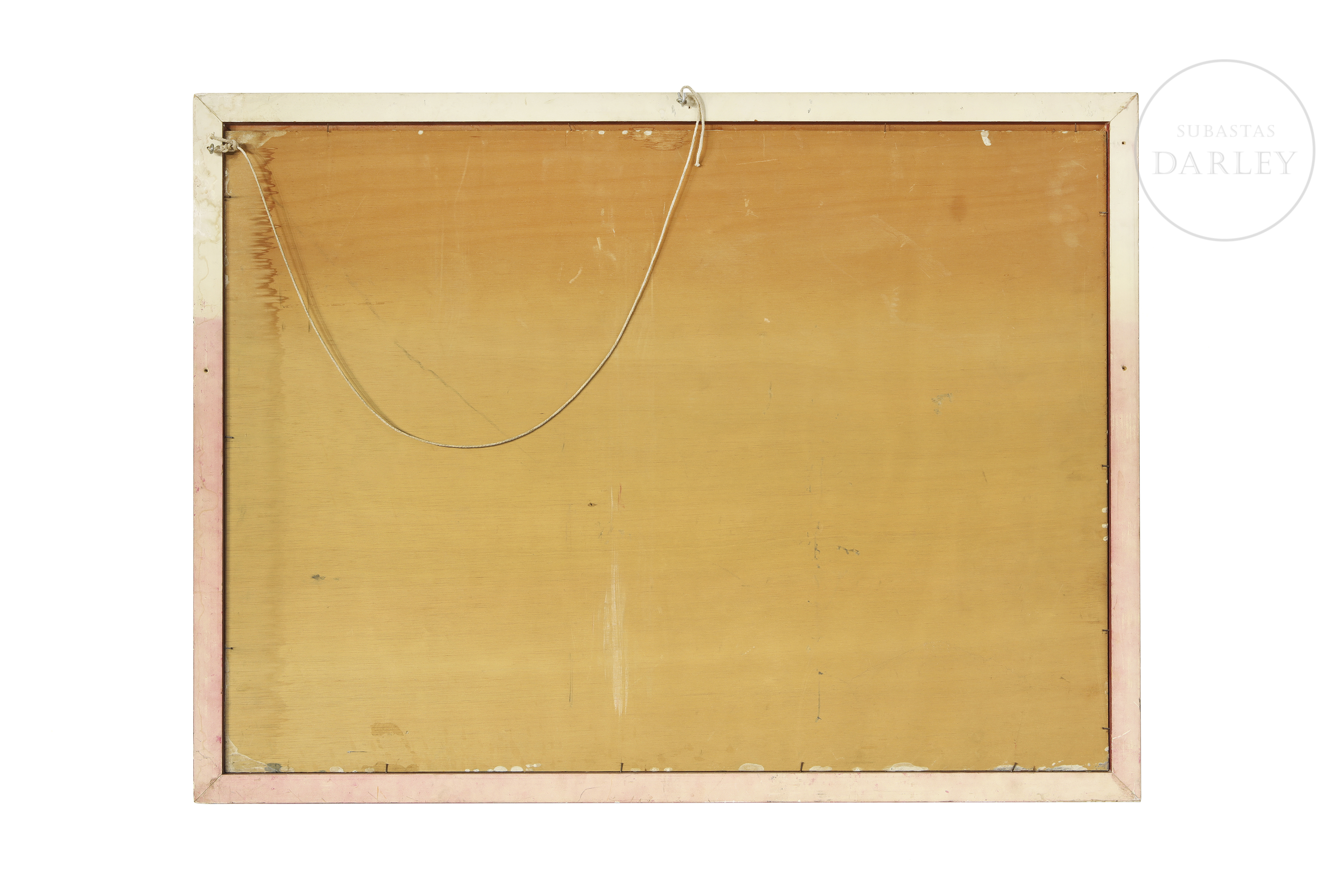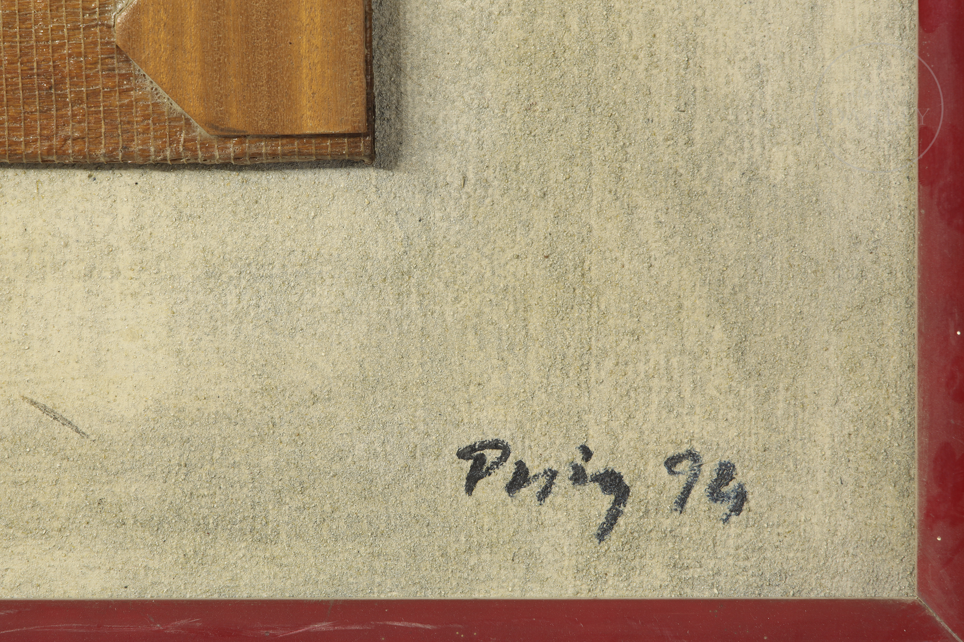 Mixed technique on wood. Signed "Puig 94" in the lower right corner.