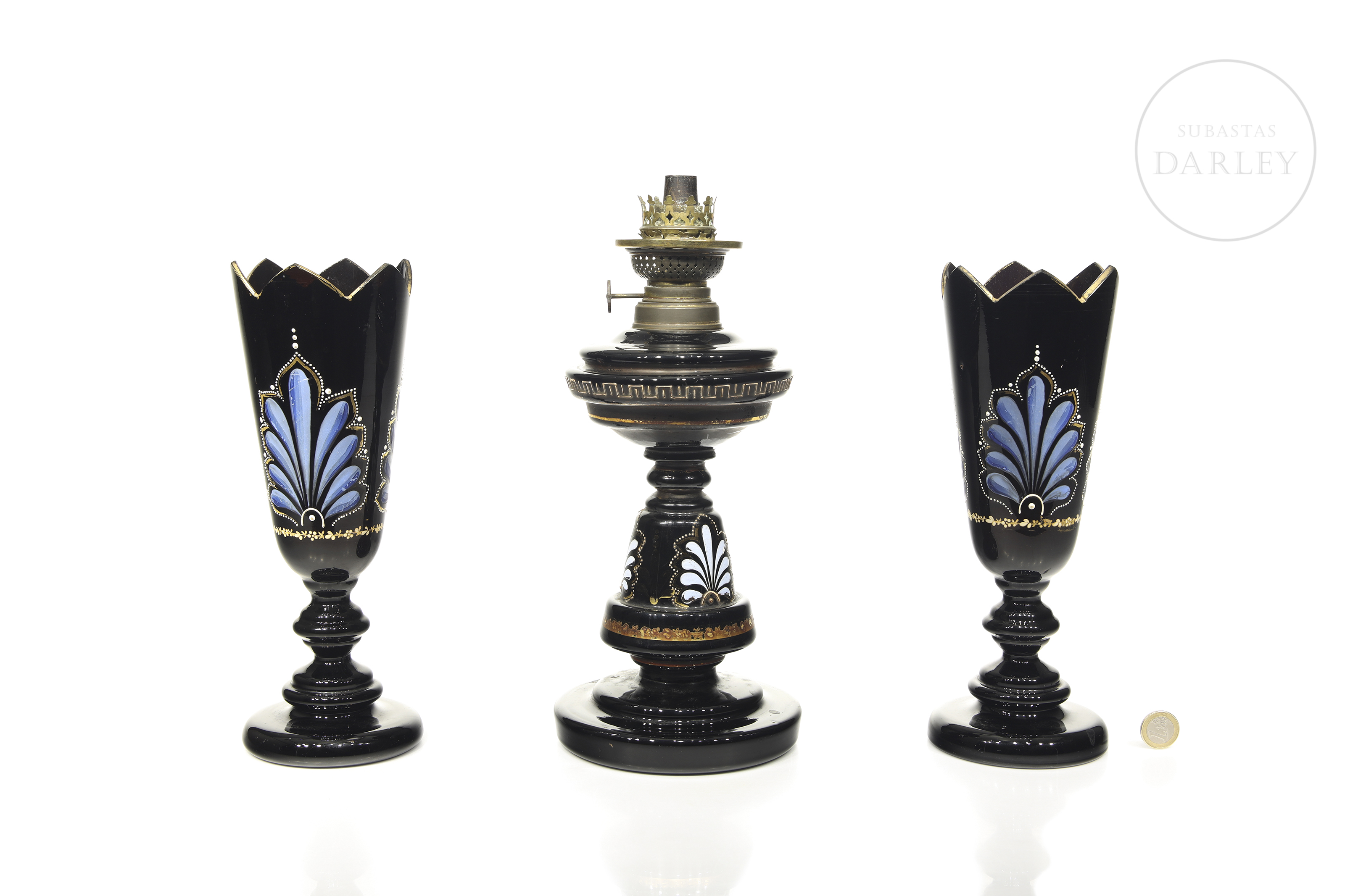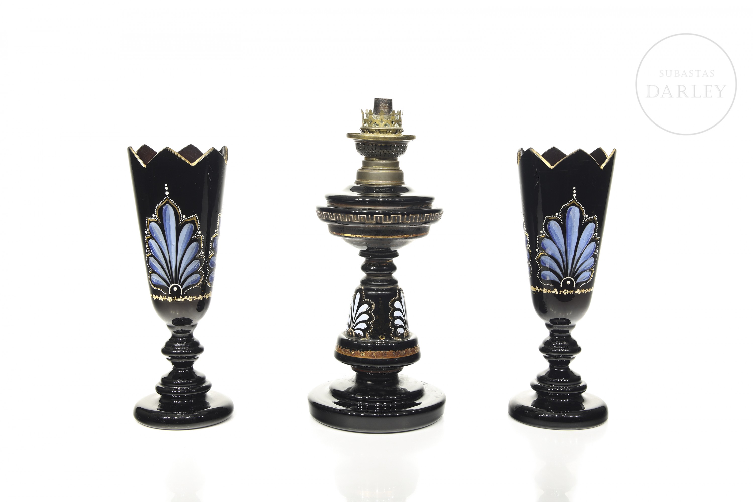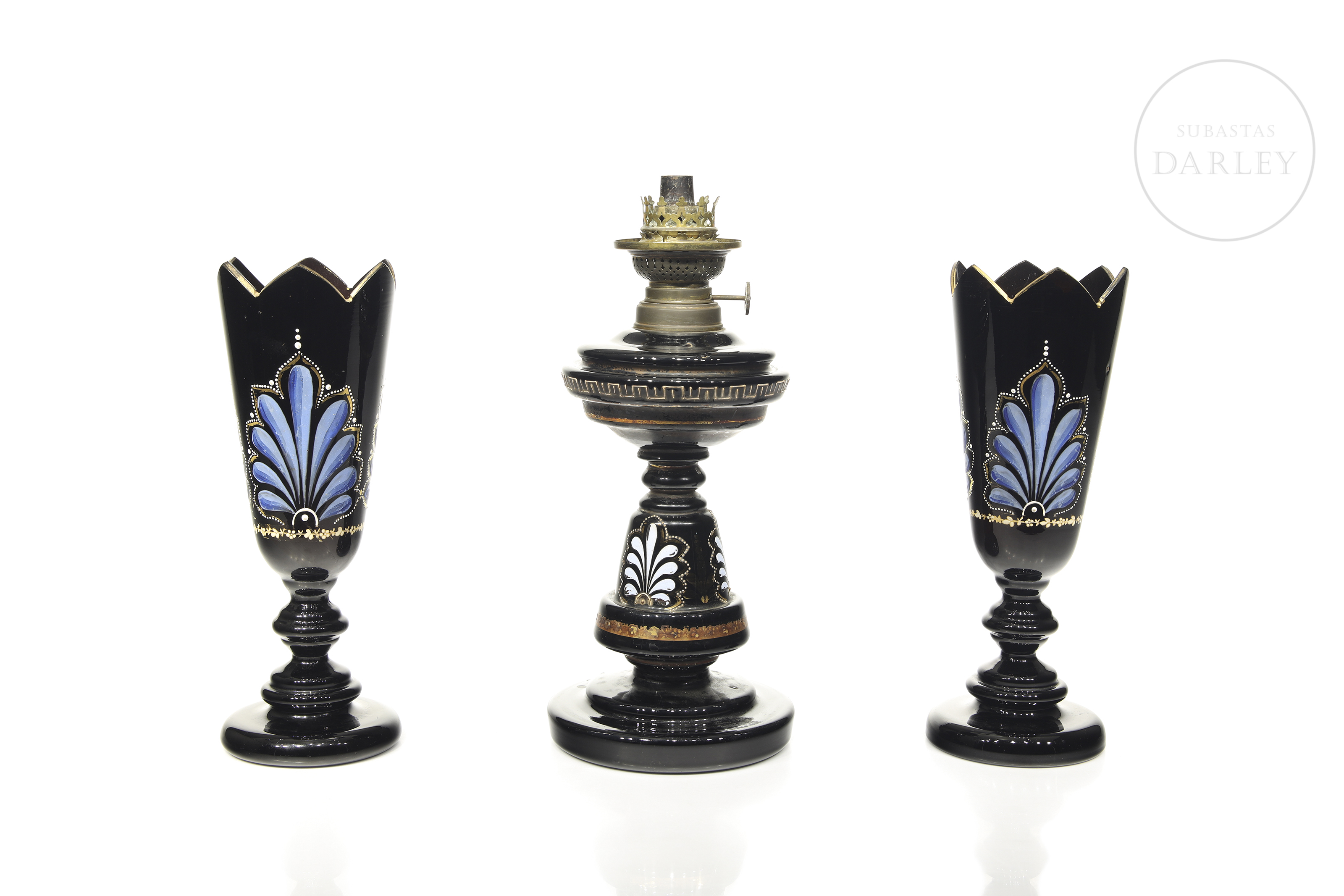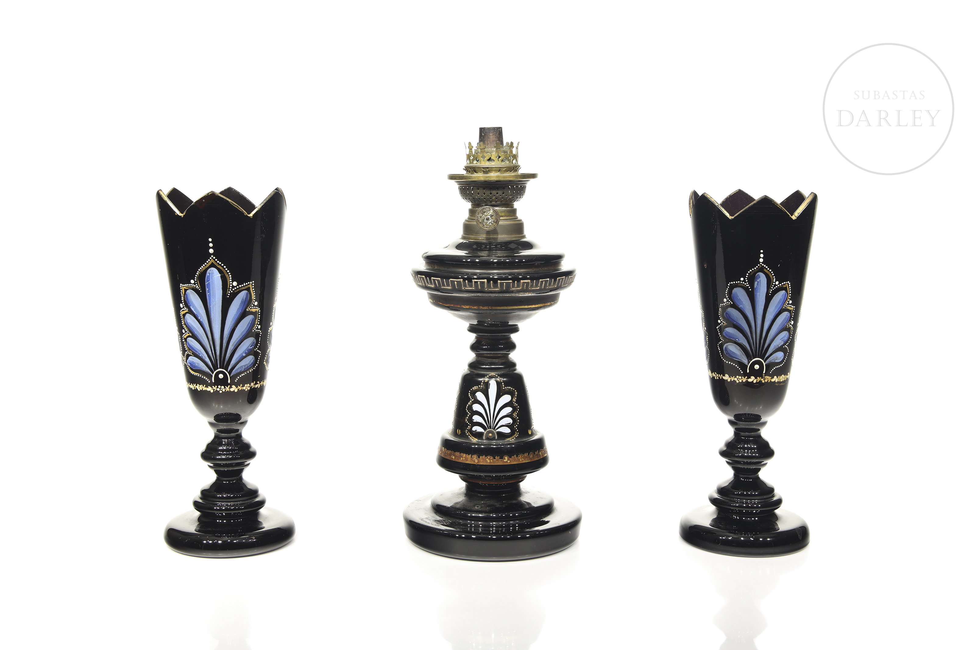 Height: 33.5 cm (lamp); Height: 28.2 cm (vases)