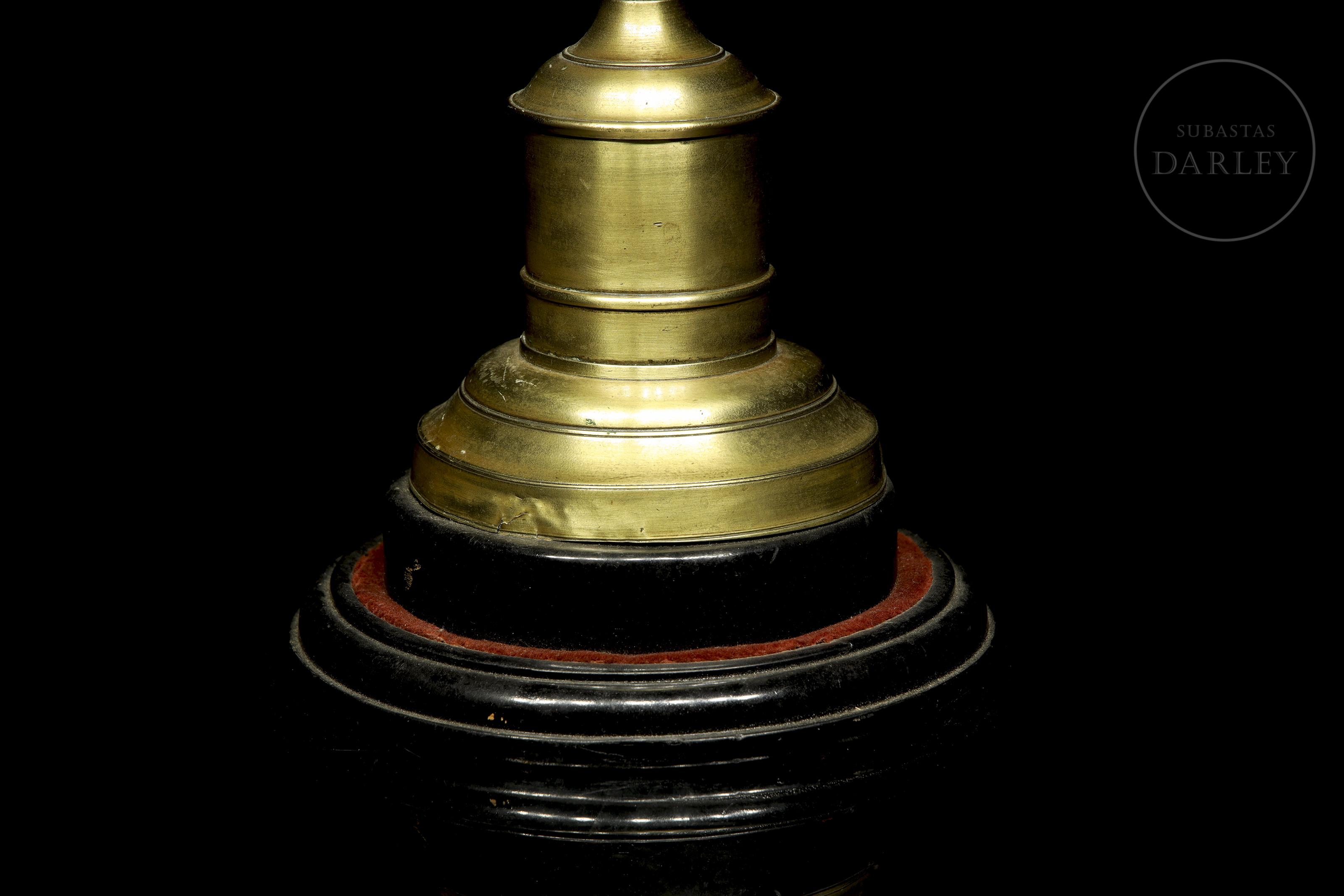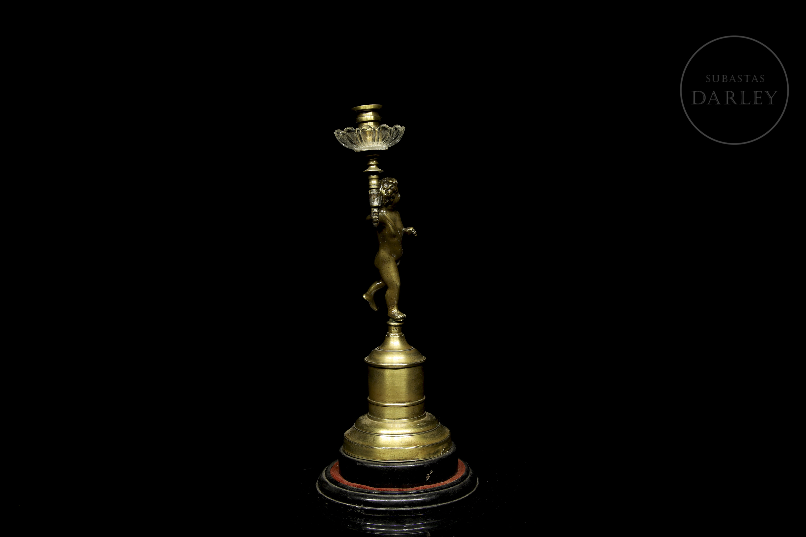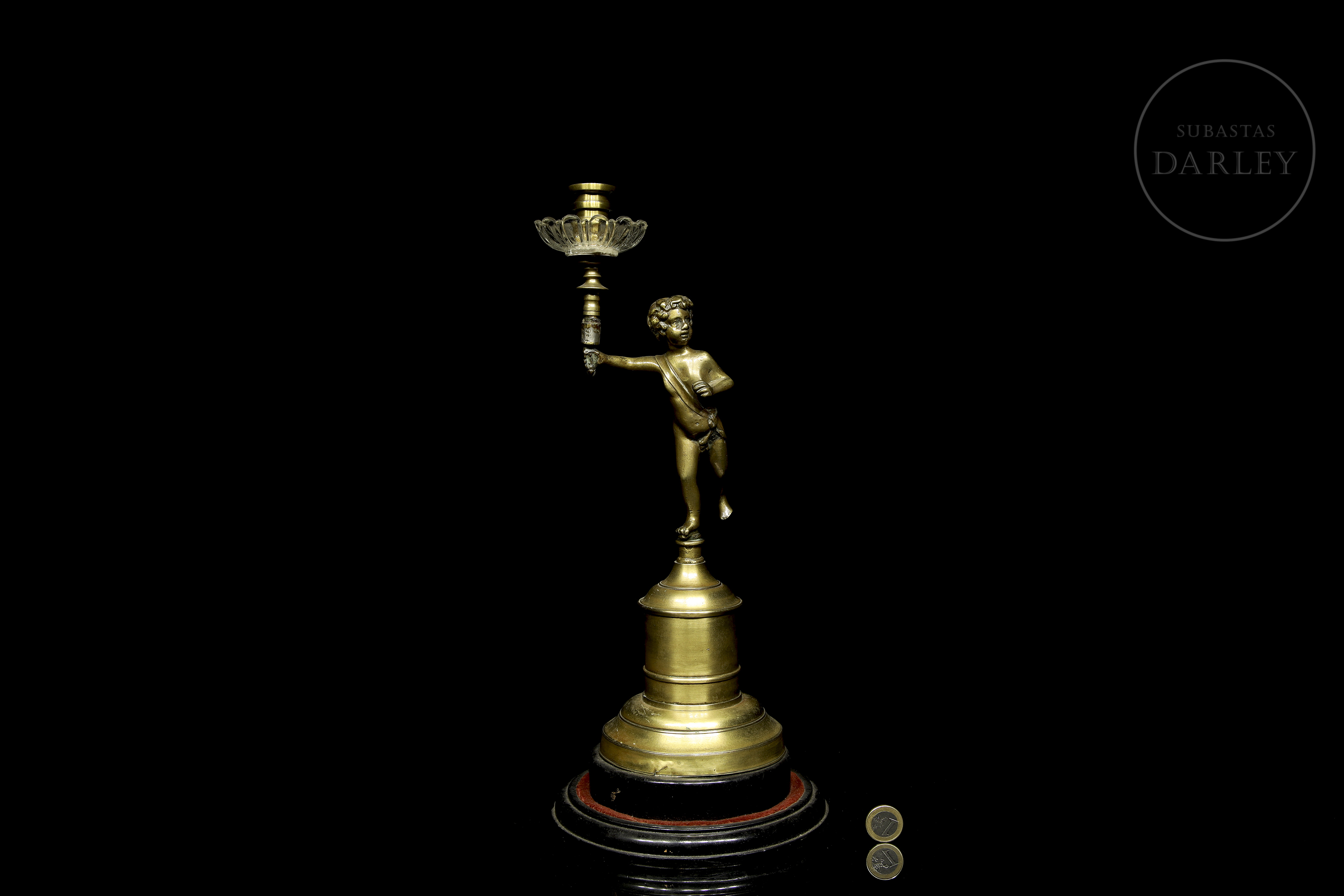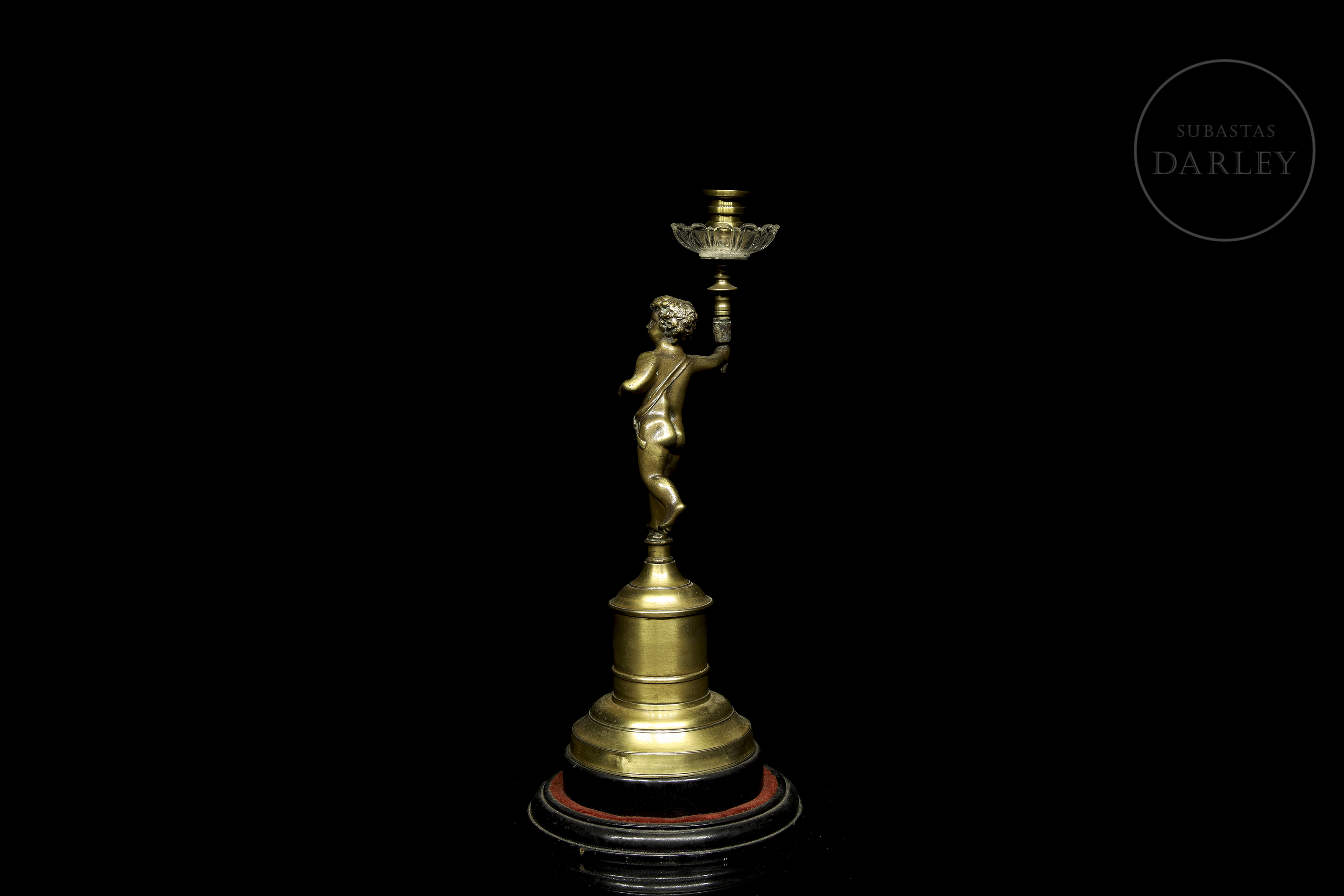 Small one-armed lamp in gold-effect patinated metal, decorated with the figure of a little boy.
