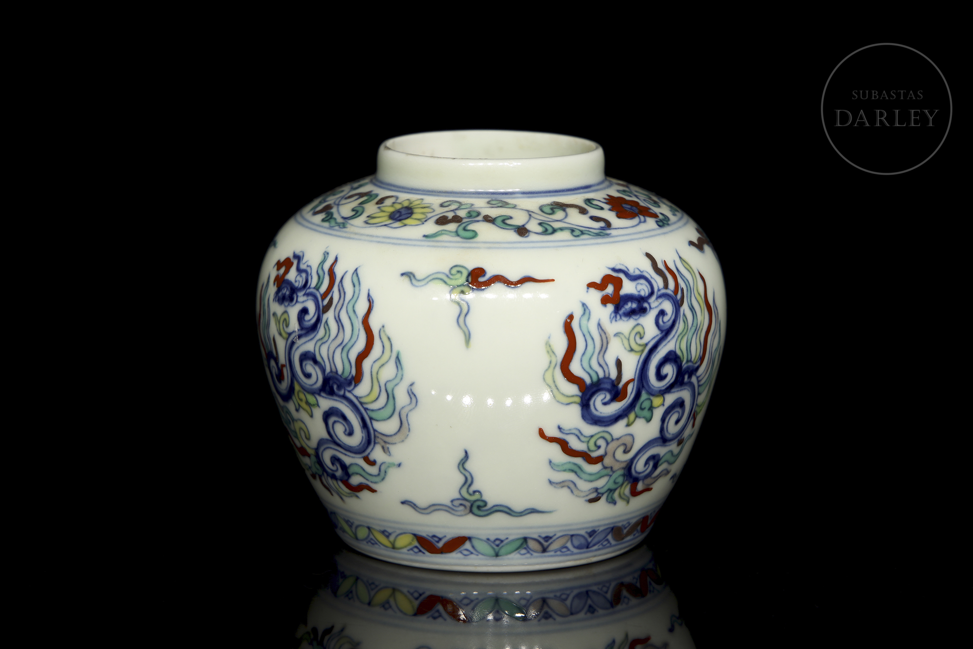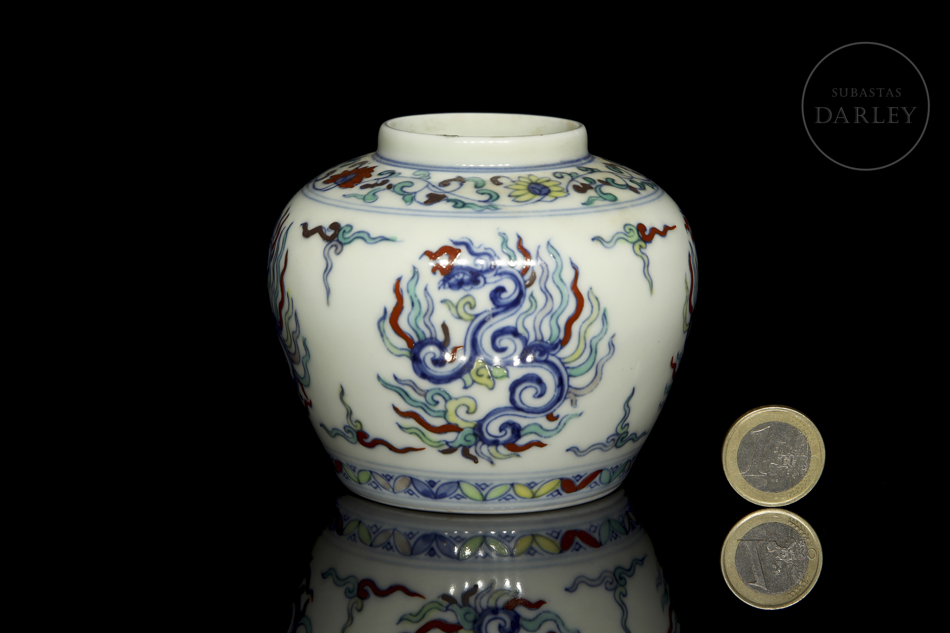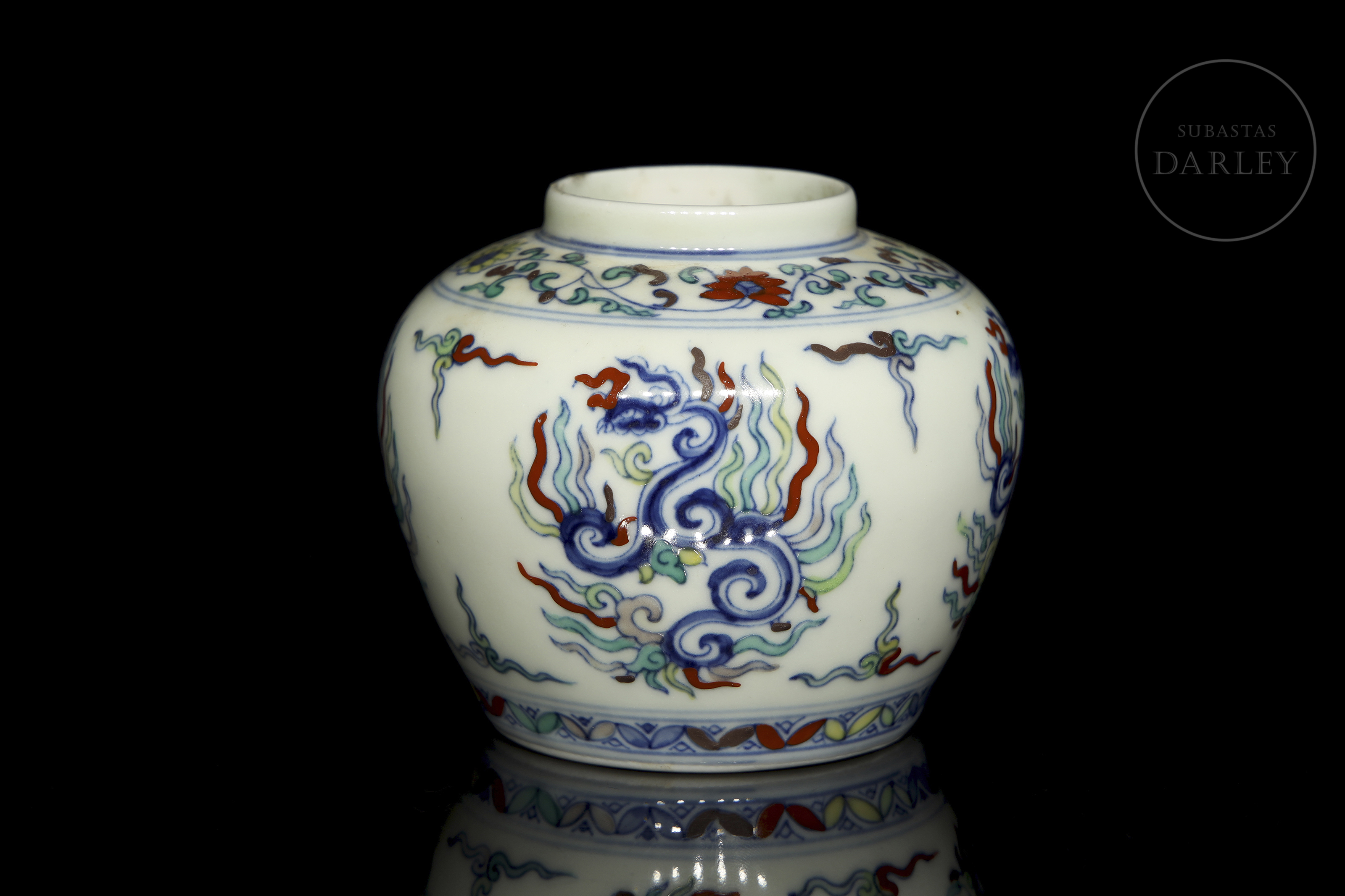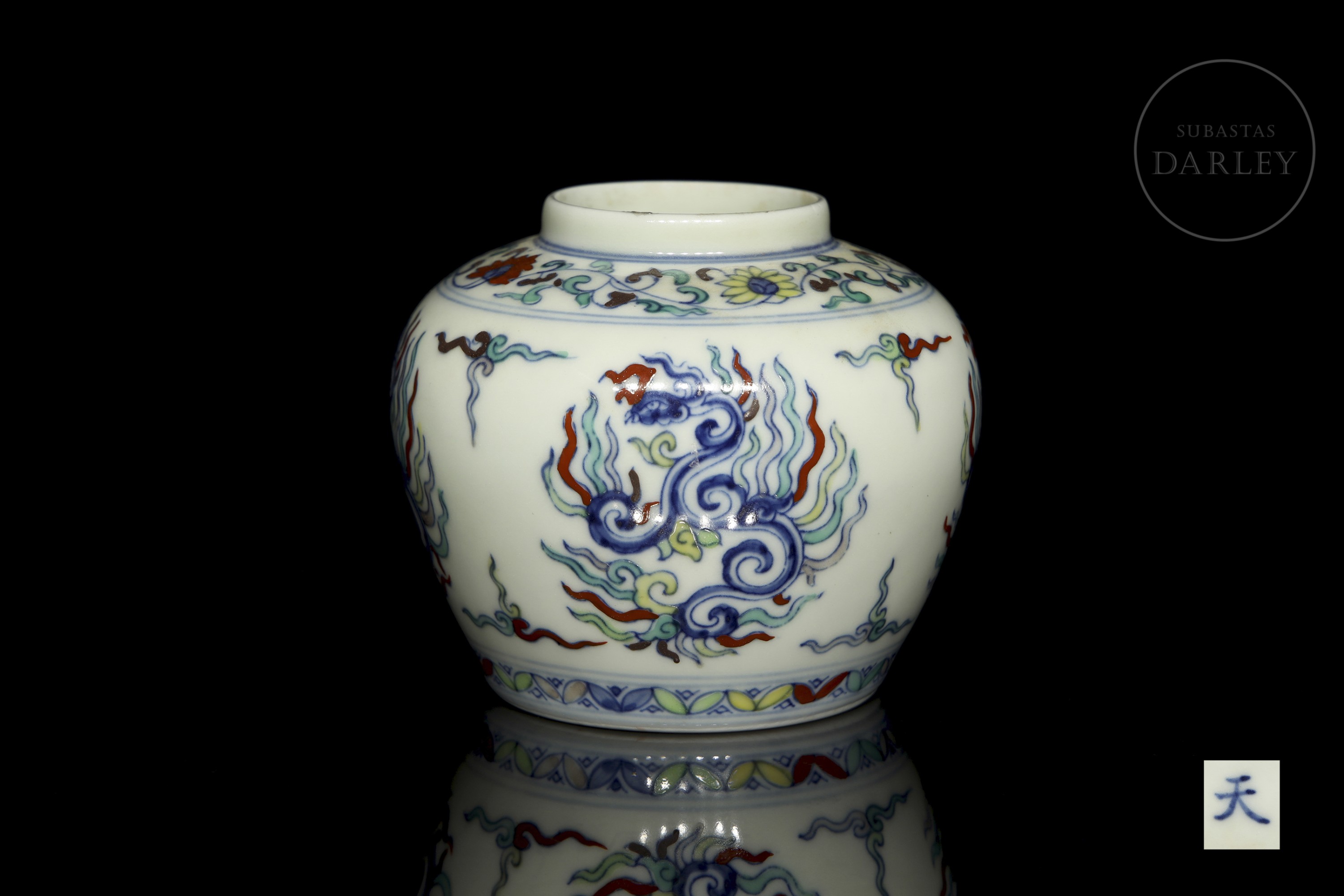 Home > Direct Sale > Asian Porcelain & Ceramics > Small polychrome porcelain jar ‘Phoenix’, marked Tianqi
