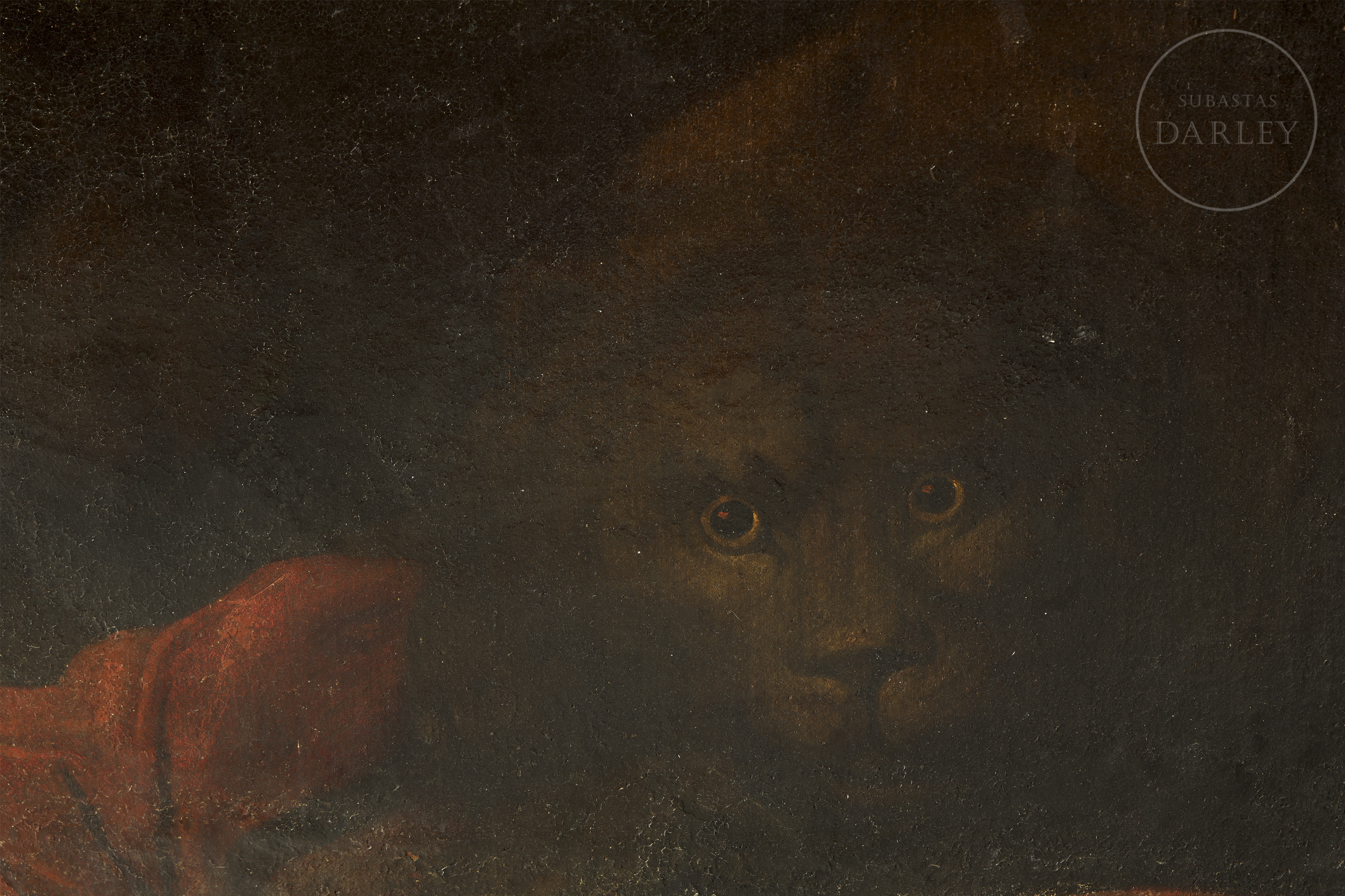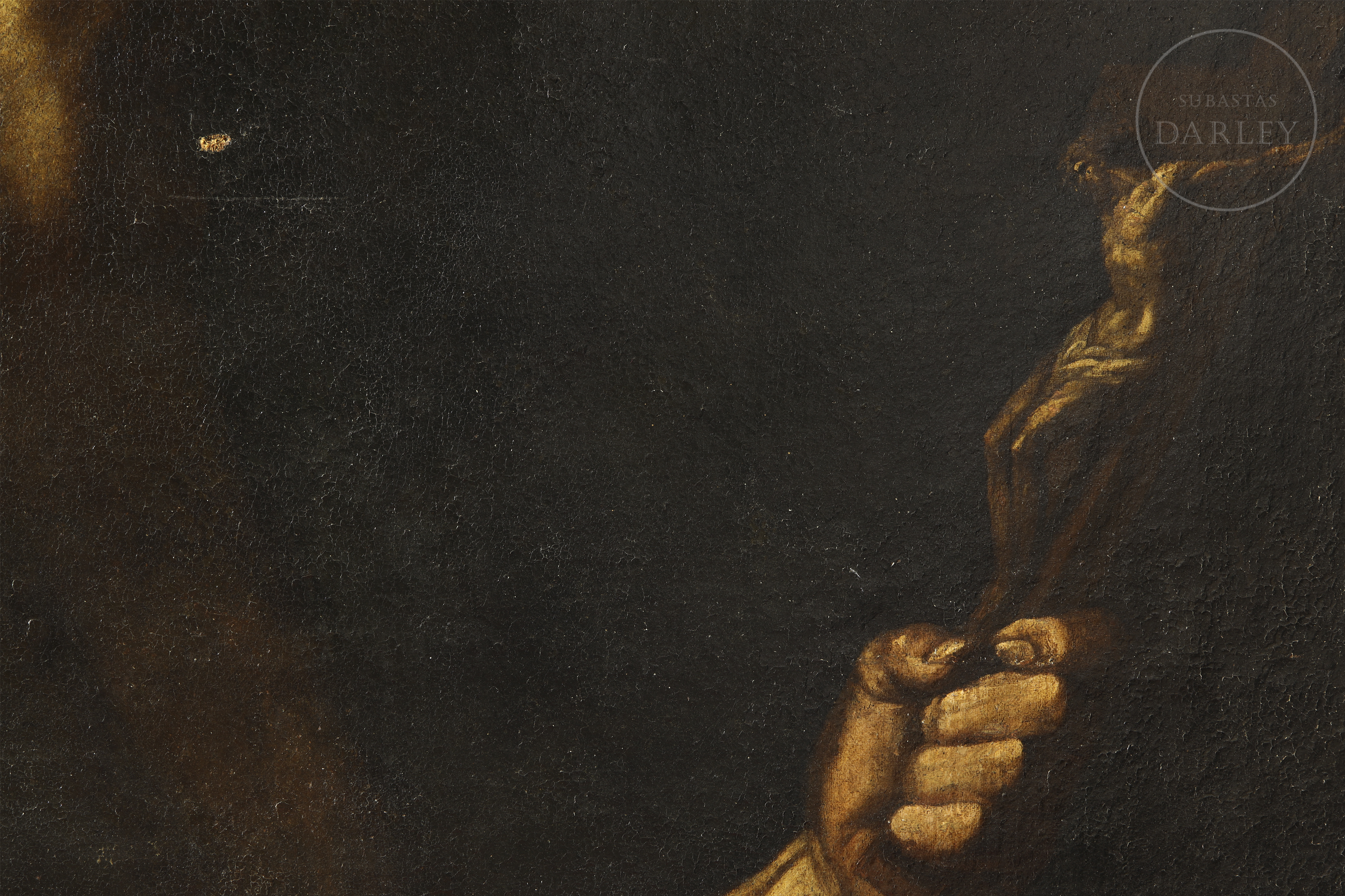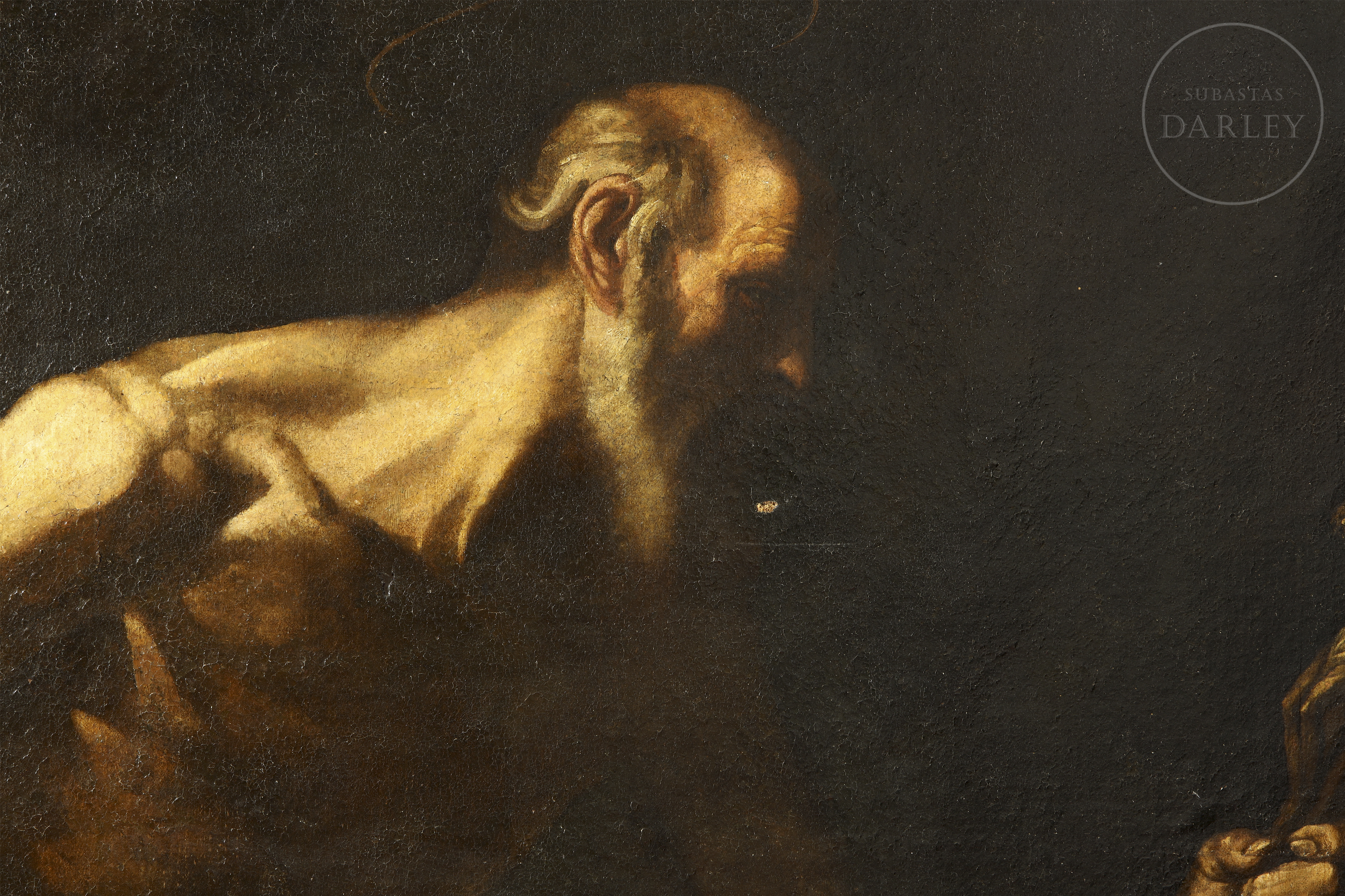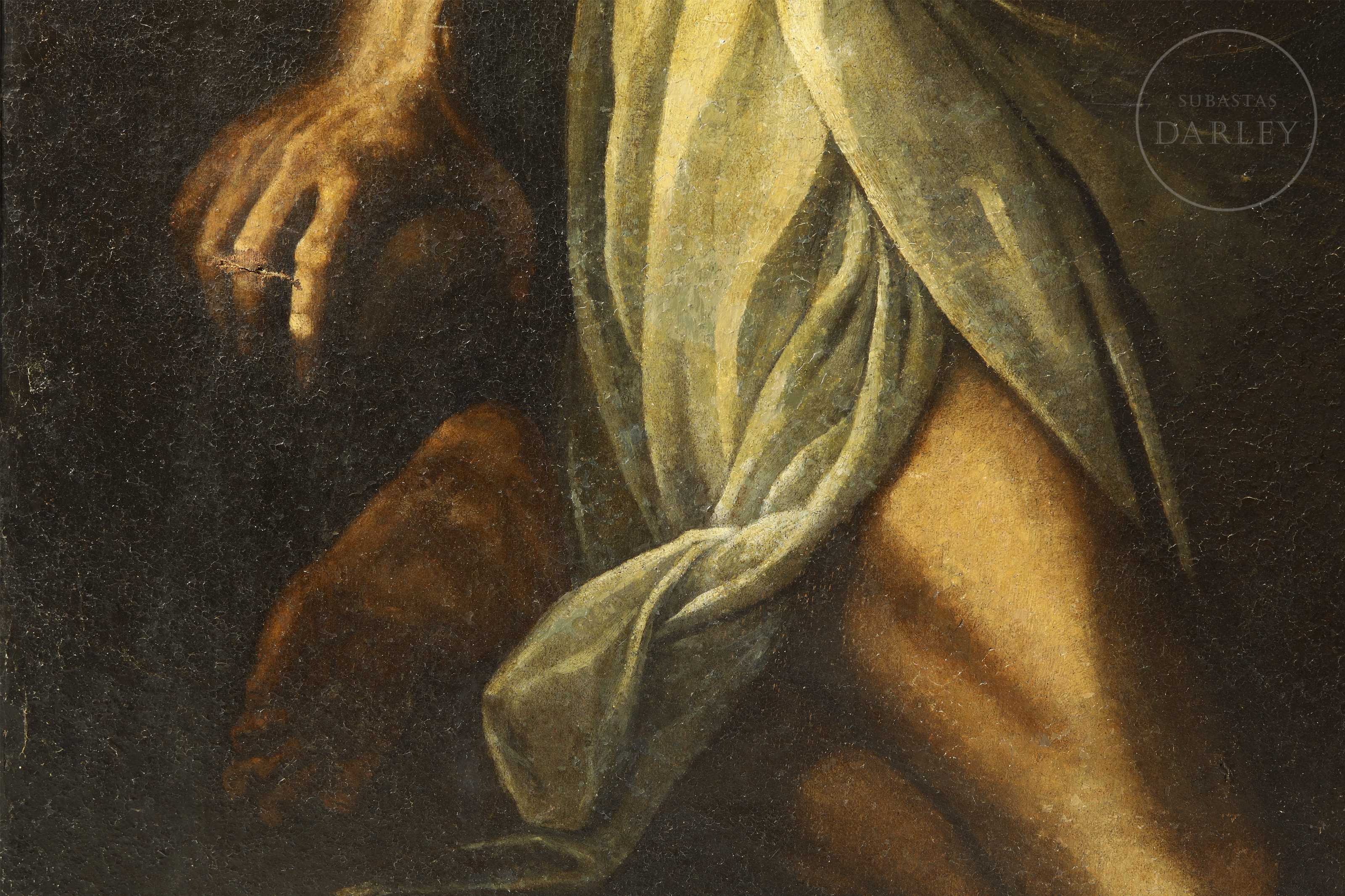 Oil on canvas. The work shows St. Jerome penitent, half kneeling, following one of the iconographic types of the conventional cultural tradition.