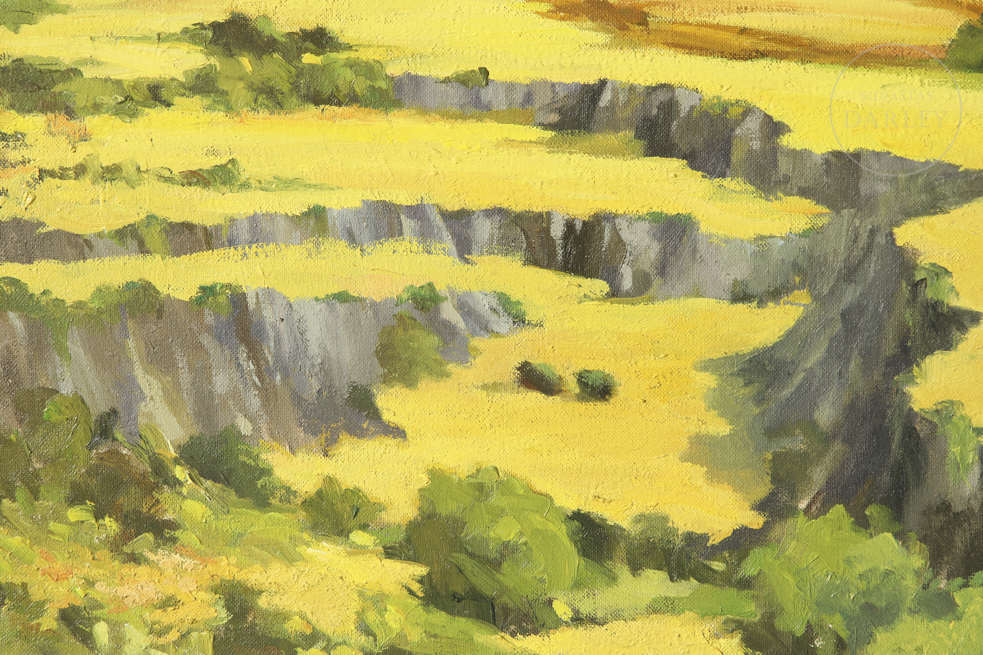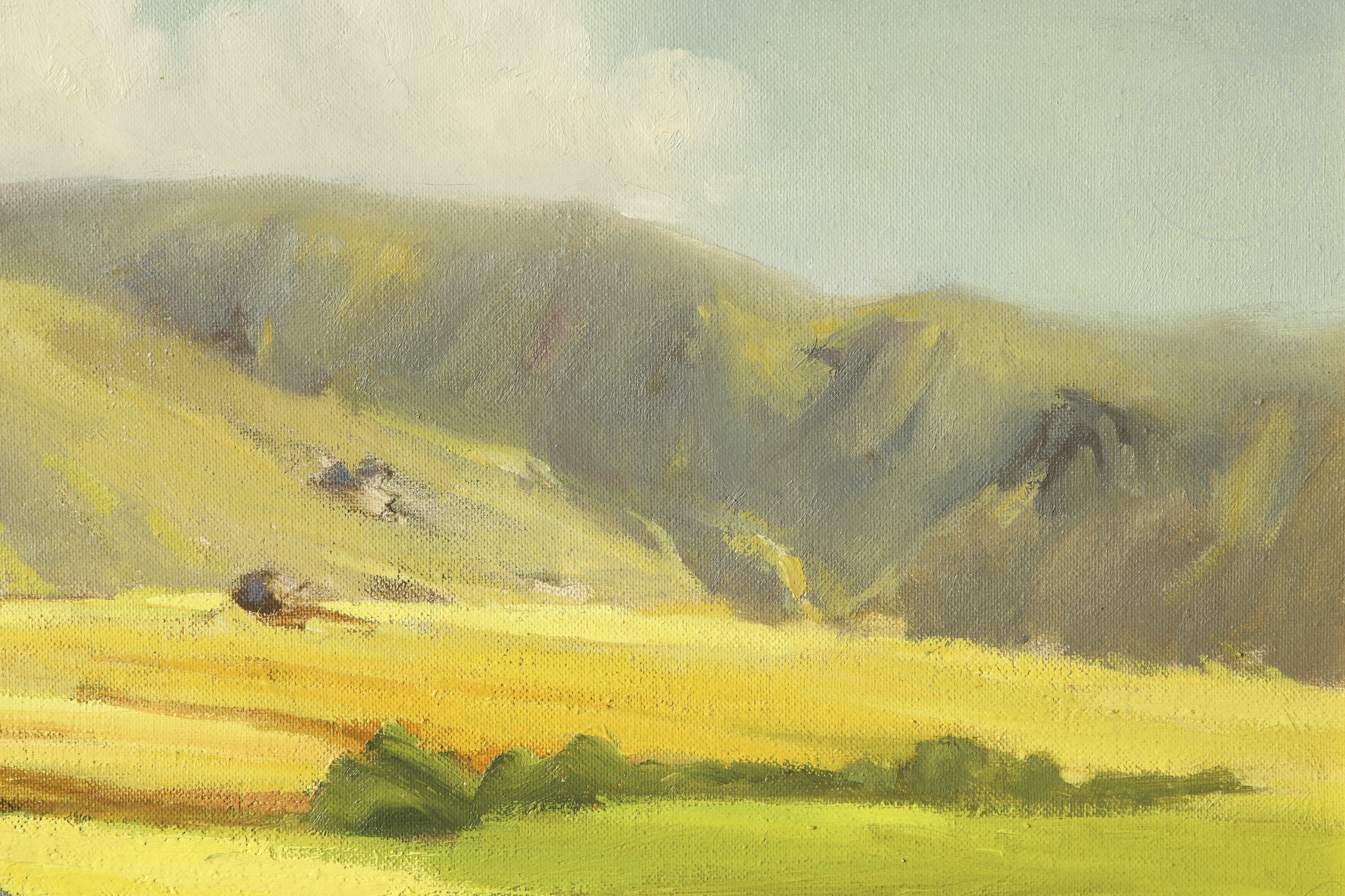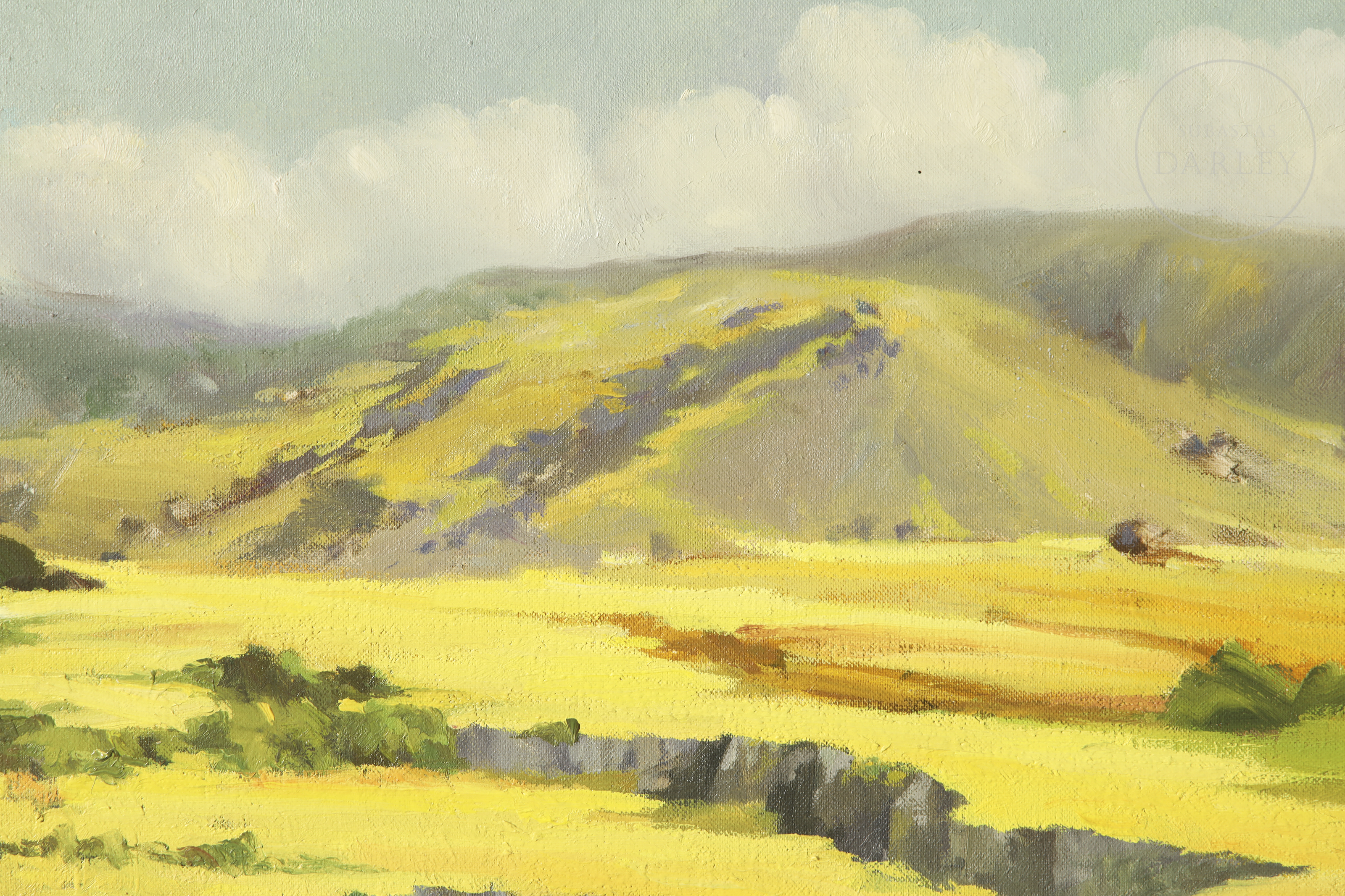 Oil on canvas. Mountain landscape with a hill in shades of yellow, painted with loose, impasto brushstrokes. Signed ‘Castell Alonso’ in the lower right corner.