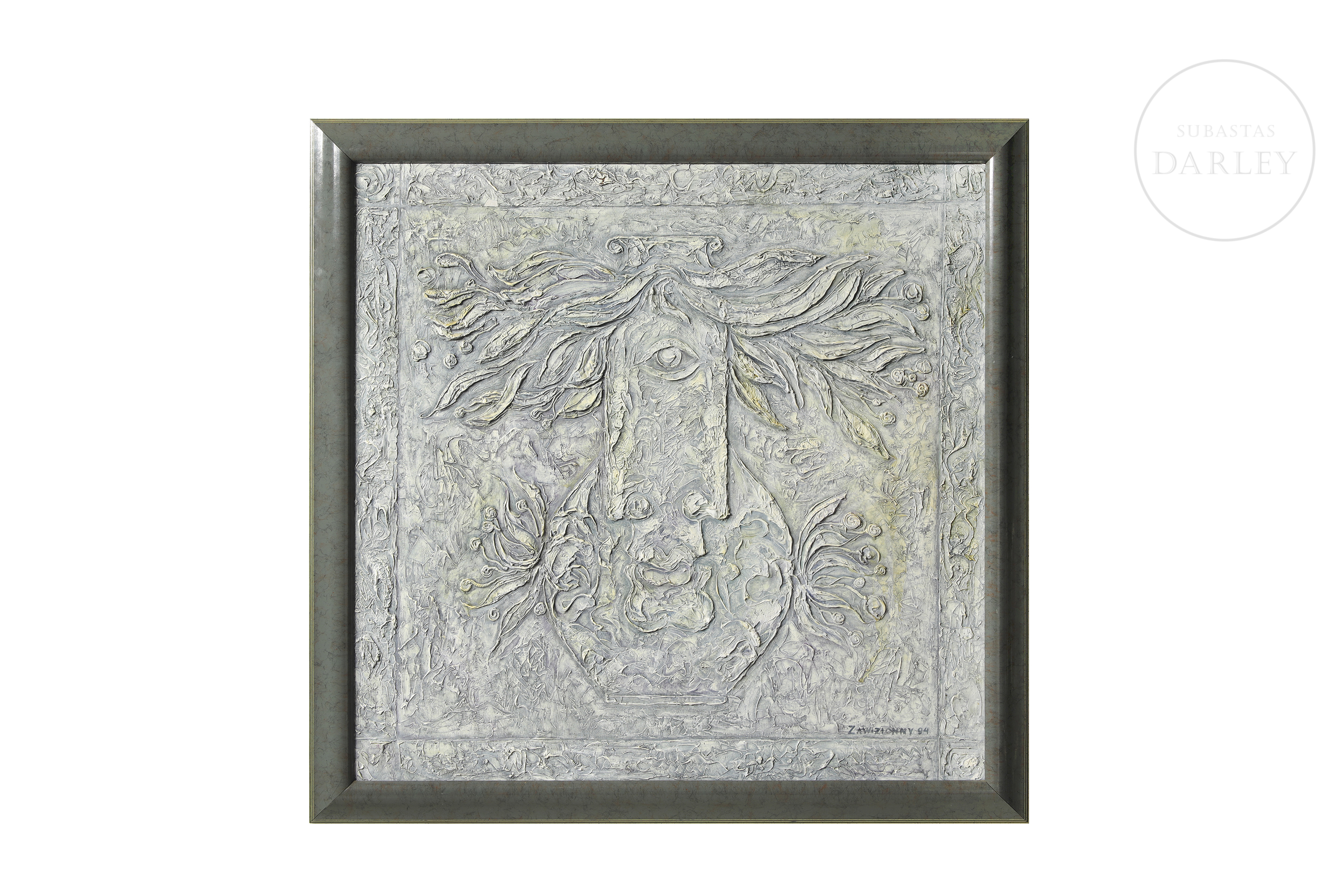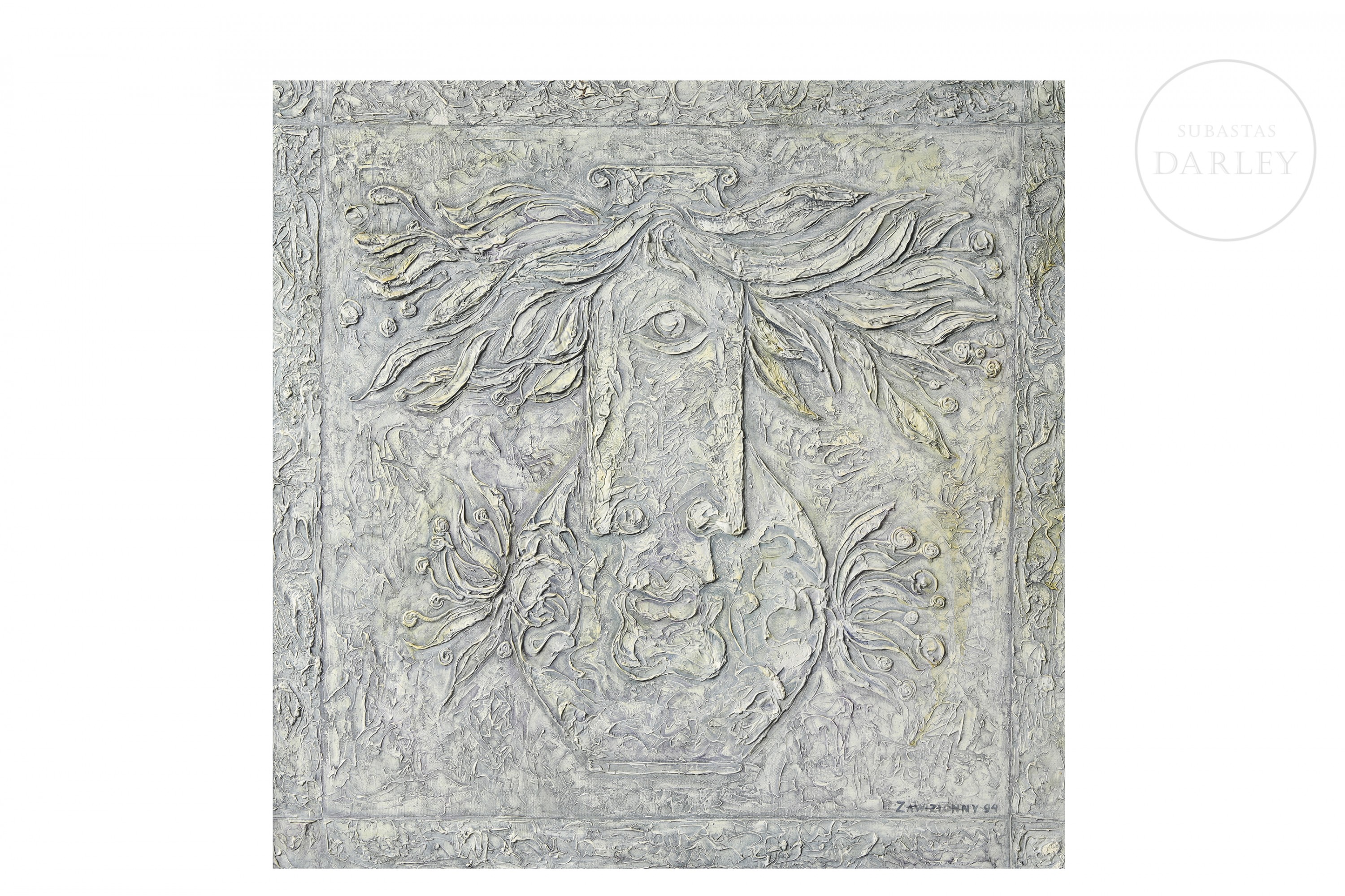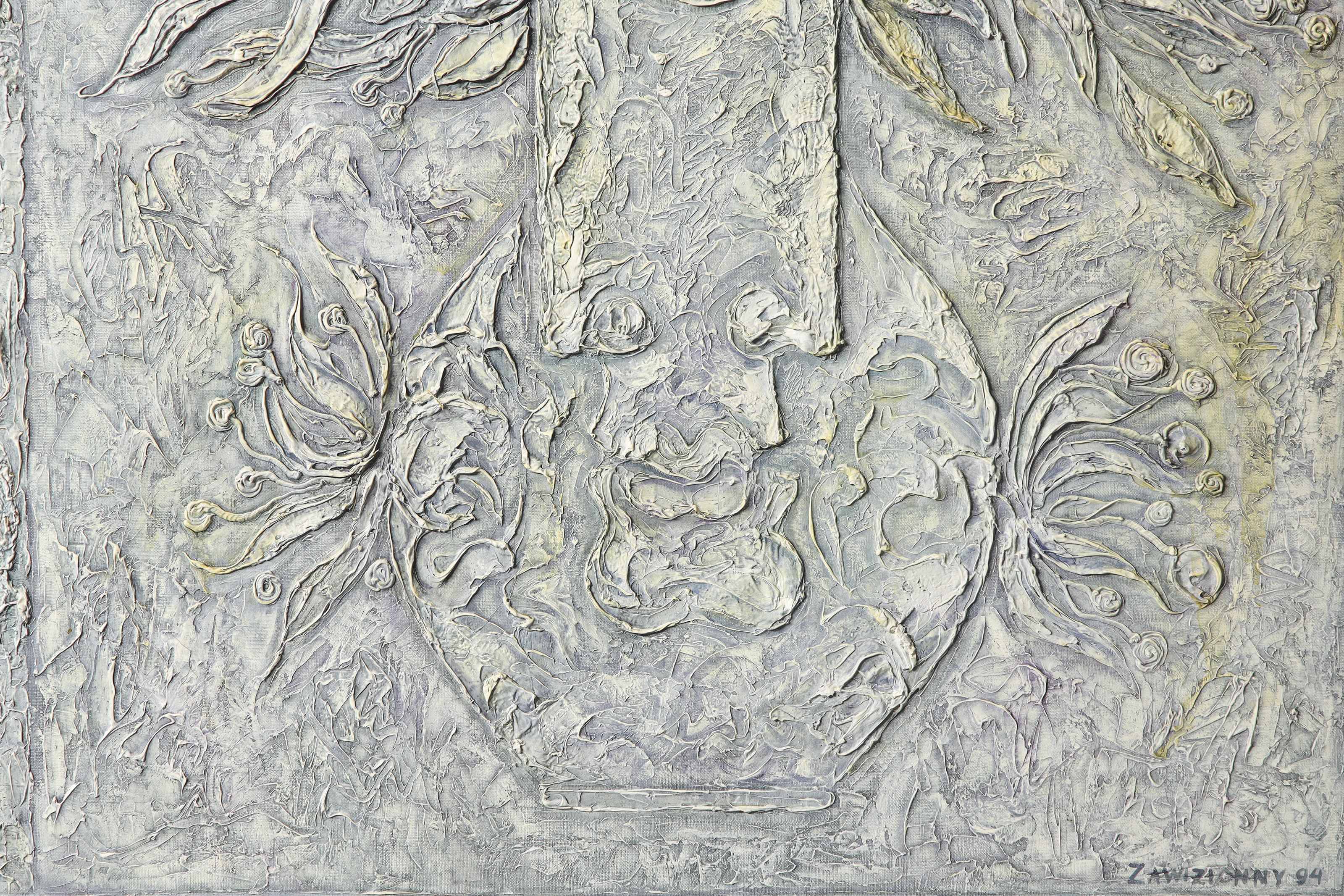 Mixed media on canvas. Signed and dated ‘Zawizionny/94’ in the lower right corner. Signed, titled and dated on the back.