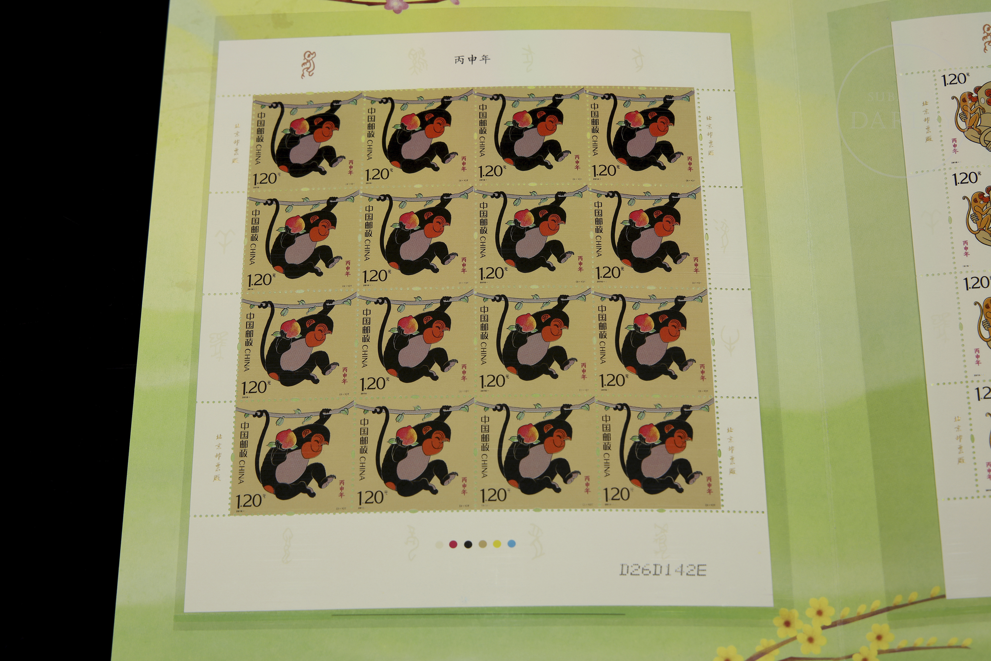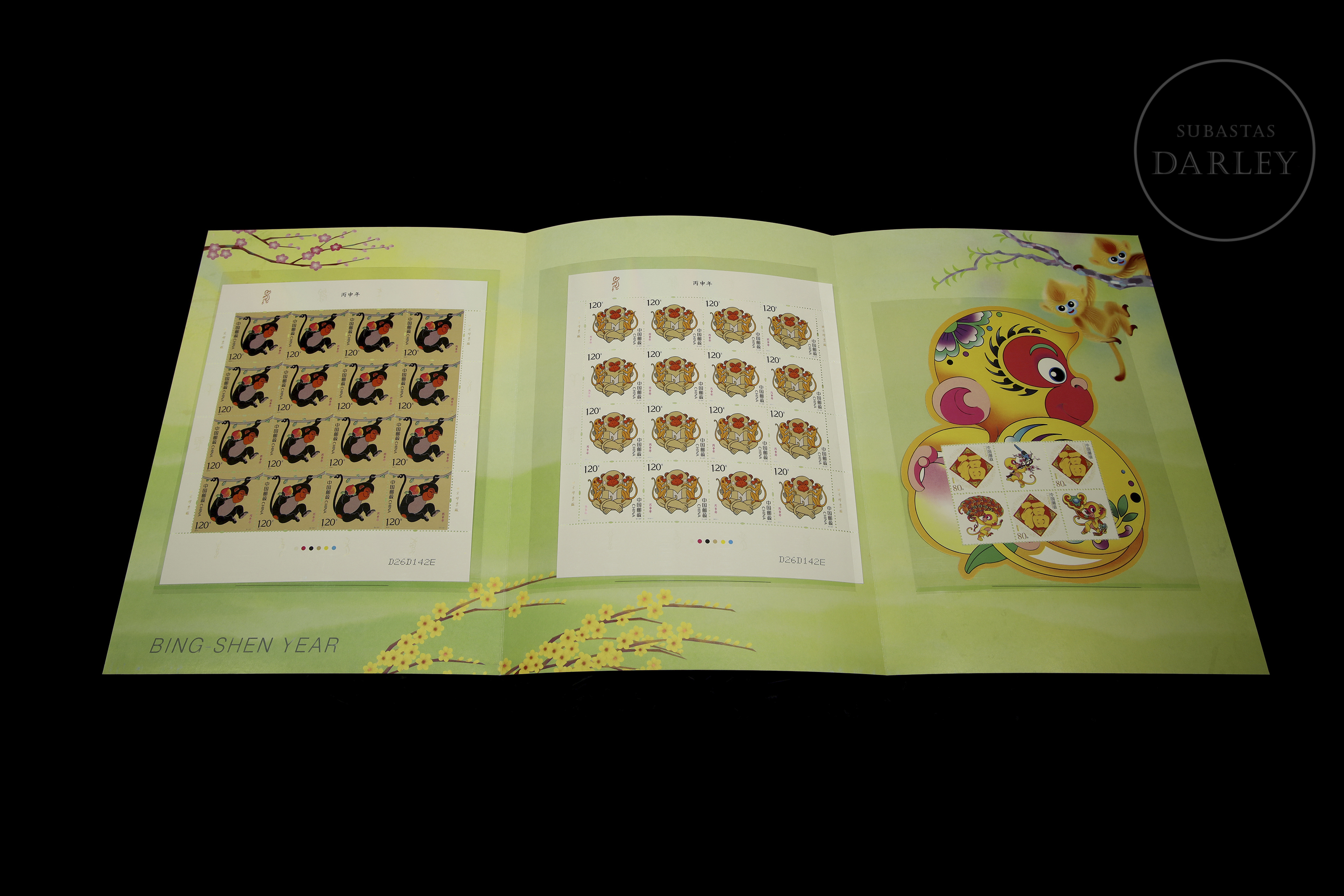 Álbum de coleccionista, realizado de forma conmemorativa en el año 2016, también conocido como "Año del Mono de fuego" según el calendario lunar. Se compone de tres hojas completas, dos de ellas de 16 unidades cada una, y una de menor tamaño de 6 unidades, emitidos en 2016 por China Post, y diseñados por el artista Huang Yongyu.