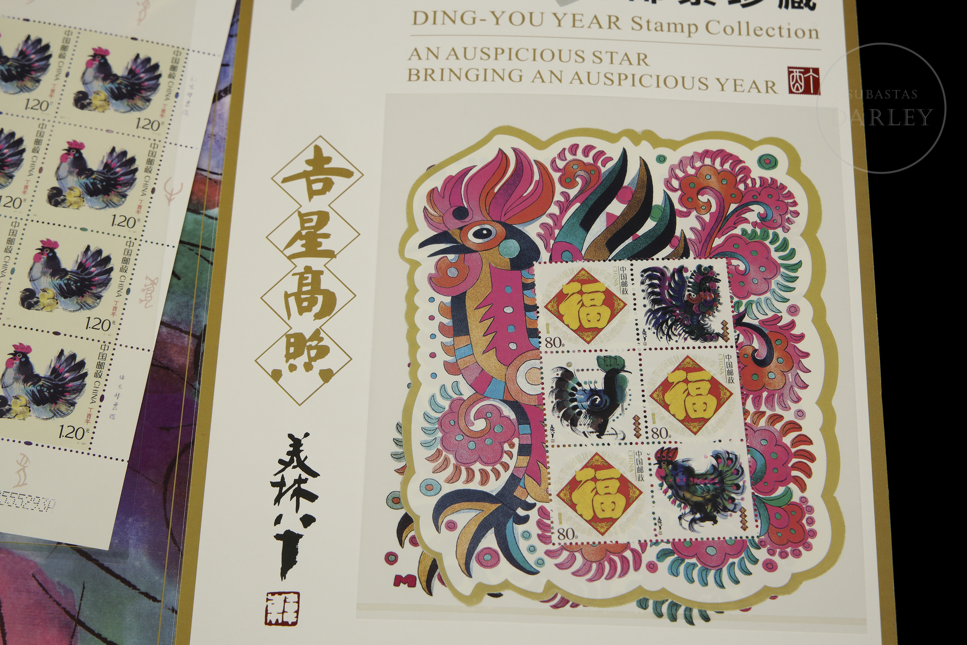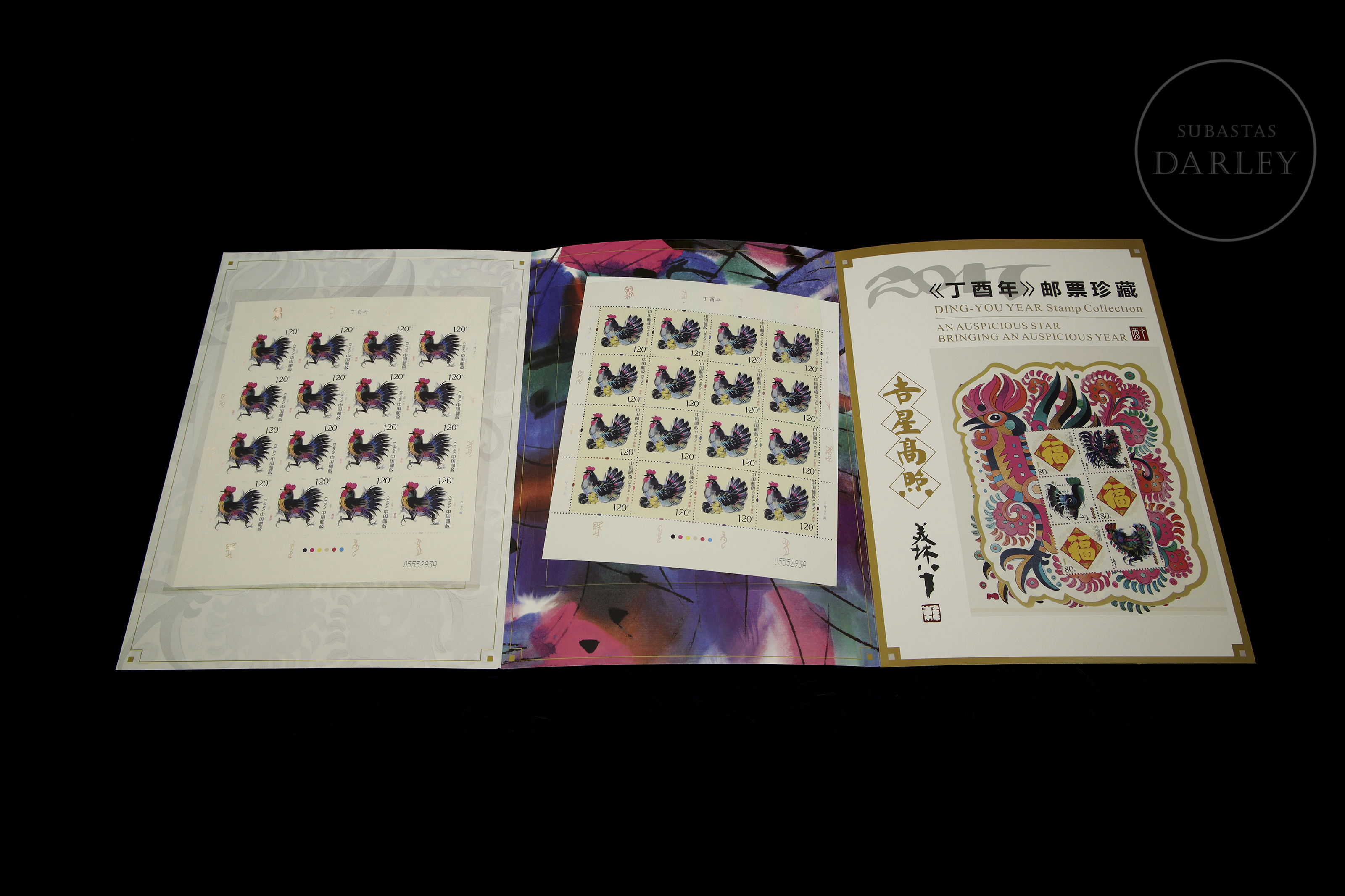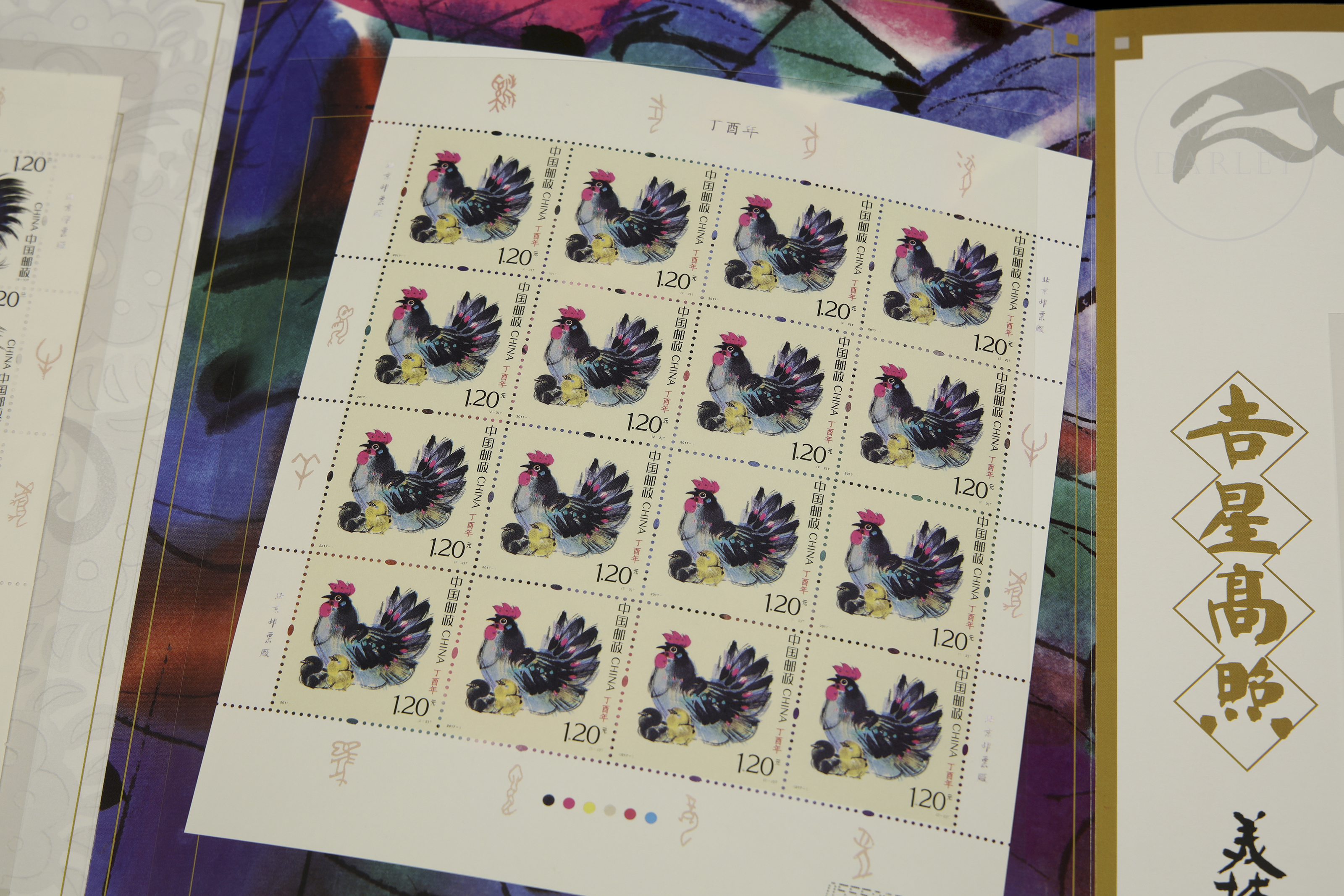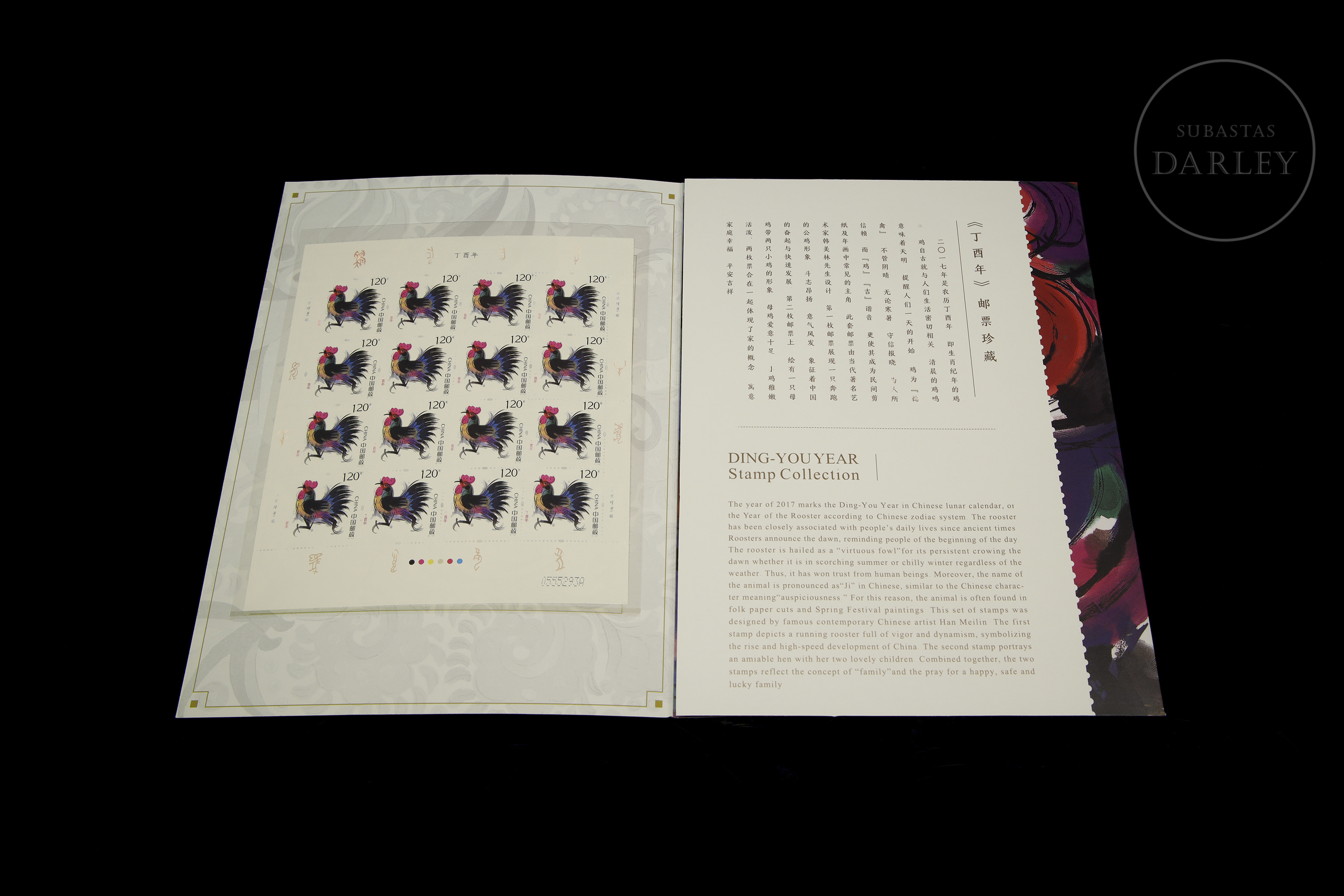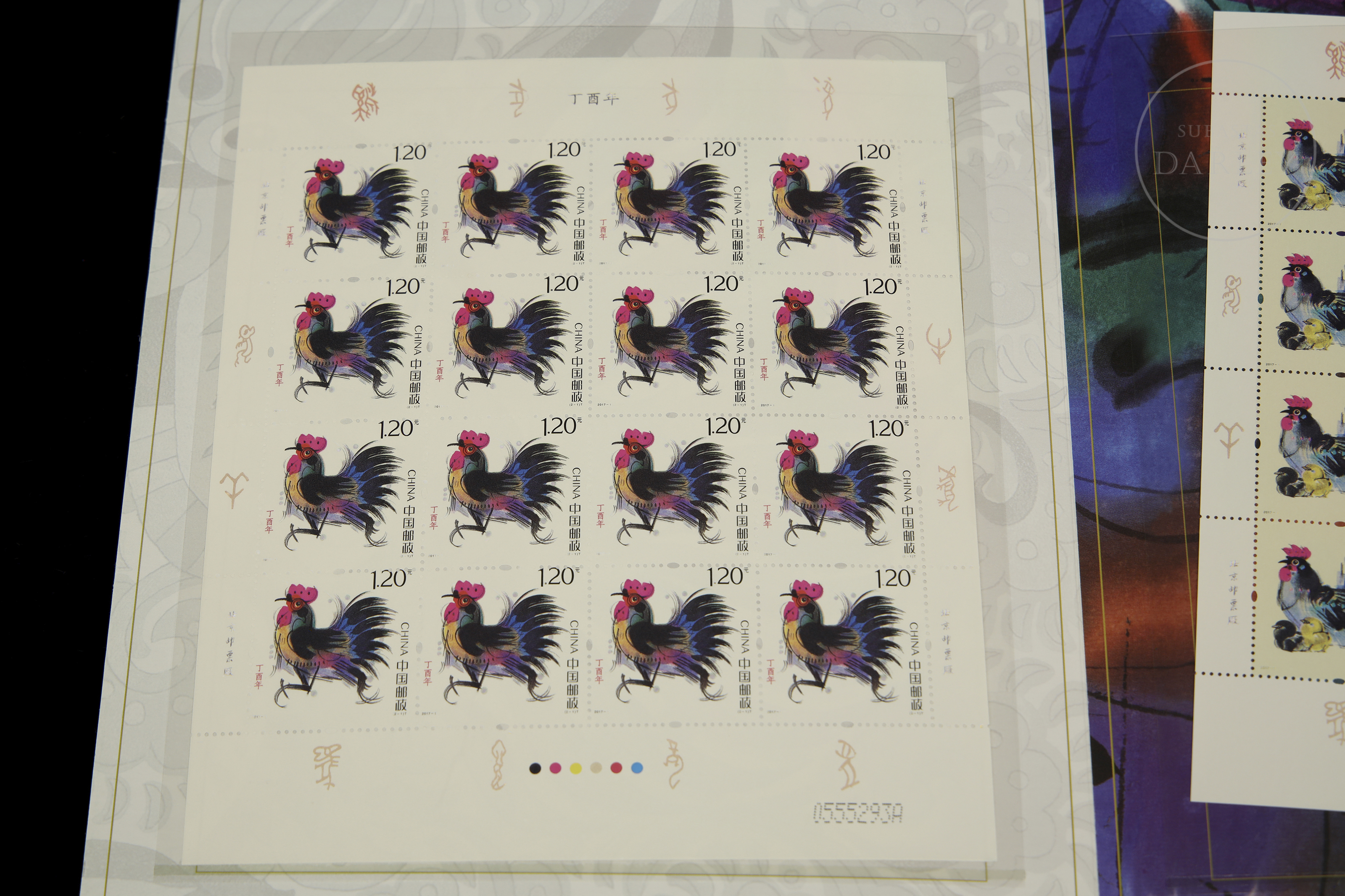 Álbum de coleccionista, realizado de forma conmemorativa en el año 2017, también conocido como "Año del Gallo" según el calendario lunar. Se compone de tres hojas completas, dos de ellas de 16 unidades cada una, y una de menor tamaño de 6 unidades, emitidos en 2017 por China Post, y diseñados por el artista Han Meilin.