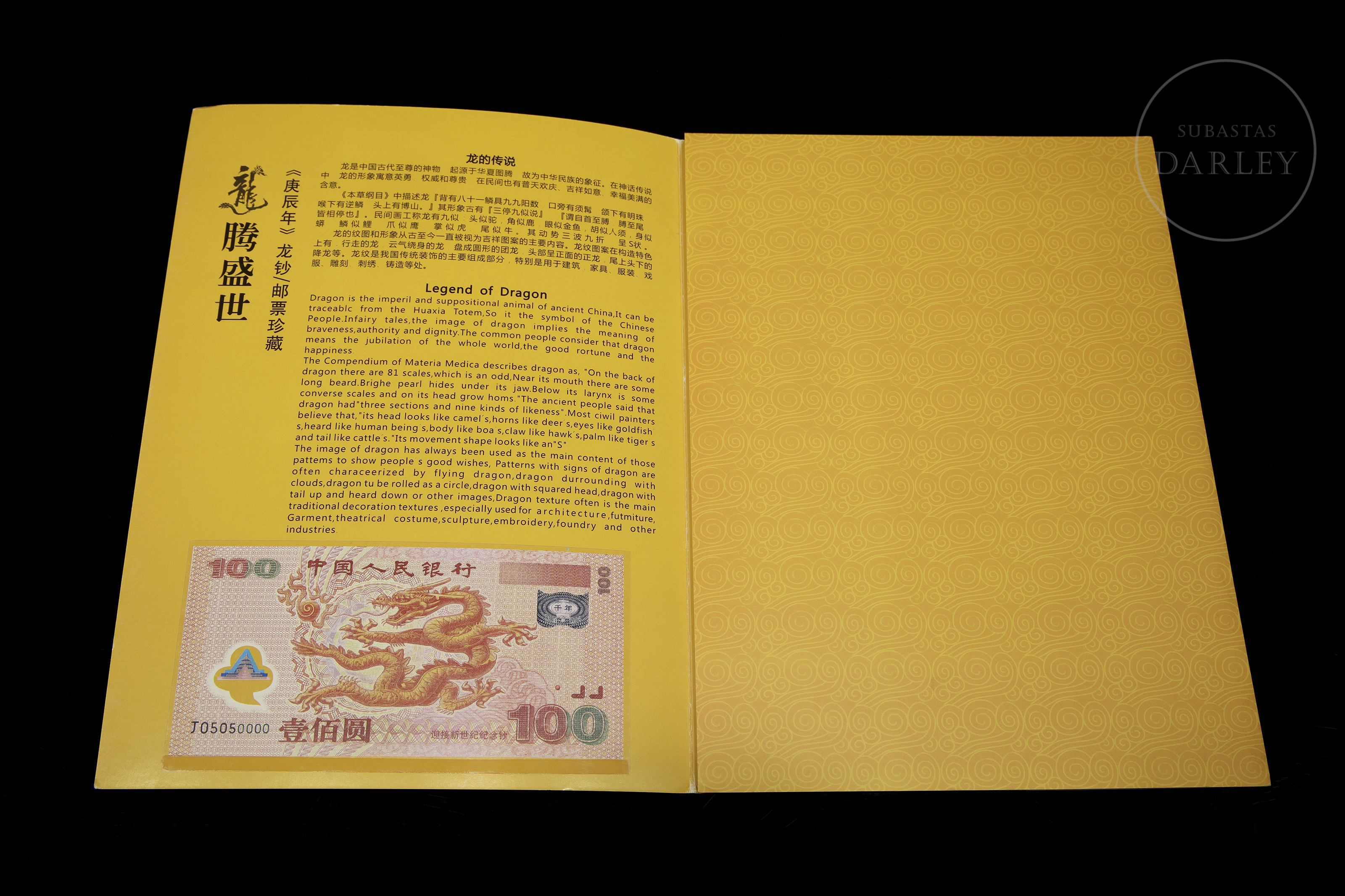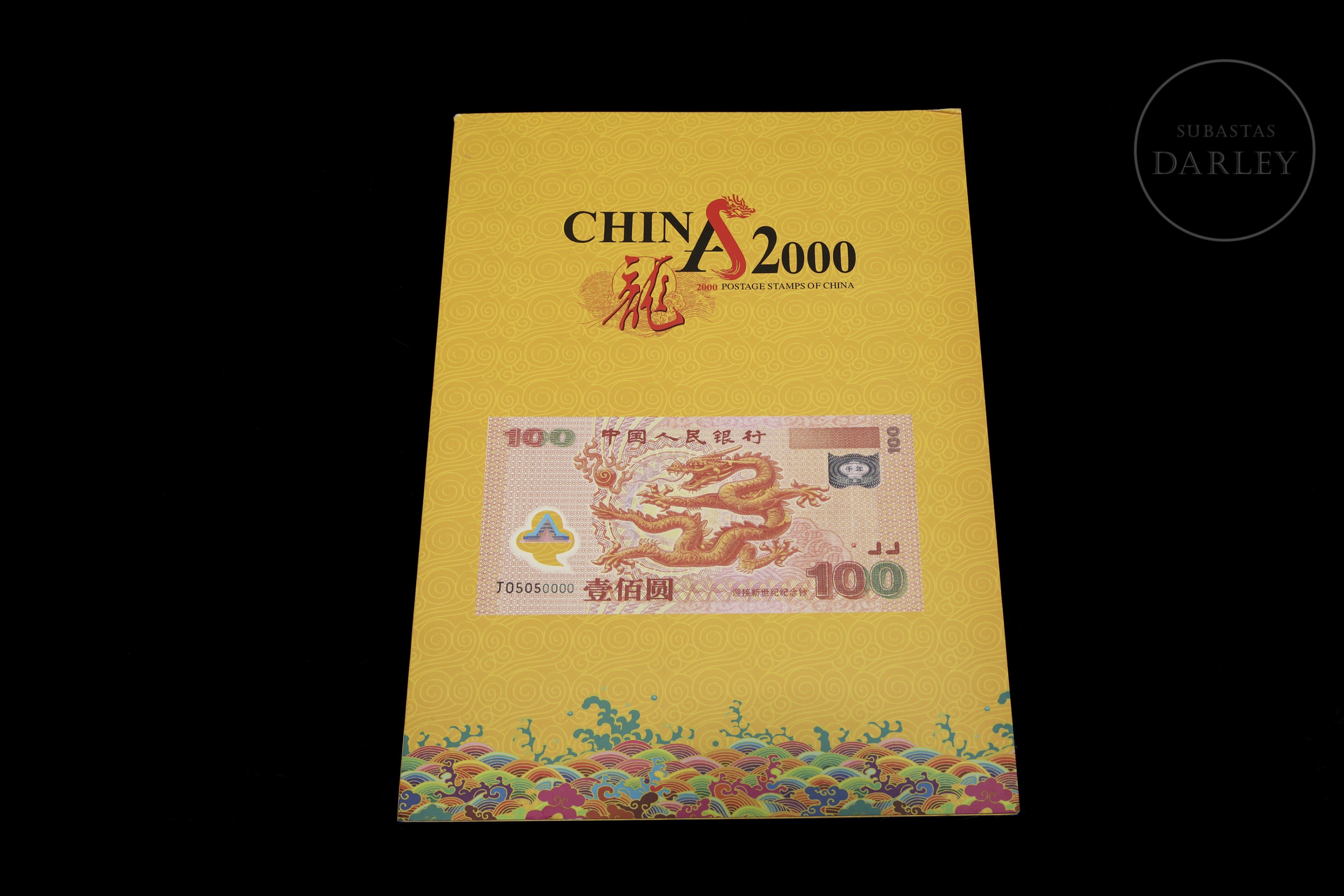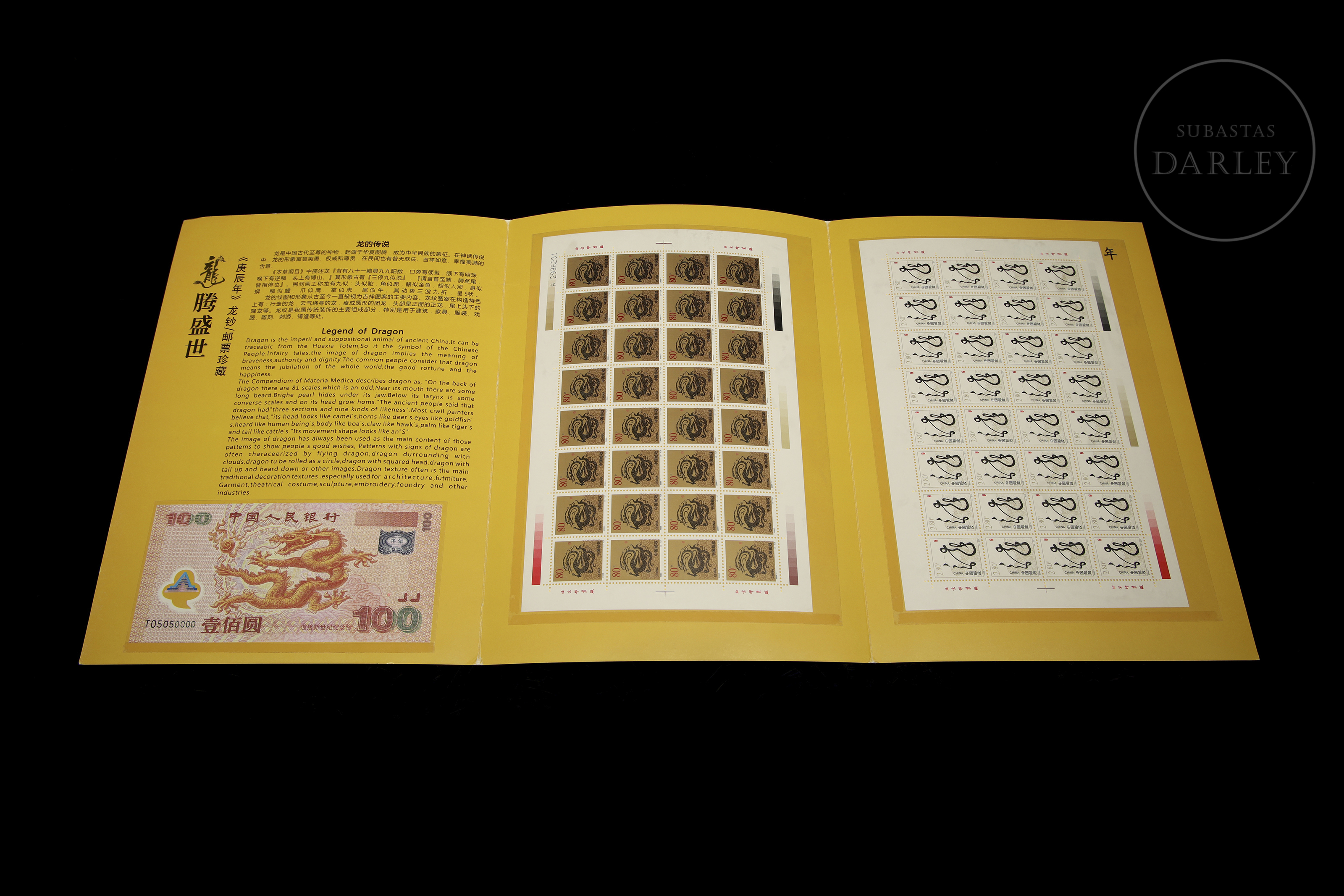 Álbum de coleccionista, realizado de forma conmemorativa en el año 2000, también conocido como "Año del dragón". Se compone de dos hojas completas de 32 unidades cada una, de sellos emitidos en el propio año 2000 por China Post. Se acompaña de un billete de 100 Yuanes.