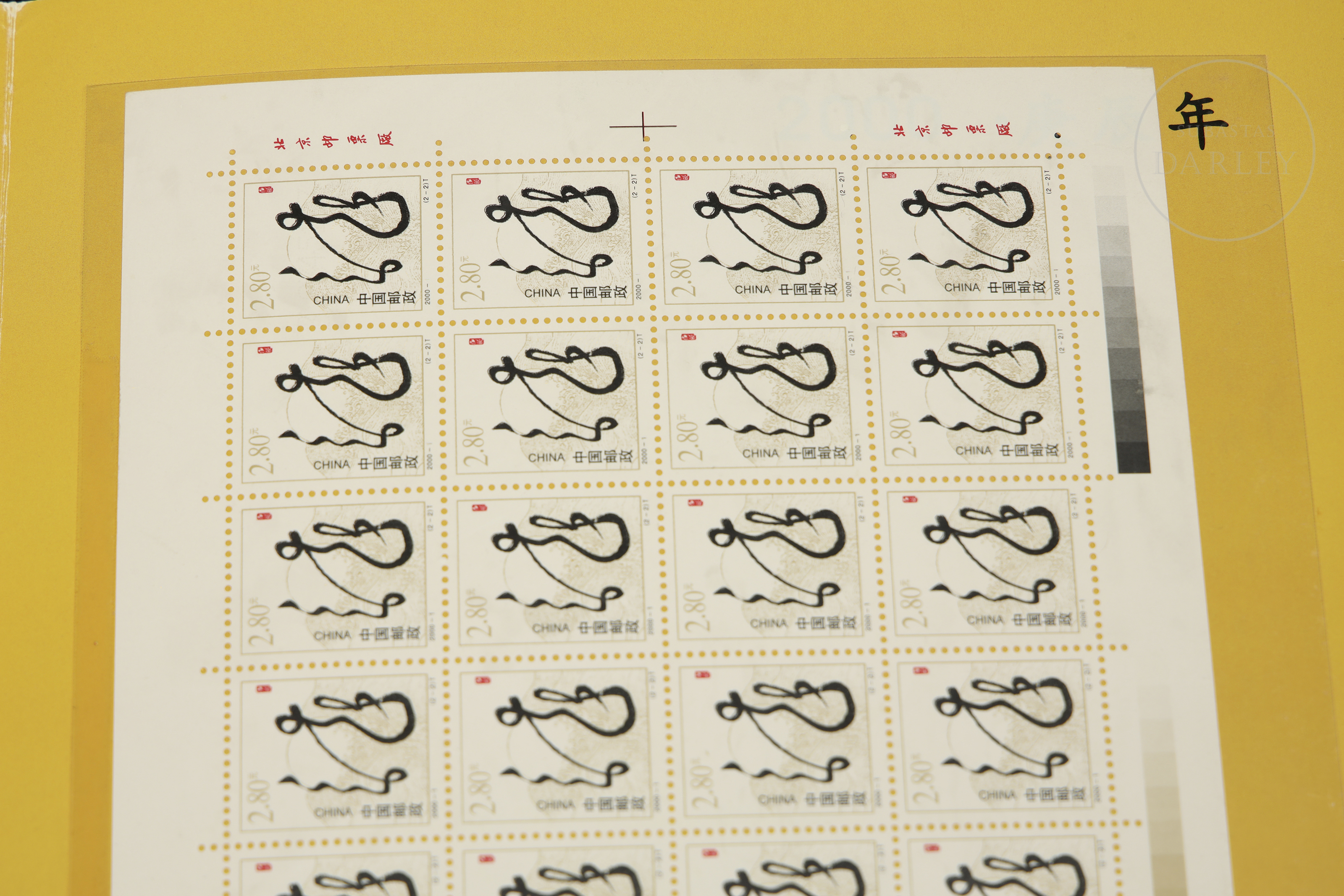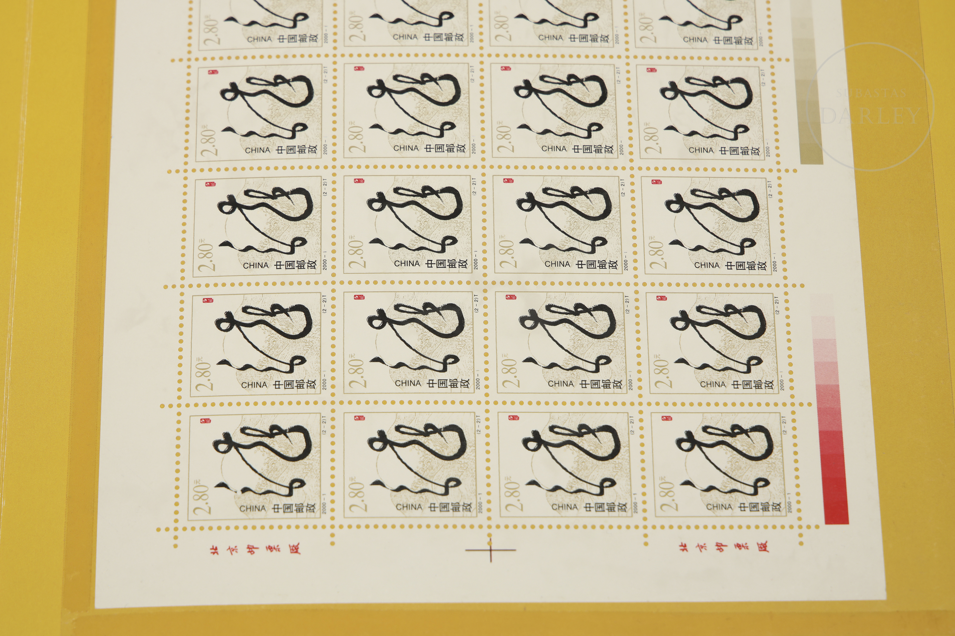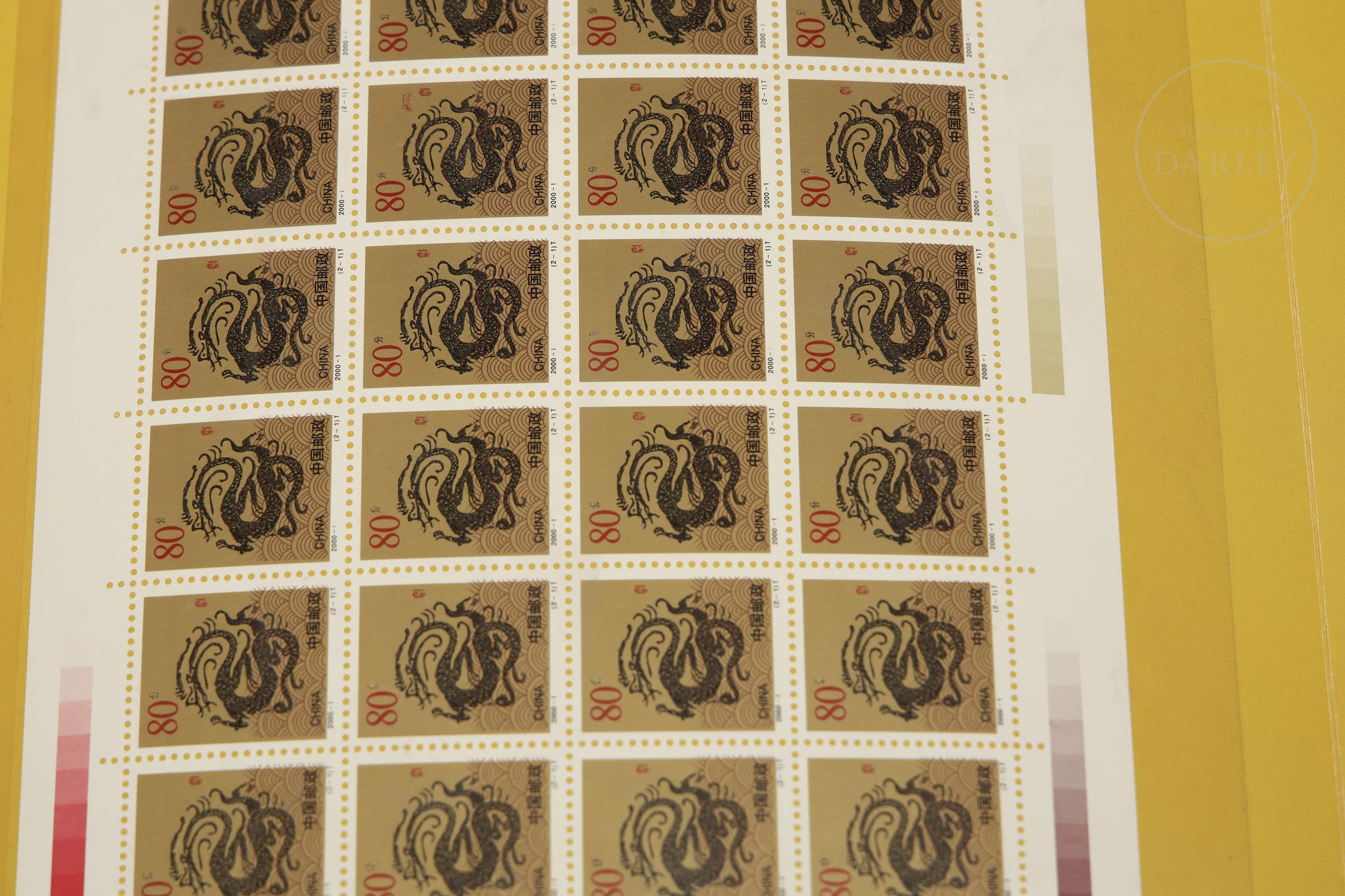 Álbum de coleccionista, realizado de forma conmemorativa en el año 2000, también conocido como "Año del dragón". Se compone de dos hojas completas de 32 unidades cada una, de sellos emitidos en el propio año 2000 por China Post. Se acompaña de un billete de 100 Yuanes.